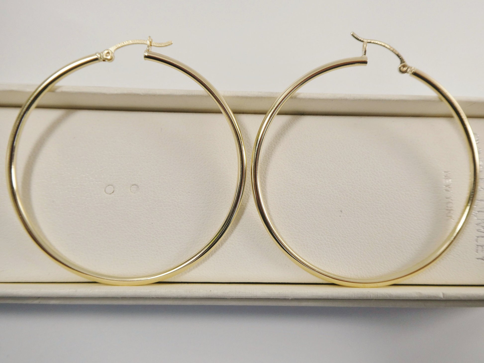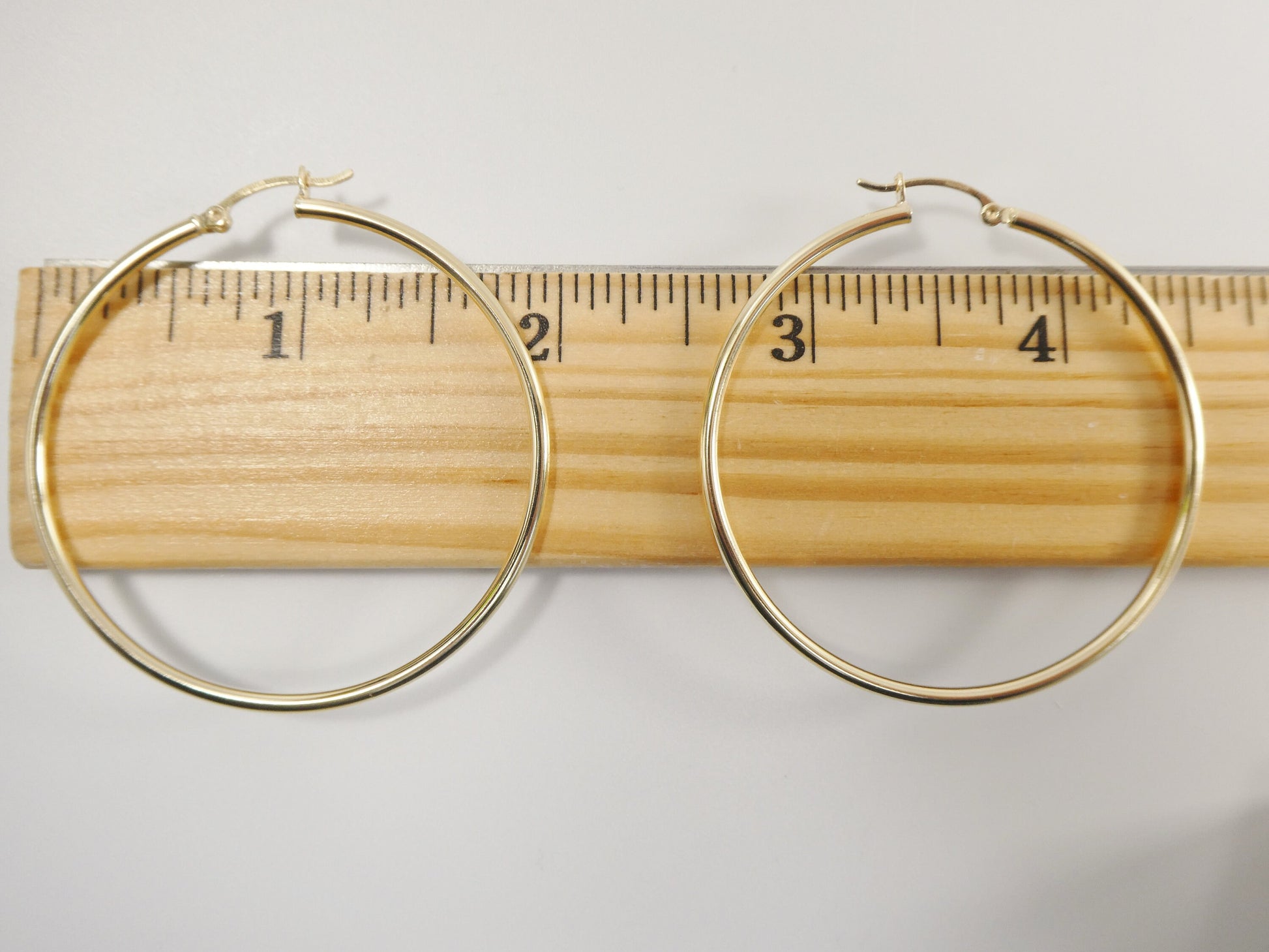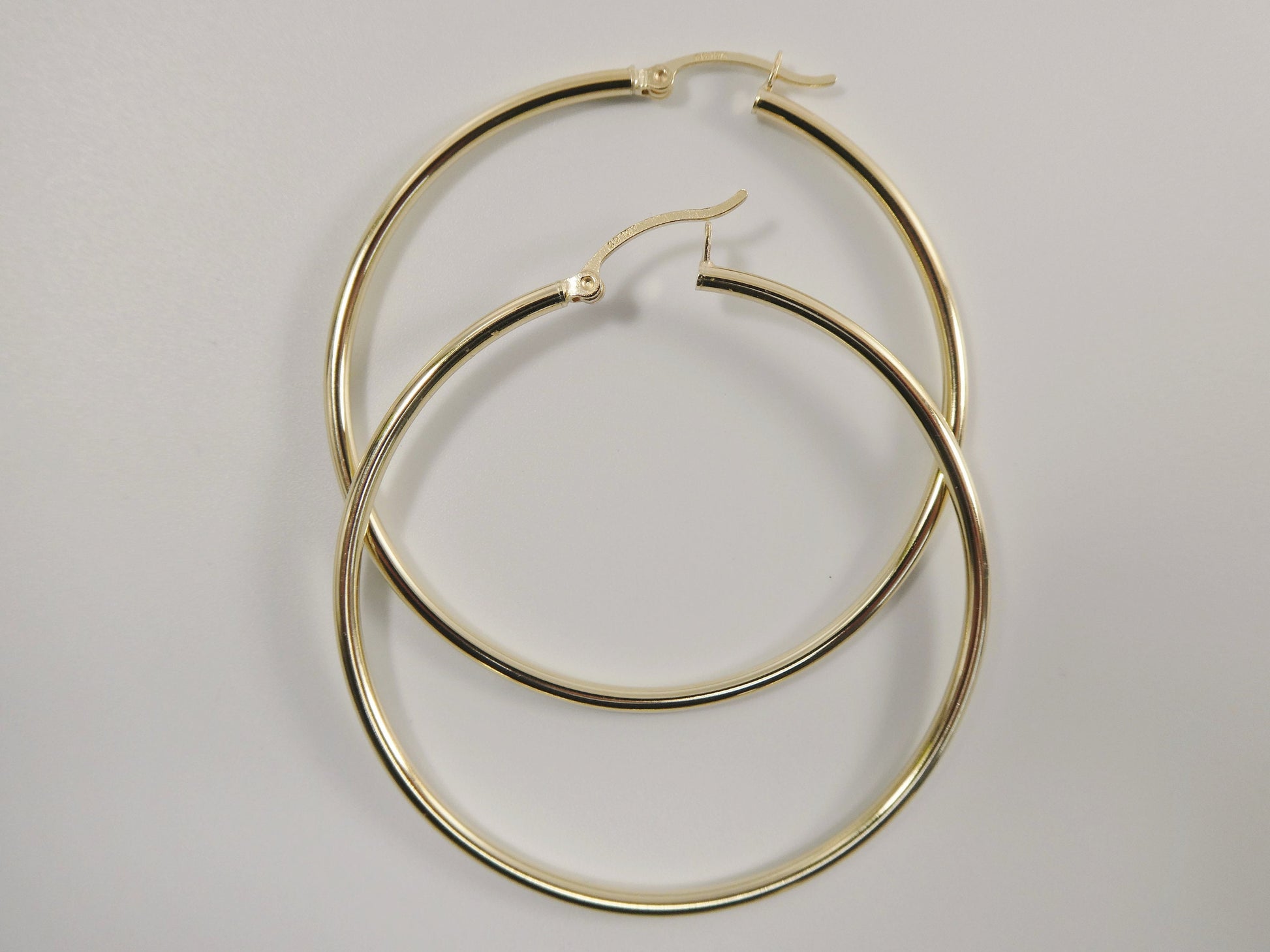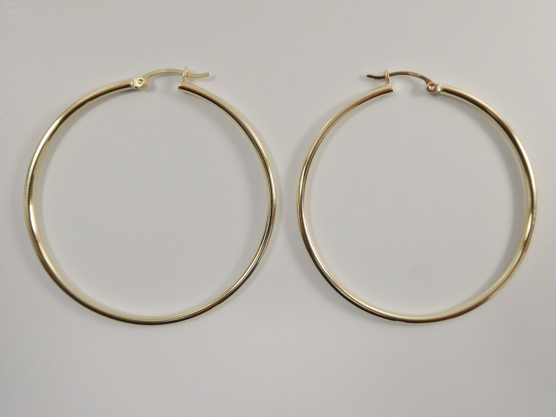 real 10k solid yellow gold plain high polish 50mm hoop earrings