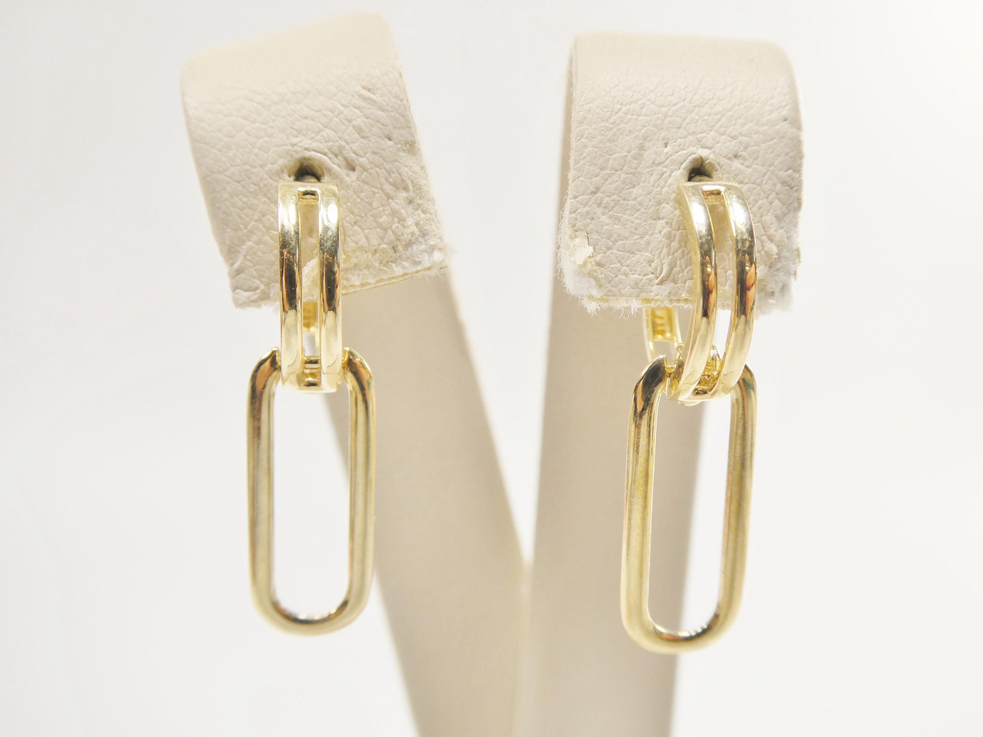 REAL 10K SOLID YELLOW GOLD PAPERCLIP DROP EARRING PLAIN POLISH HUGGIE HOOP EARRING HIGH QUALITY HIGH POLISH PERFECT FINISH GUARANTEE 10K GOLD MARK AND STAMP (NOT GOLD FILLED OR GOLD PLATING ) COME IN NICE GIFT BOX MAKE IT GREAT GIFT FOR ANY OCCASION