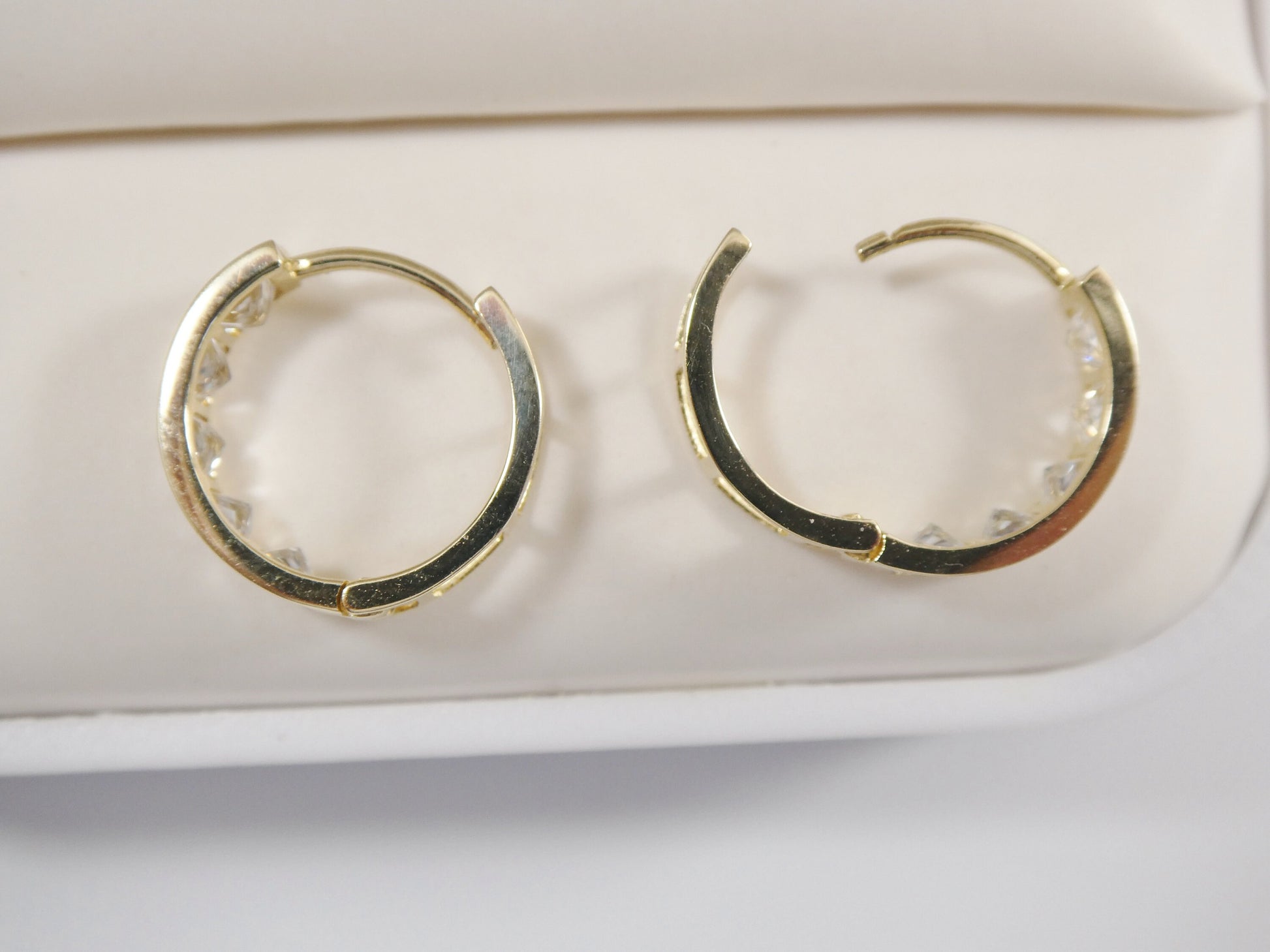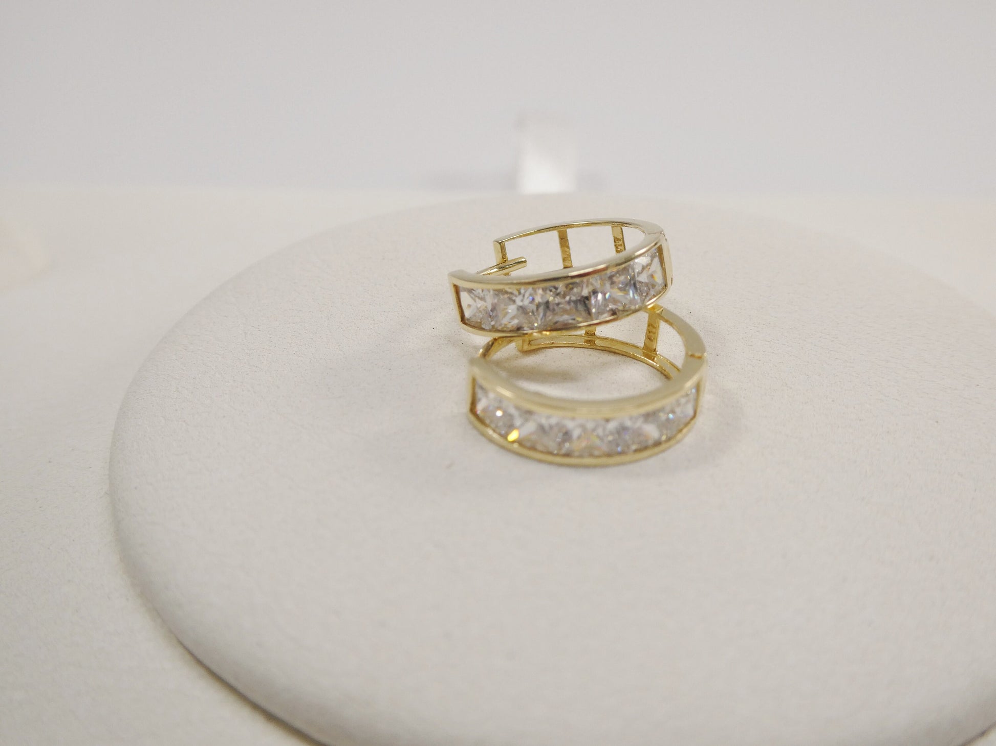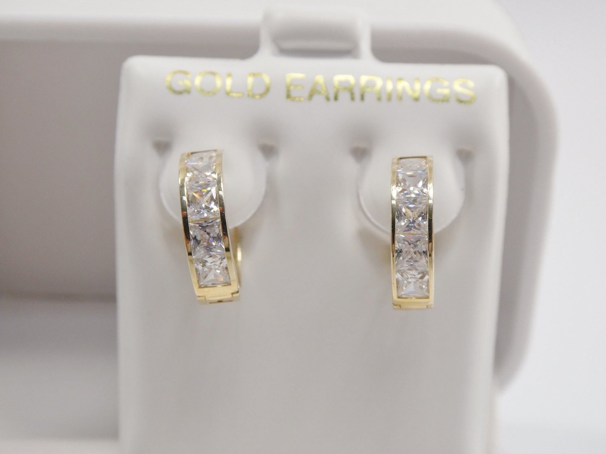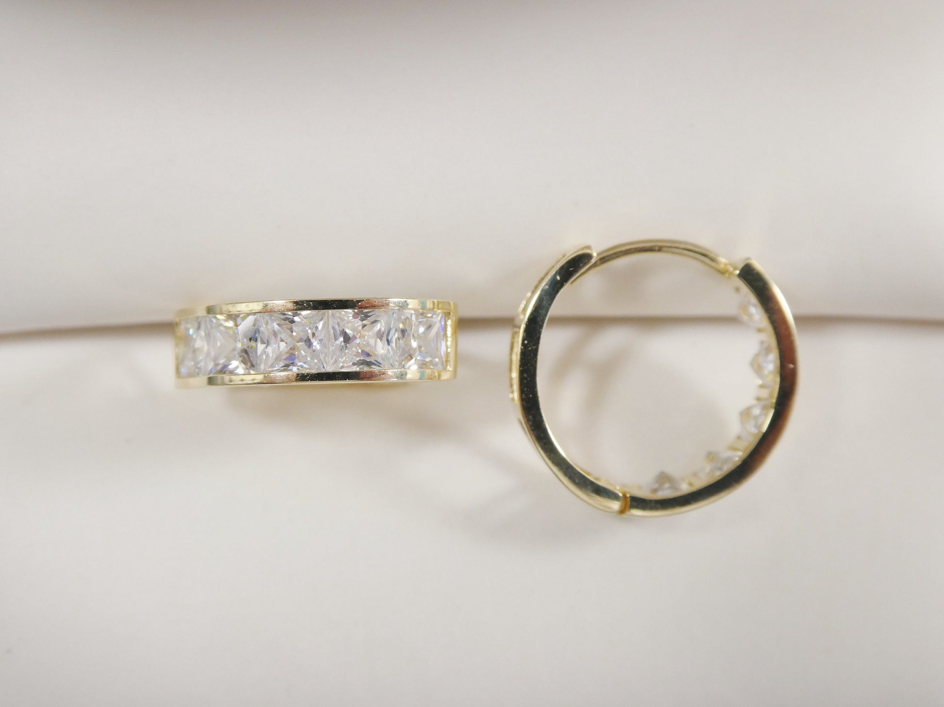 real 10k solid yellow gold princess-cut setting 14mm hoop huggie earrings