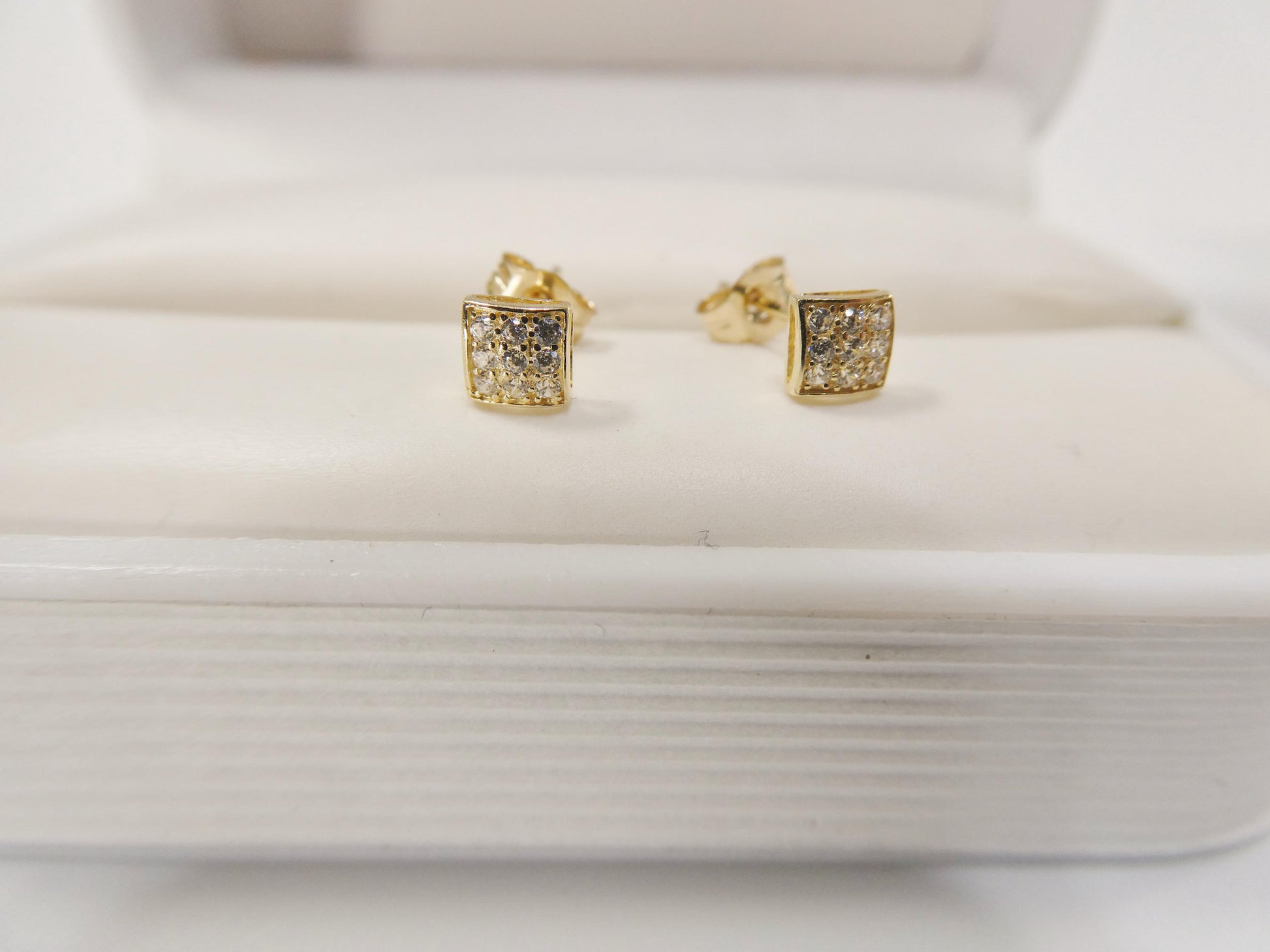 10K REAL SOLID YELLOW GOLD PUFF SQUARE PUSH POST STUD EARRING AAA SHINY CUBIC ZIRCONIA MICRO PAVE SETTING HIGH QUALITY HIGH POLISH GUARANTEE REAL 10K GOLD MARK AND STAMP COME WITH FREE GOLD FILLED BACKING COME IN NICE GIFT BOX MAKE IT GREAT GIFT FOR ANY OCCASION