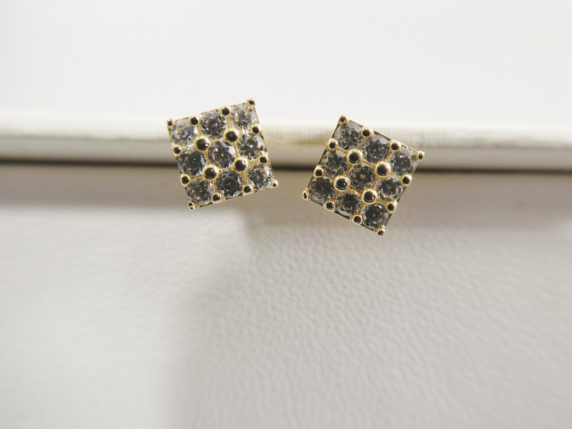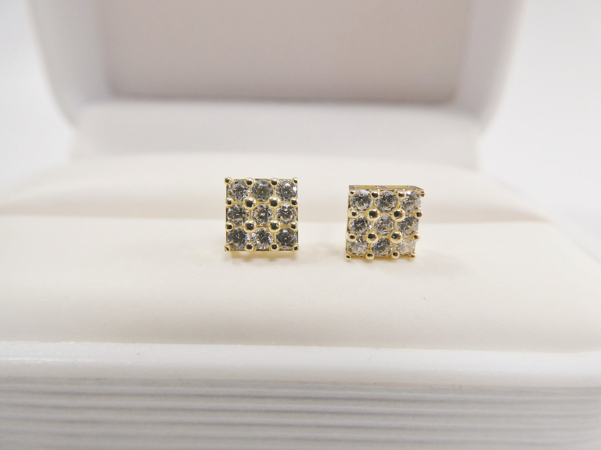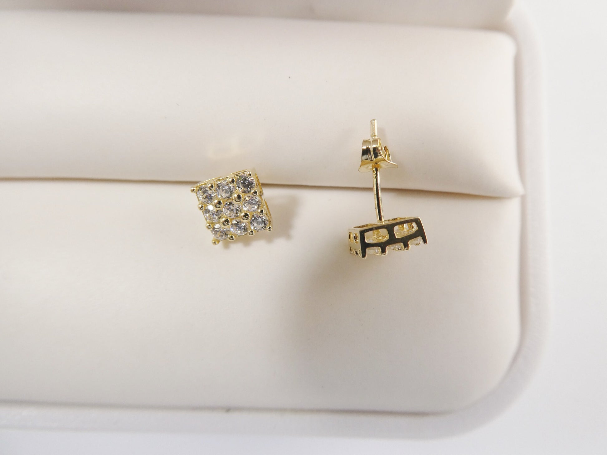 10K REAL SOLID YELLOW GOLD SQUARE PUSH POST STUD EARRING AAA SHINY CUBIC ZIRCONIA MICRO PAVE SETTING HIGH QUALITY HIGH POLISH GUARANTEE REAL 10K GOLD MARK AND STAMP COME WITH GOLD SILICON BACKING FOR COMFORT PLUS FREE GOLD FILLED BACKING COME IN NICE GIFT BOX MAKE IT GREAT GIFT FOR ANY OCCASION