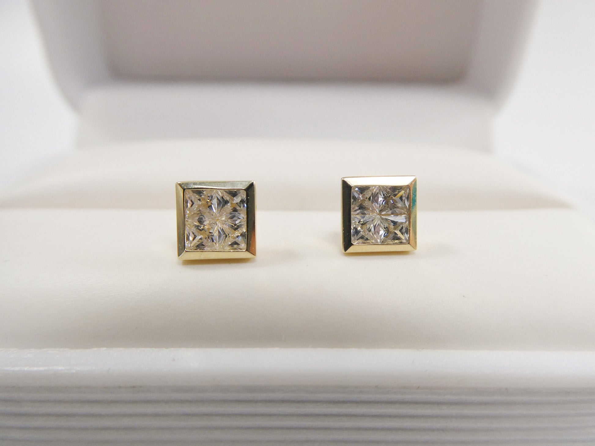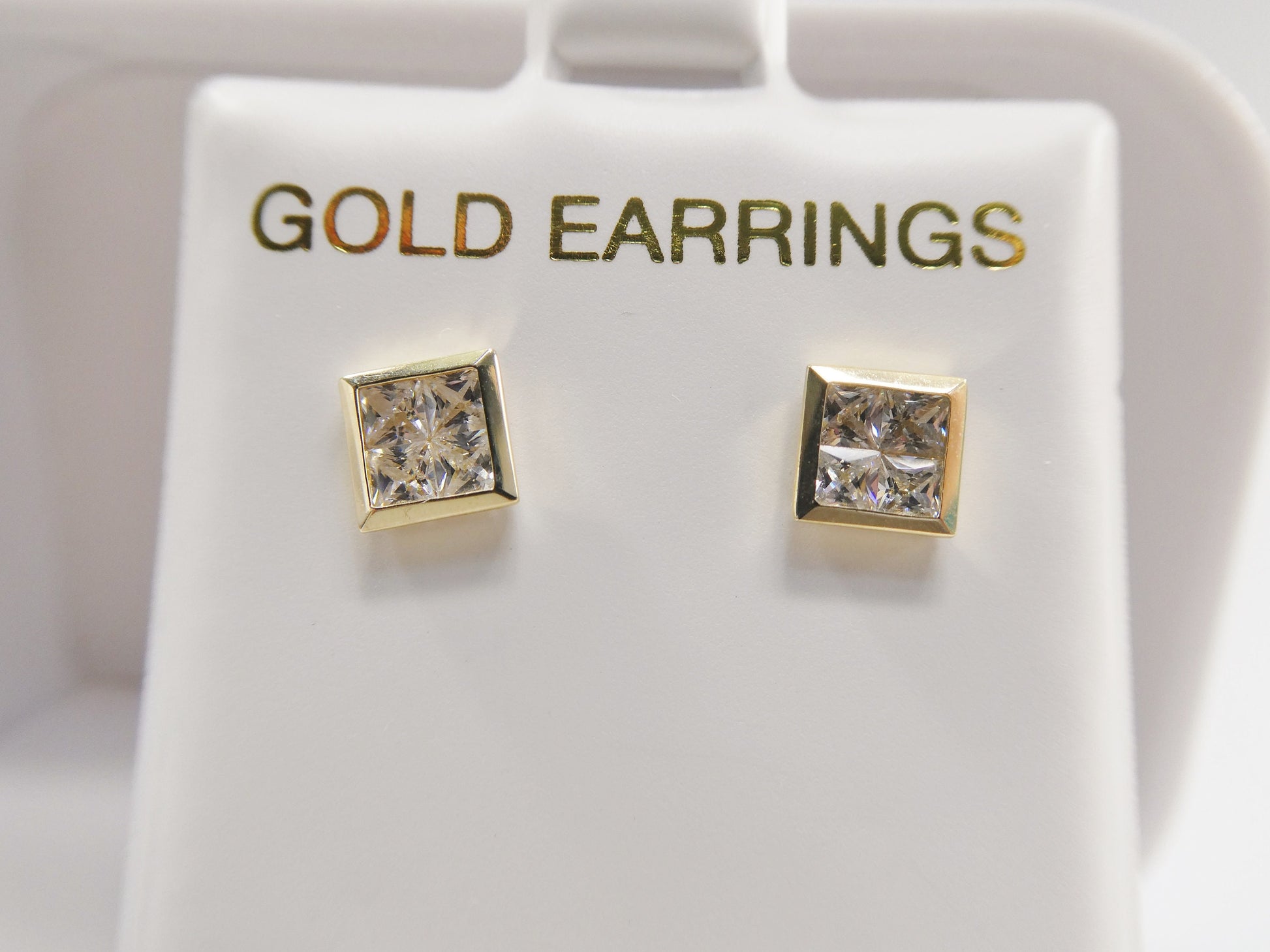 10K REAL SOLID YELLOW GOLD SQUARE PUSH POST STUD EARRING AAA SHINY CUBIC ZIRCONIA MICRO HIGH QUALITY HIGH POLISH GUARANTEE REAL 10K GOLD MARK AND STAMP COME WITH FREE GOLD FILLED BACKING COME IN NICE GIFT BOX MAKE IT GREAT GIFT FOR ANY OCCASION