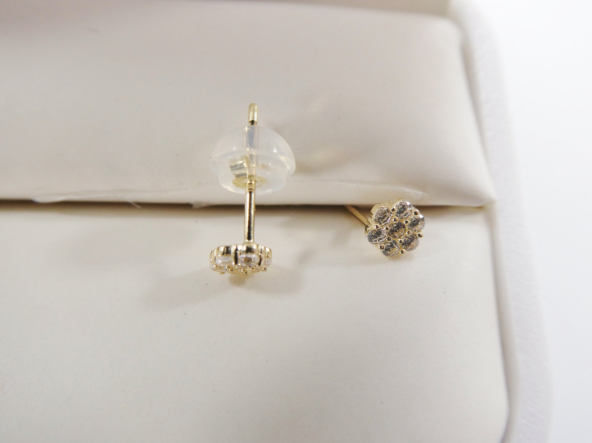 real 10k solid yellow gold tiny small flower push post stud earrings