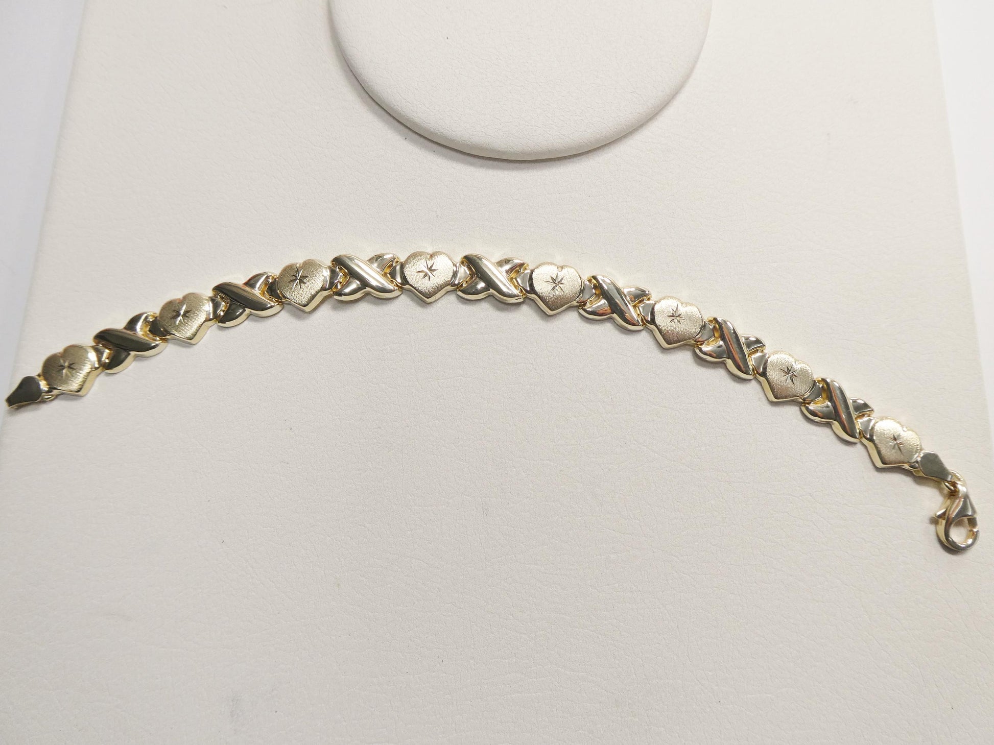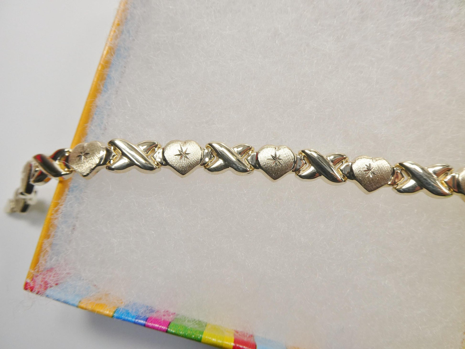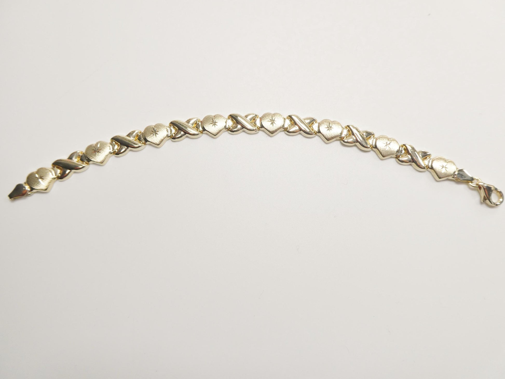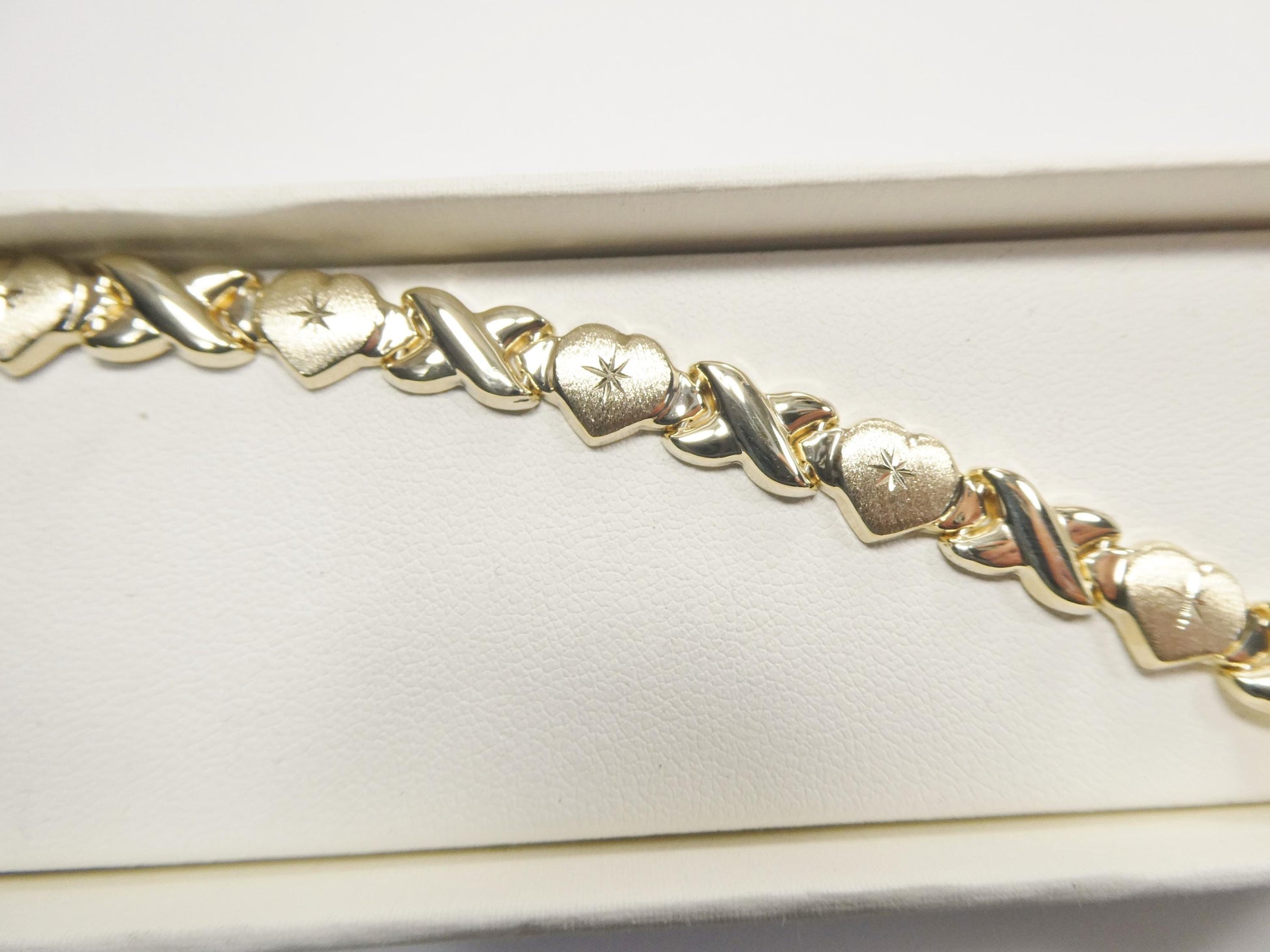 real 10k solid yellow gold xo heart hugs and kisses stampato 6.5 inch bracelet