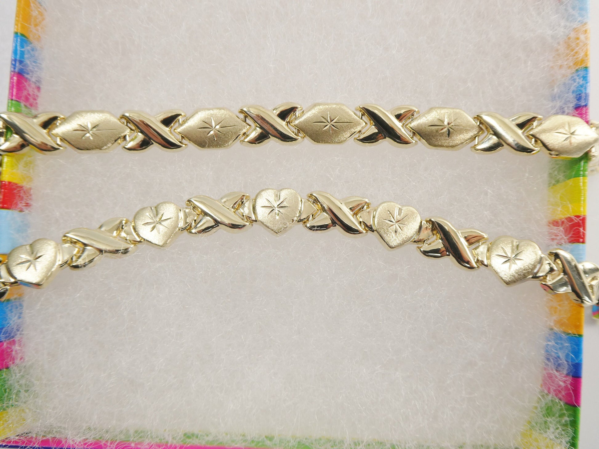 real 10k solid yellow gold xoxo hugs and kisses 7 inch and 8 inch stampato bracelet