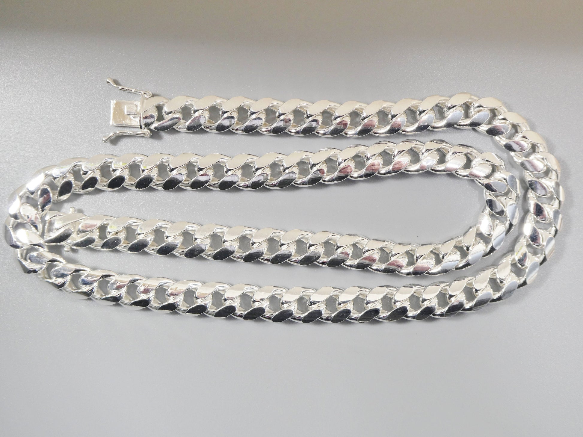 REAL 925 STERLING SILVER 10MM MIAMI CHAIN SEMI SOLID LINK BOX LOCK CLASP FOR SAFTY GUARANTEE REAL 925 STERLING SILVER MARK ANS STAMP MADE IN ITALY HIGH QUALITY HIGH POLISH GREAT FINISH COME IN 26 INCH 80 GRAM COME IN NICE GIFT BOX MAKE IT GREAT GIFT FOR ANY OCCASION