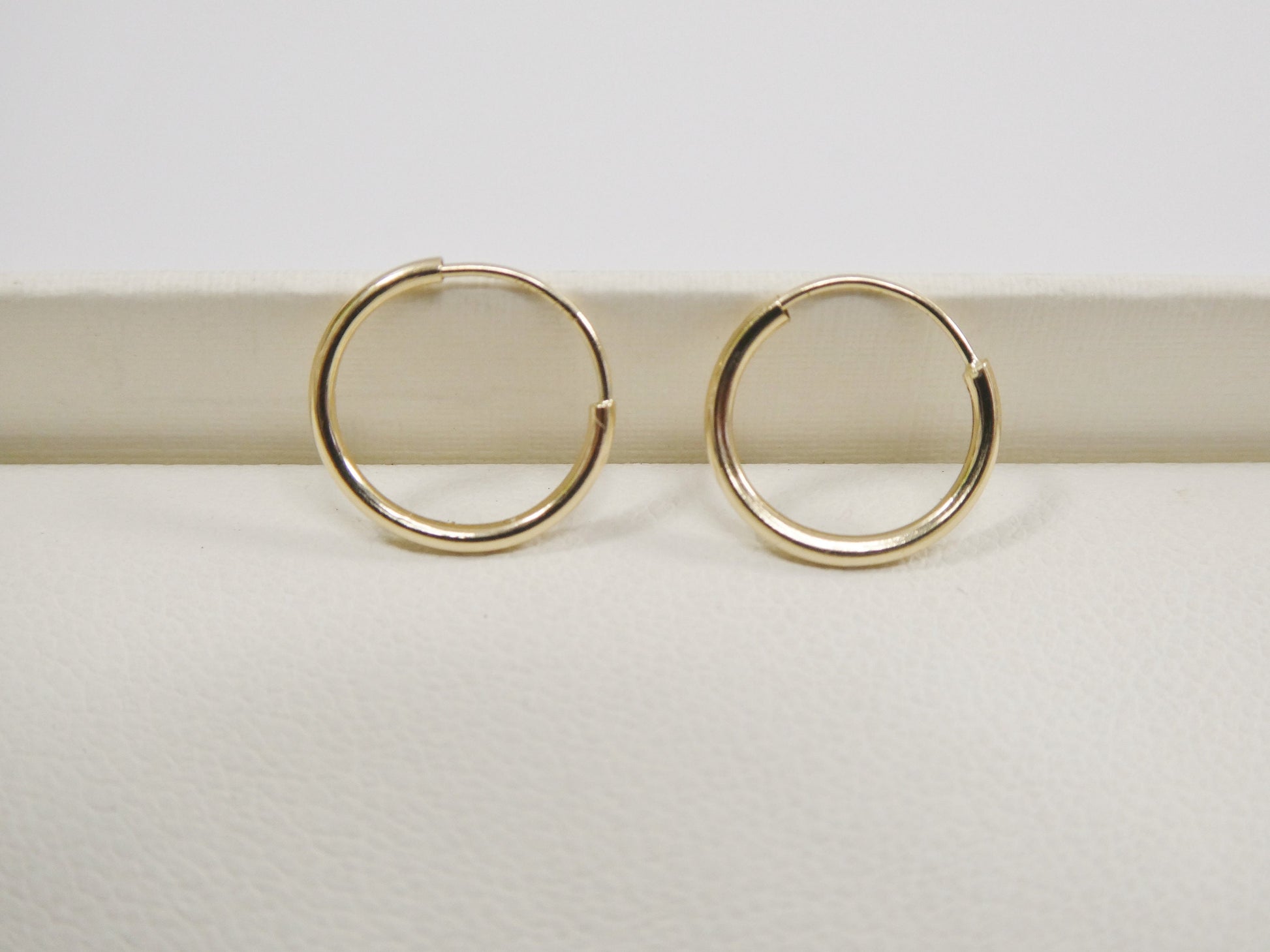 real 14k solid yellow gold 10.6mm endless small hoop lightweight hoop earring