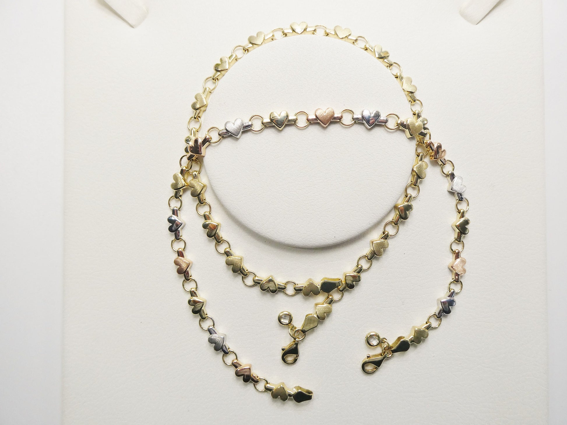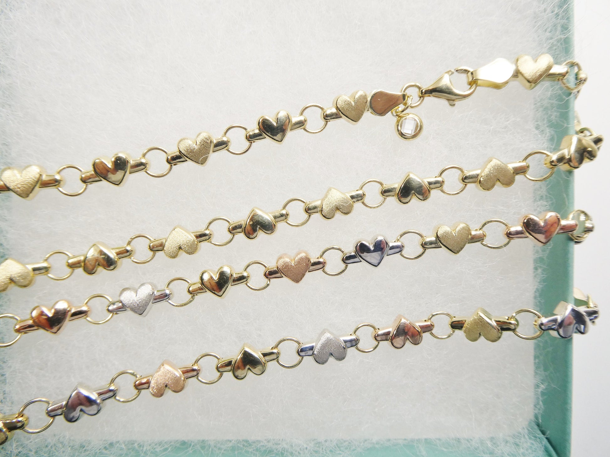 BRAND NEW 14K REAL SOLID YELLOW GOLD 10 INCH HEART ANKLET BRACELET COME IN TWO TONE /TRI COLOR / ALL YELLOW HIGH QUALITY / HIGH POLISH / GREAT FINISH GREAT PRICE / GUARANTEE REAL 14K GOLD MARK AND STAMP YOU CAN CHECK IT OUT ANY JEWELRY STORE LUXURY ATTRACTIVE LOOK COME IN NICE GIFT BOX MAKE IT GREAT GIFT FOR ANY OCCASION