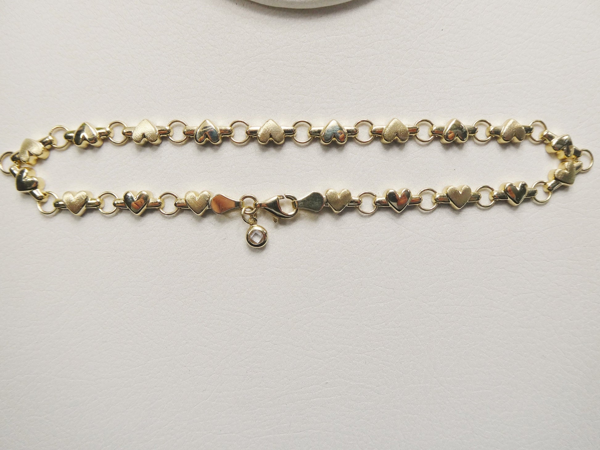 real 14k solid yellow gold 10 inch anklet heart bracelet
