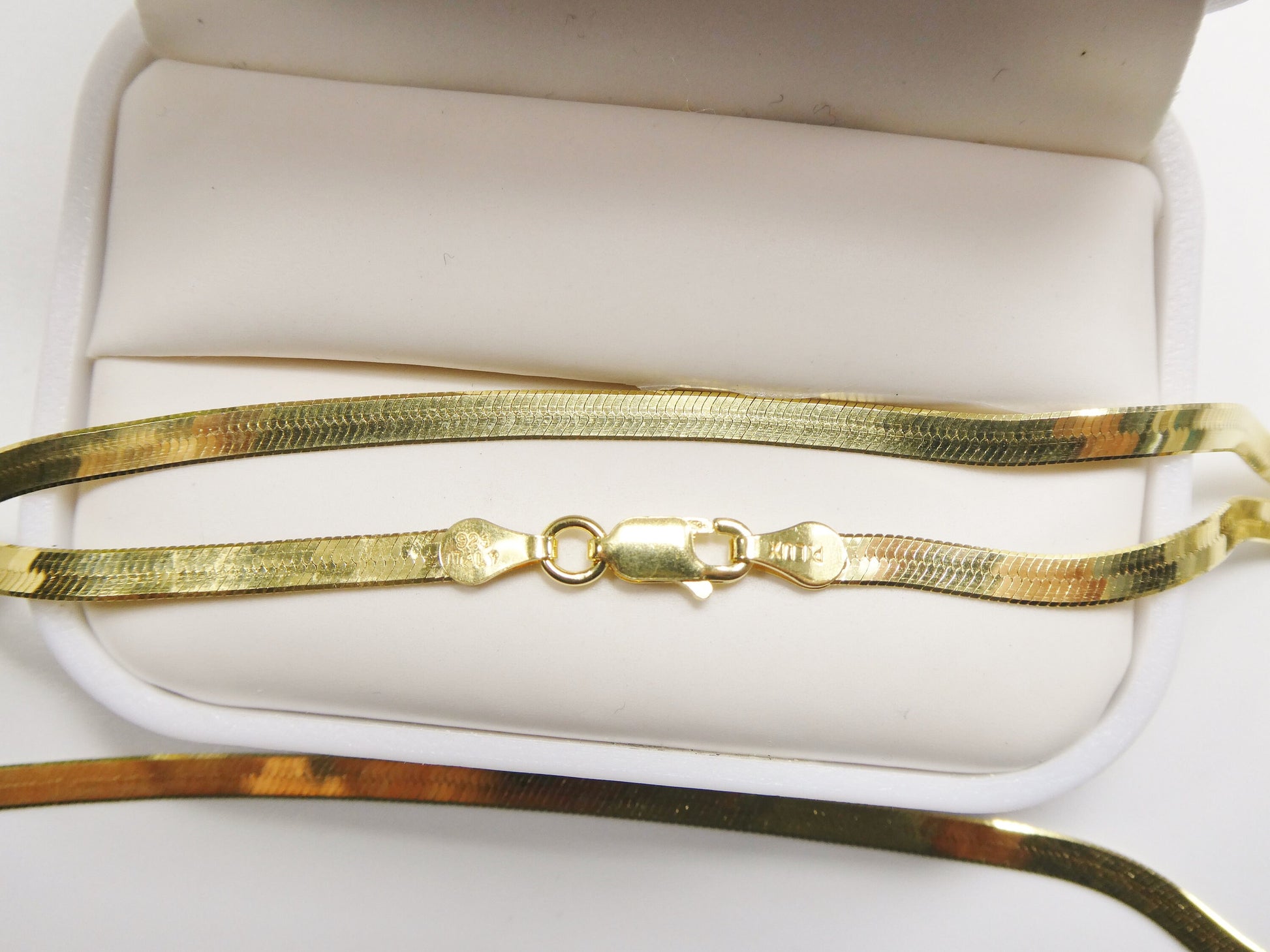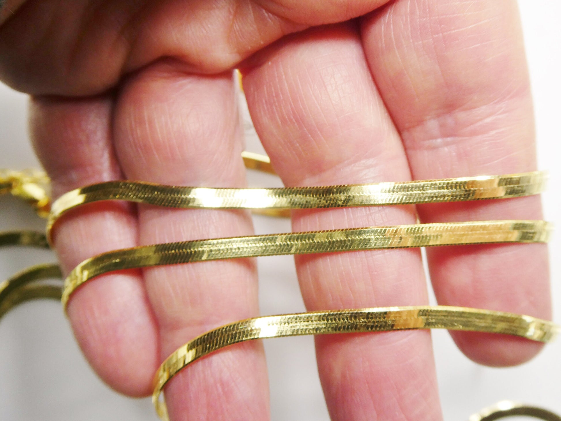 REAL 3.5MM 925 STERLING SILVER HERRINGBONE NECKLACE CHAIN / CHOKER 14K YELLOW GOLD FINISH HIGH QUALITY MADE IN ITALY HIGH POLISH GREAT PRICE COME IN CHOKER 12 INCH PLUS 3 INCH EXTENTION 16'18"20