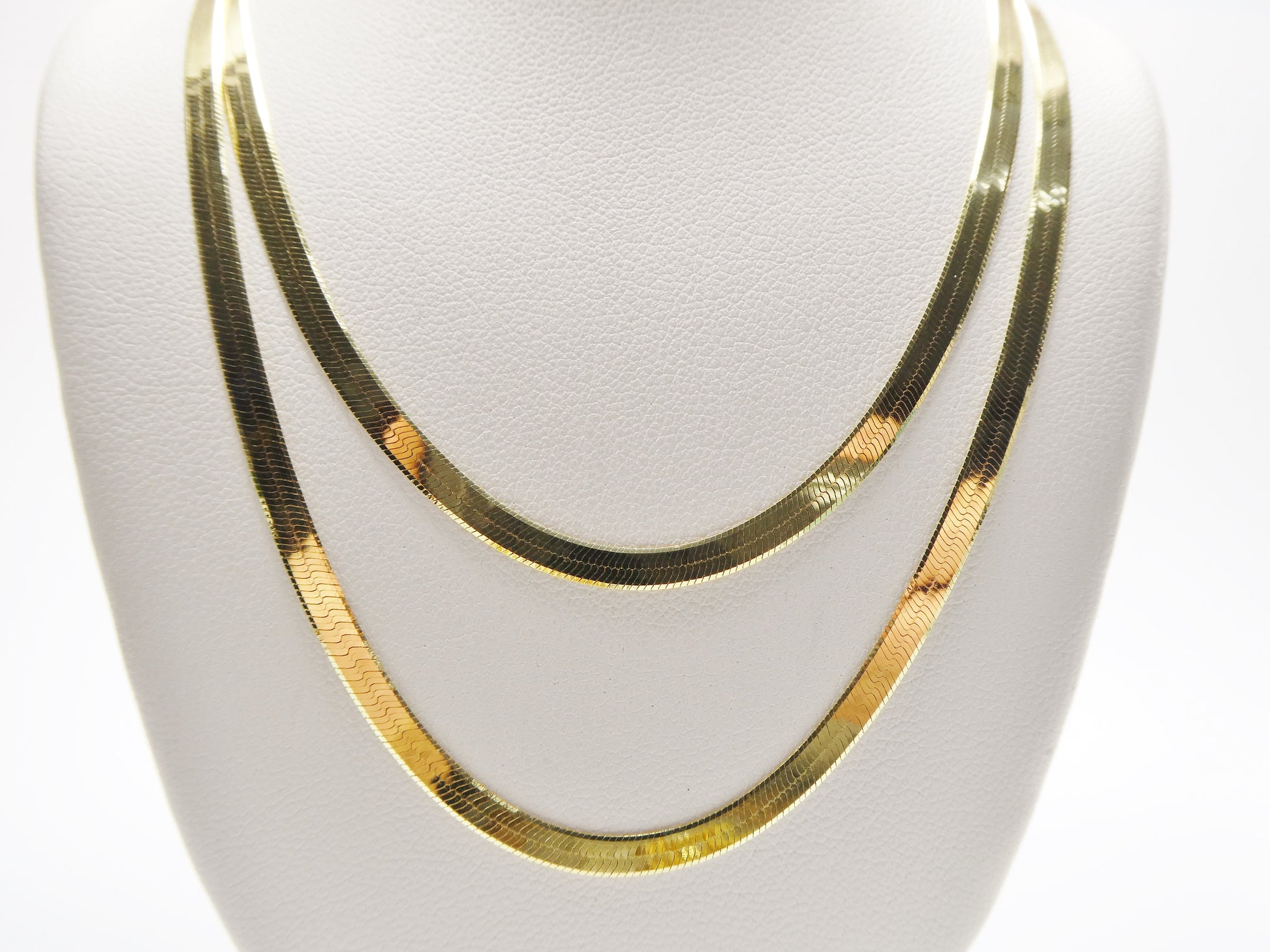 real 3.5mm 925 sterling silver herringbone necklace / choker 14k yellow gold finish