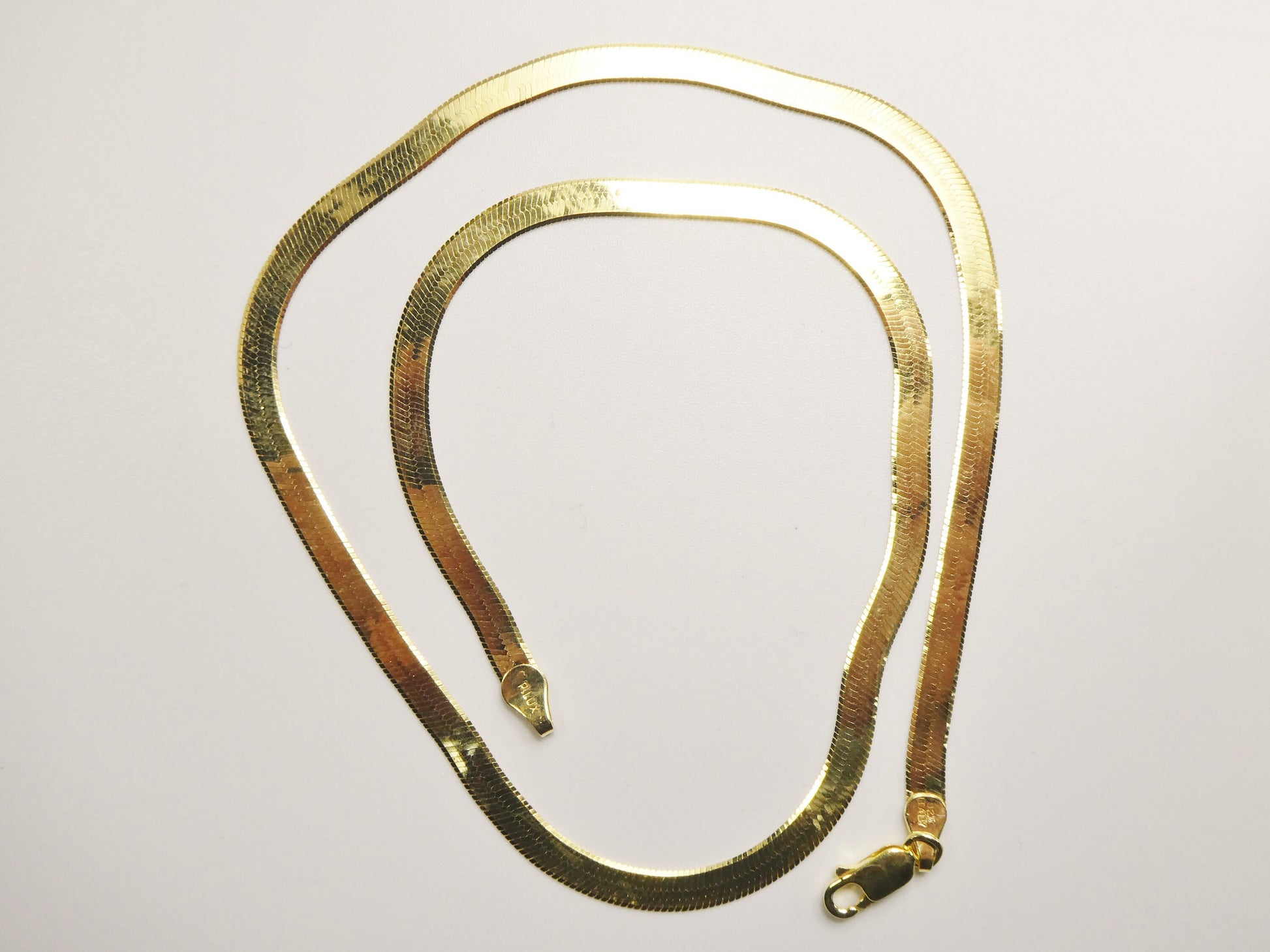 real 4.5mm 925 sterling silver herringbone necklace / choker 14k yellow gold finish