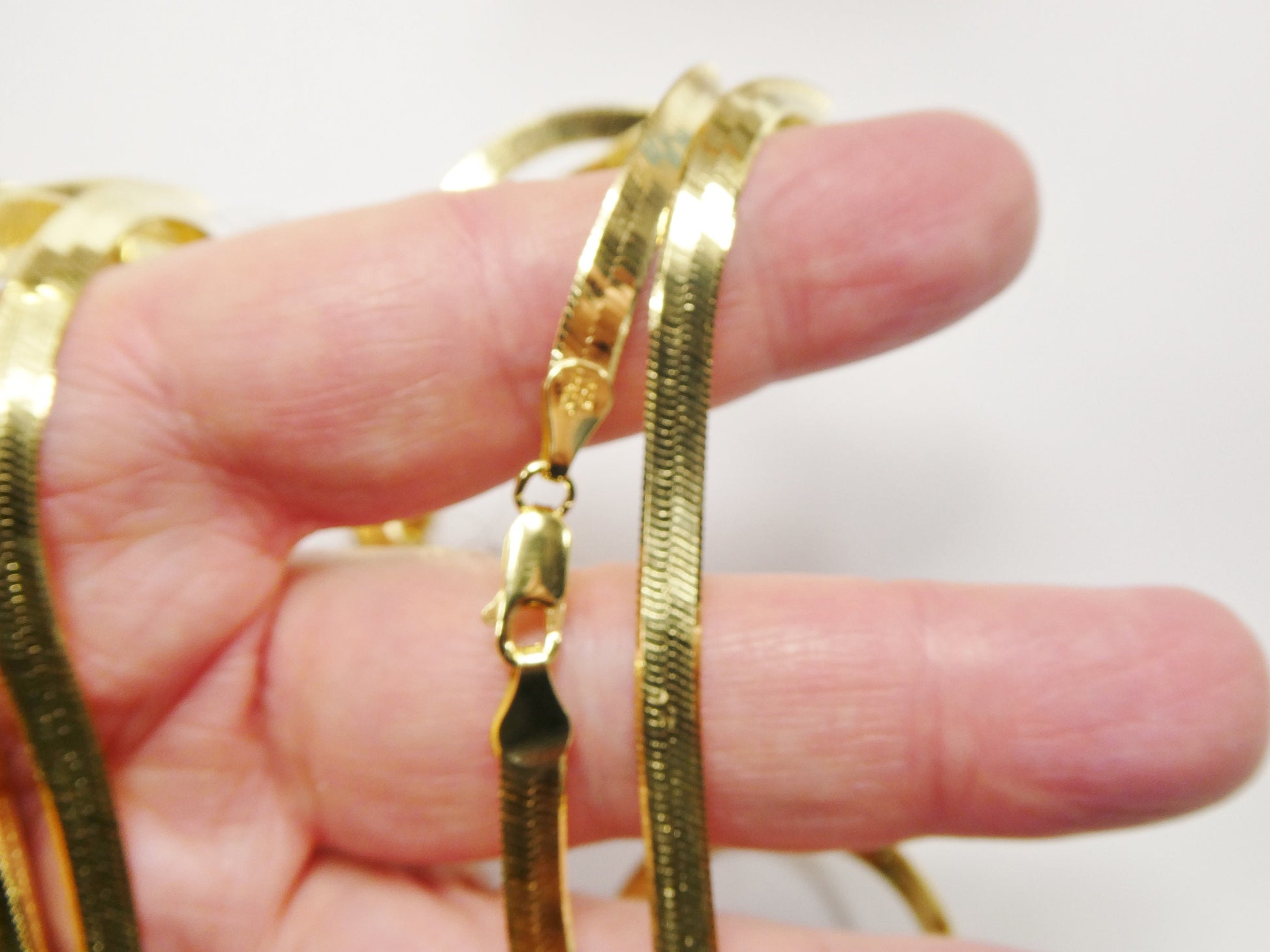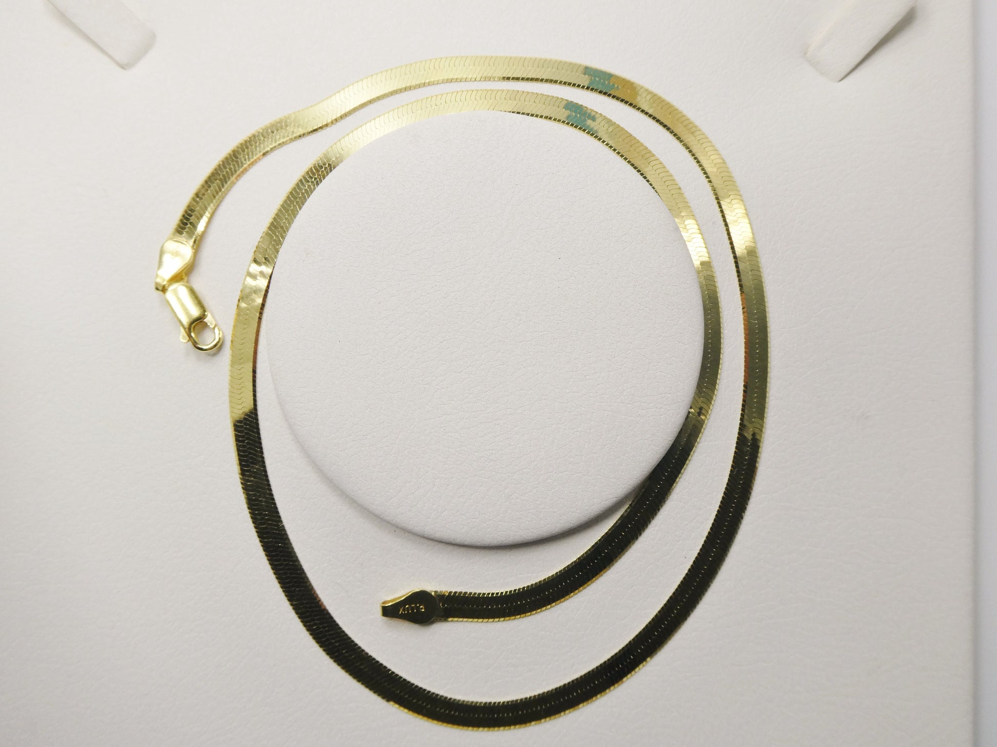 REAL 4.5MM STERLING SILVER HERRINGBONE NECKLACE CHAIN / CHOKER 14K YELLOW GOLD FINISH HIGH QUALITY MADE IN ITALY HIGH POLISH GREAT PRICE COME IN CHOKER 12 INCH PLUS 3 INCH EXTENTION 16'18"20