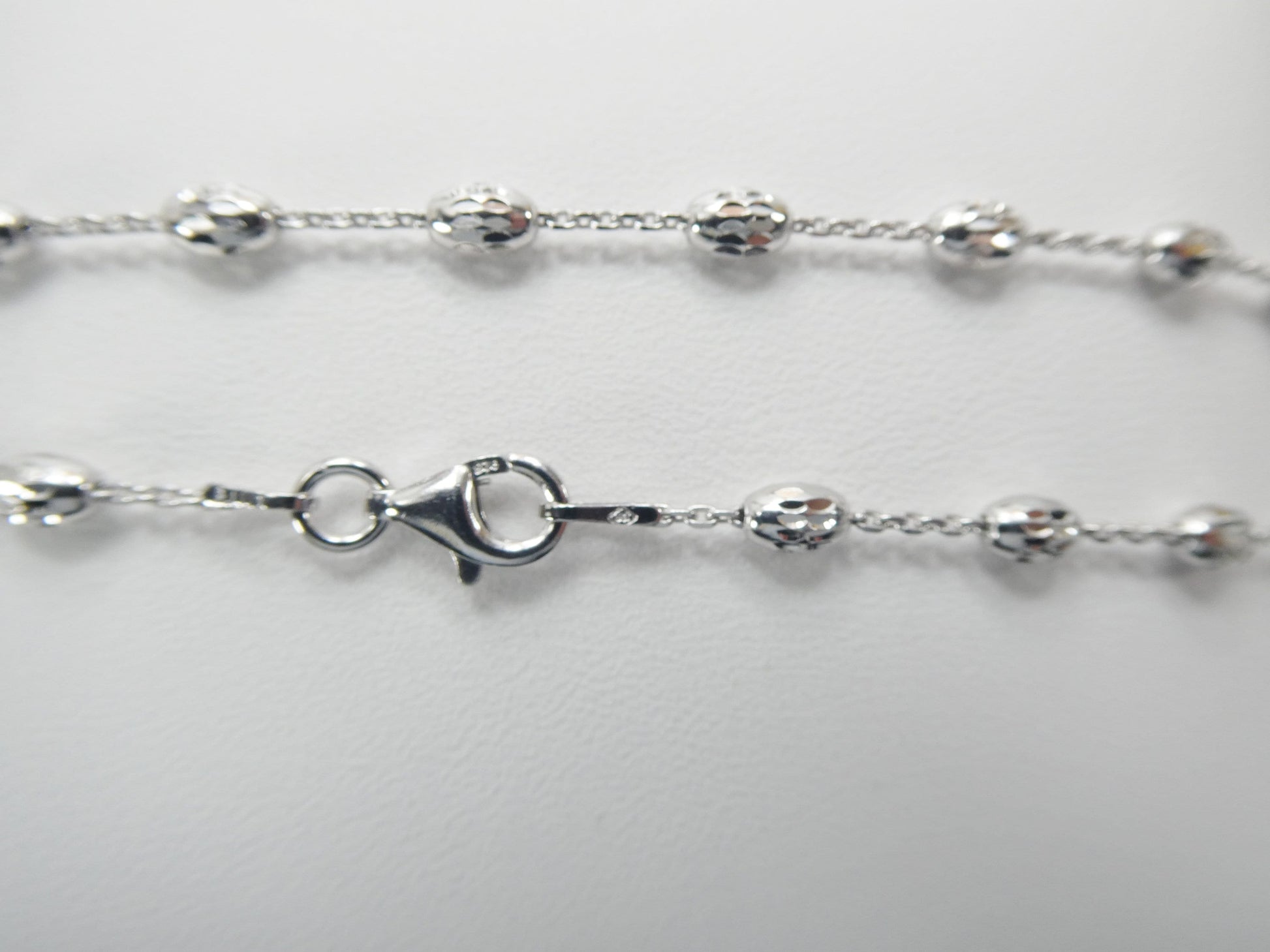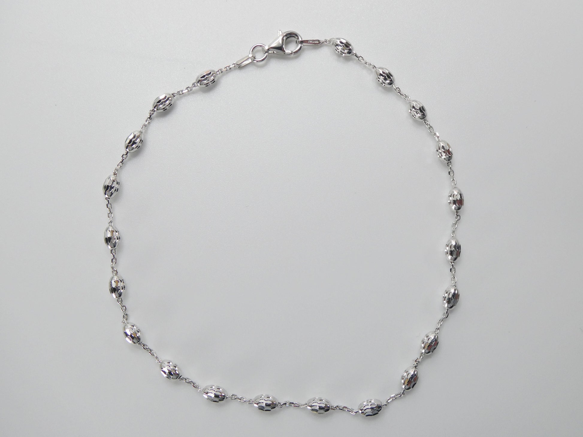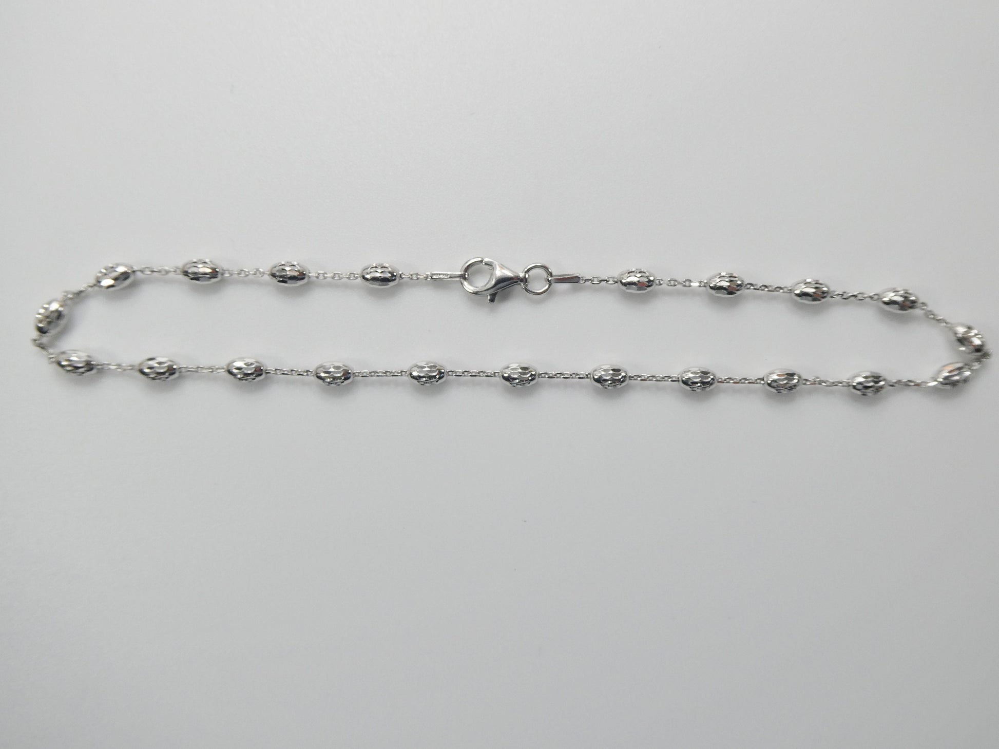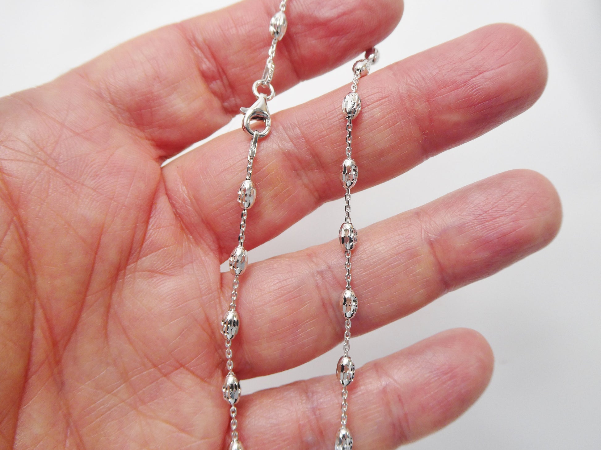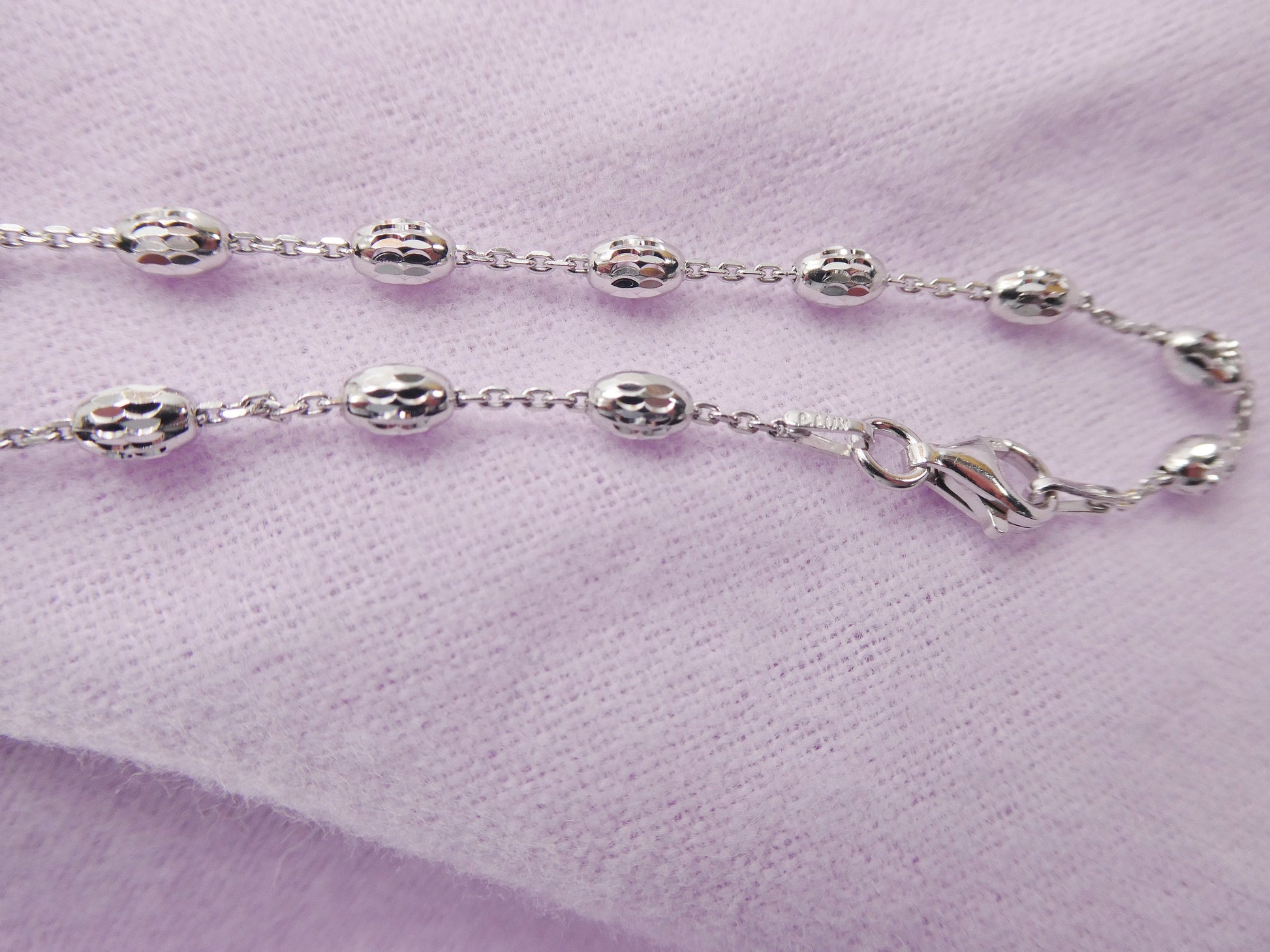 Real 925 sterling silver 10 inch cable chain bead anklet 14k white gold finish