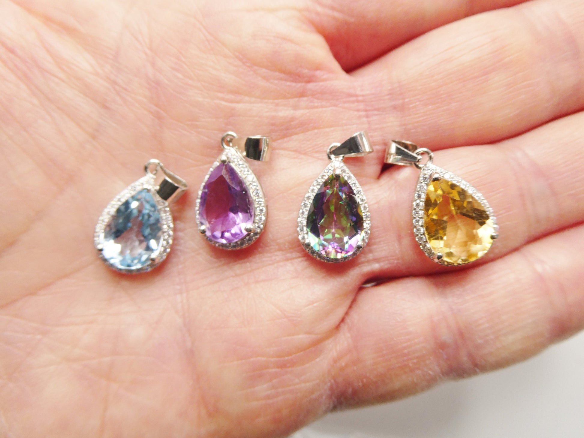 real 925 sterling silver 18 inch flat chain and genuine mystic teardrop pendent charm