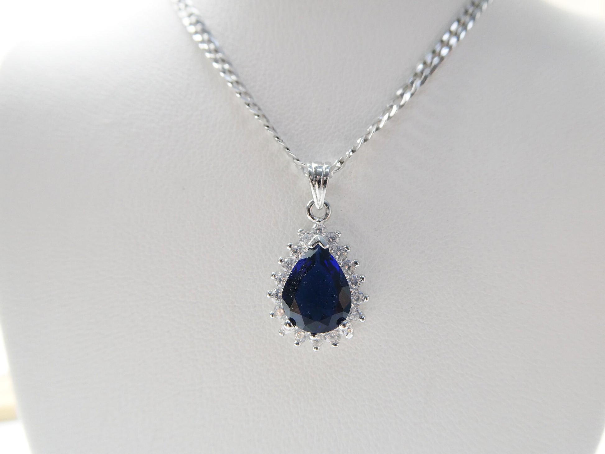 BRAND NEW NEW RELEASE REAL 925 STERLING SILVER 18 INCH FLAT CHAIN AND GENUINE MYSTIC PENDENT TEARDROP CHARM LOBSTER CLASP LOCK LUXURY ATTRACTIVE LOOK EXCELLENT WHITE GOLD COLOR FINISH RHODIUM PLATED FOR LASTING HIGH POLISH GREAT PRICE COME IN NICE GIFT BOX PERFECT GIFT FOR ANY OCCASION