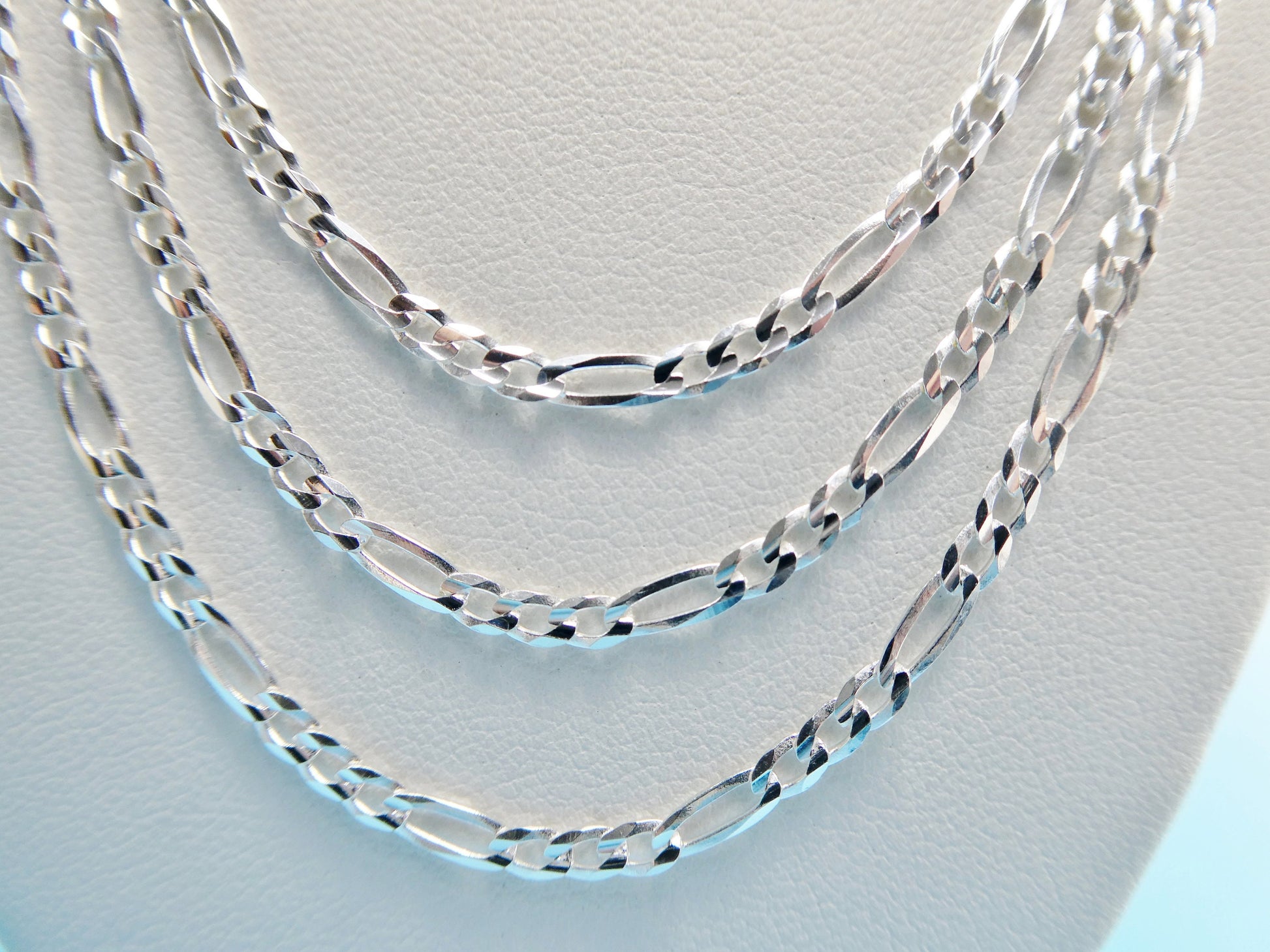 real 925 sterling silver 2.6mm Italian concave figaro solid chain lobster lock clasp