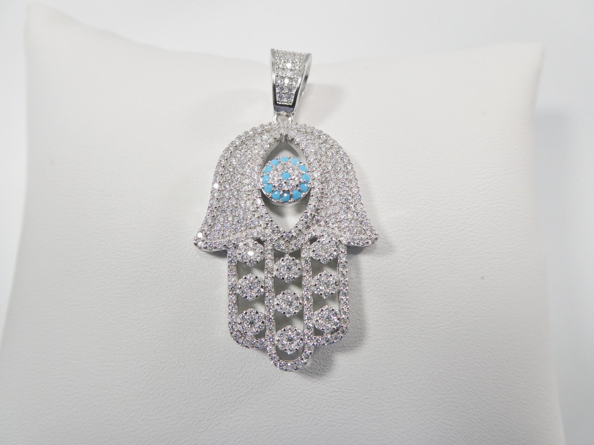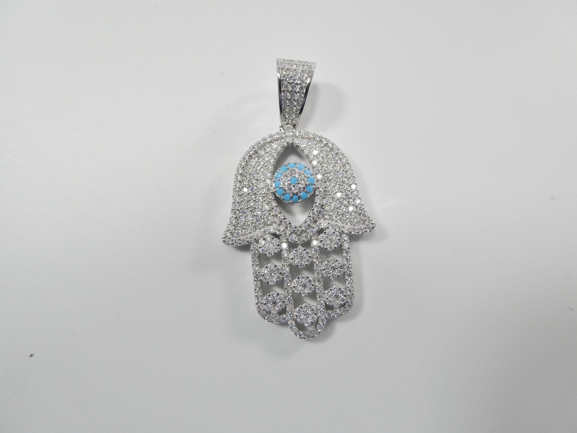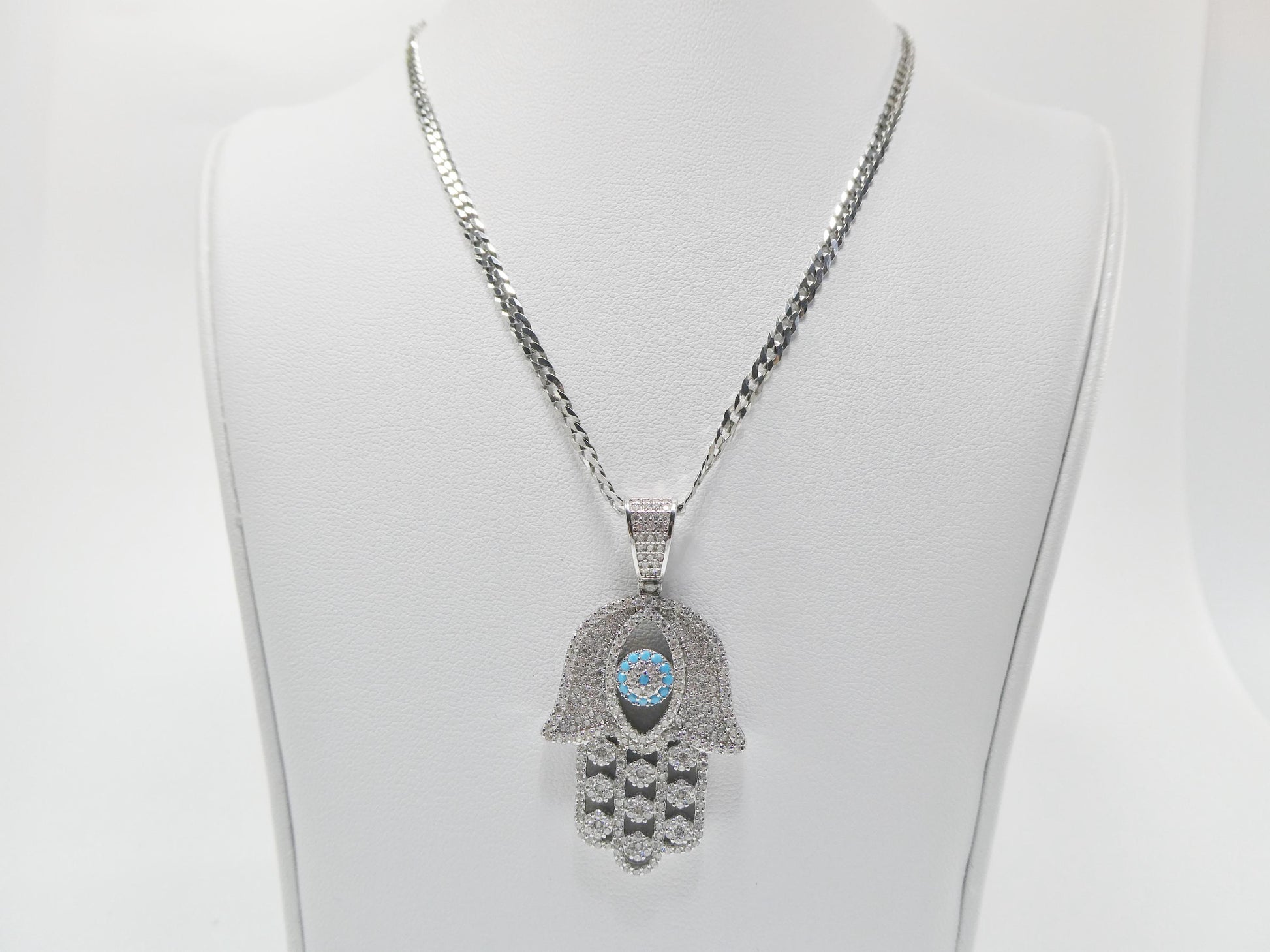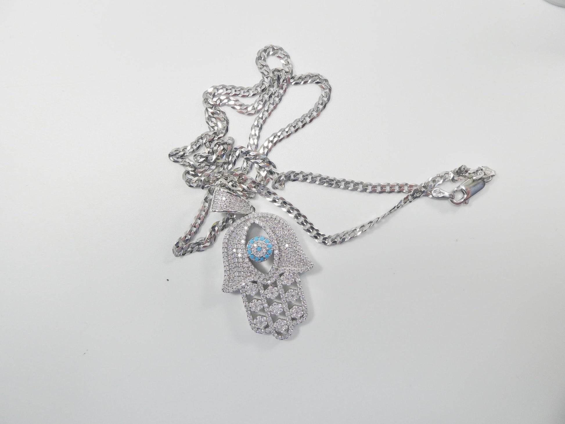 real 925 sterling silver 22 inch chain and hamsa evil eye charm pendent