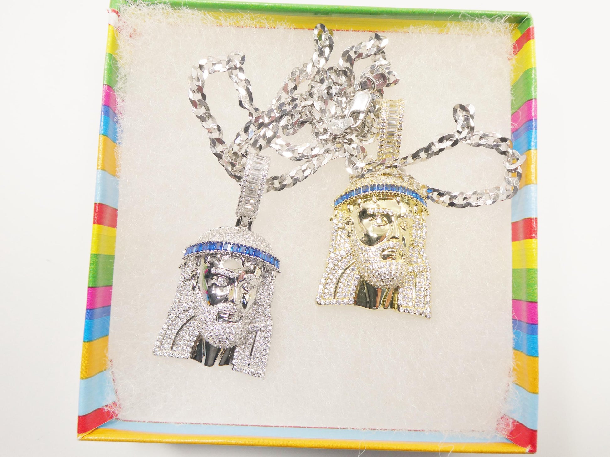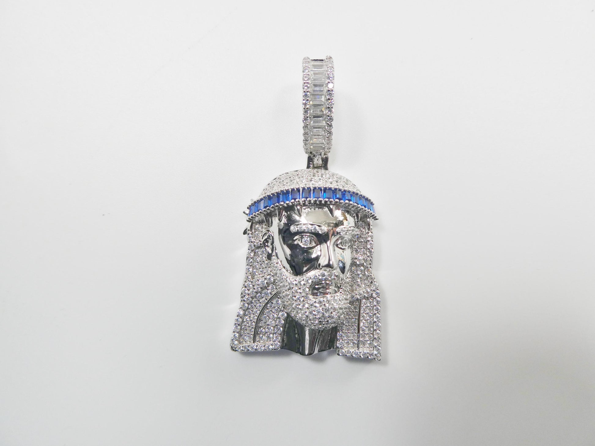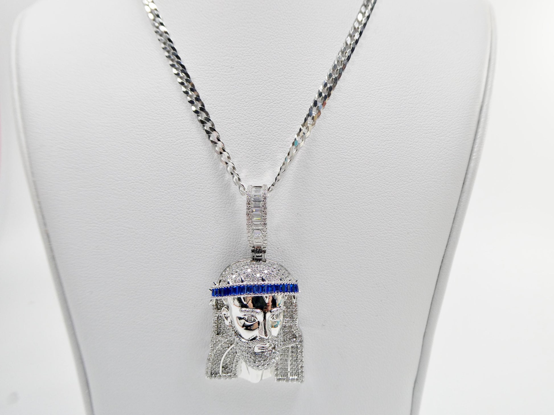 BRAND NEW NEW RELEASE REAL 925 STERLING SILVER SET 22 INCH FLAT MIAMI CHAIN AND LARGE JESUS HEAD FACE PENDENT CHARM LOBSTER CLASP LOCK LUXURY ATTRACTIVE LOOK EXCELLENT WHITE GOLD COLOR FINISH RHODIUM PLATED FOR LASTING HIGH POLISH GREAT PRICE COME IN NICE GIFT BOX PERFECT GIFT FOR ANY OCCASION