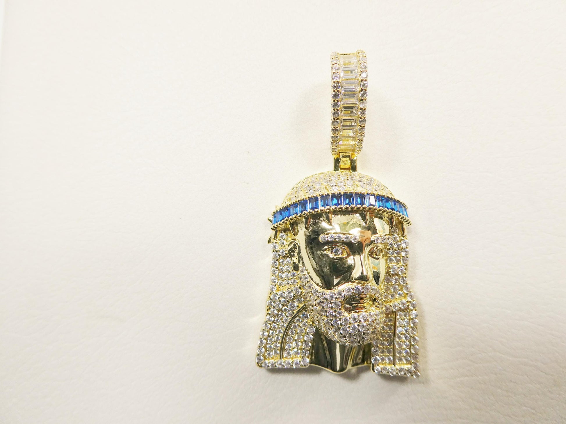 real 925 sterling silver 22 inch flat chain and large Jesus head pendent charm