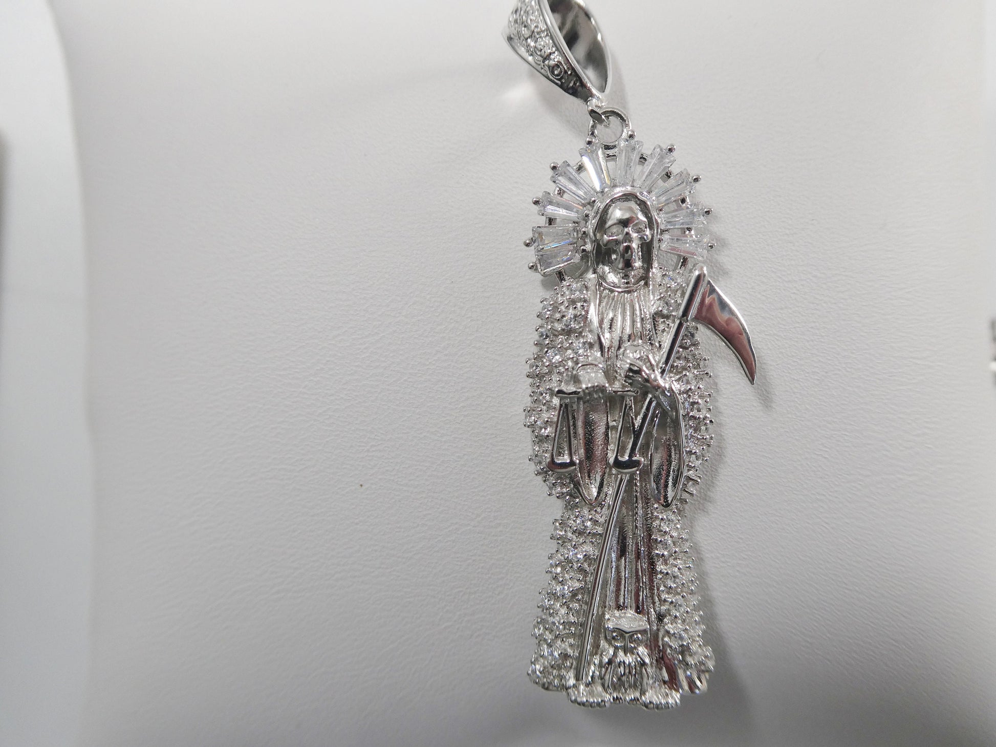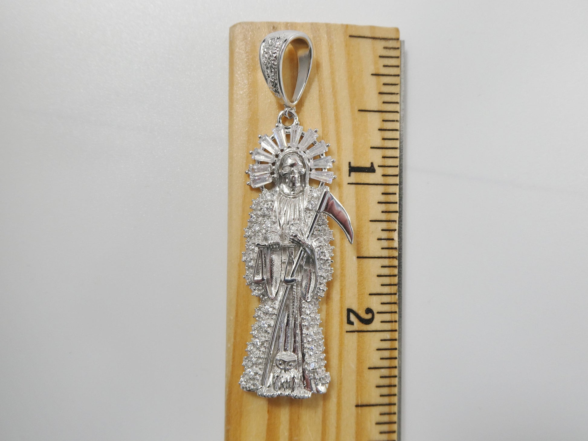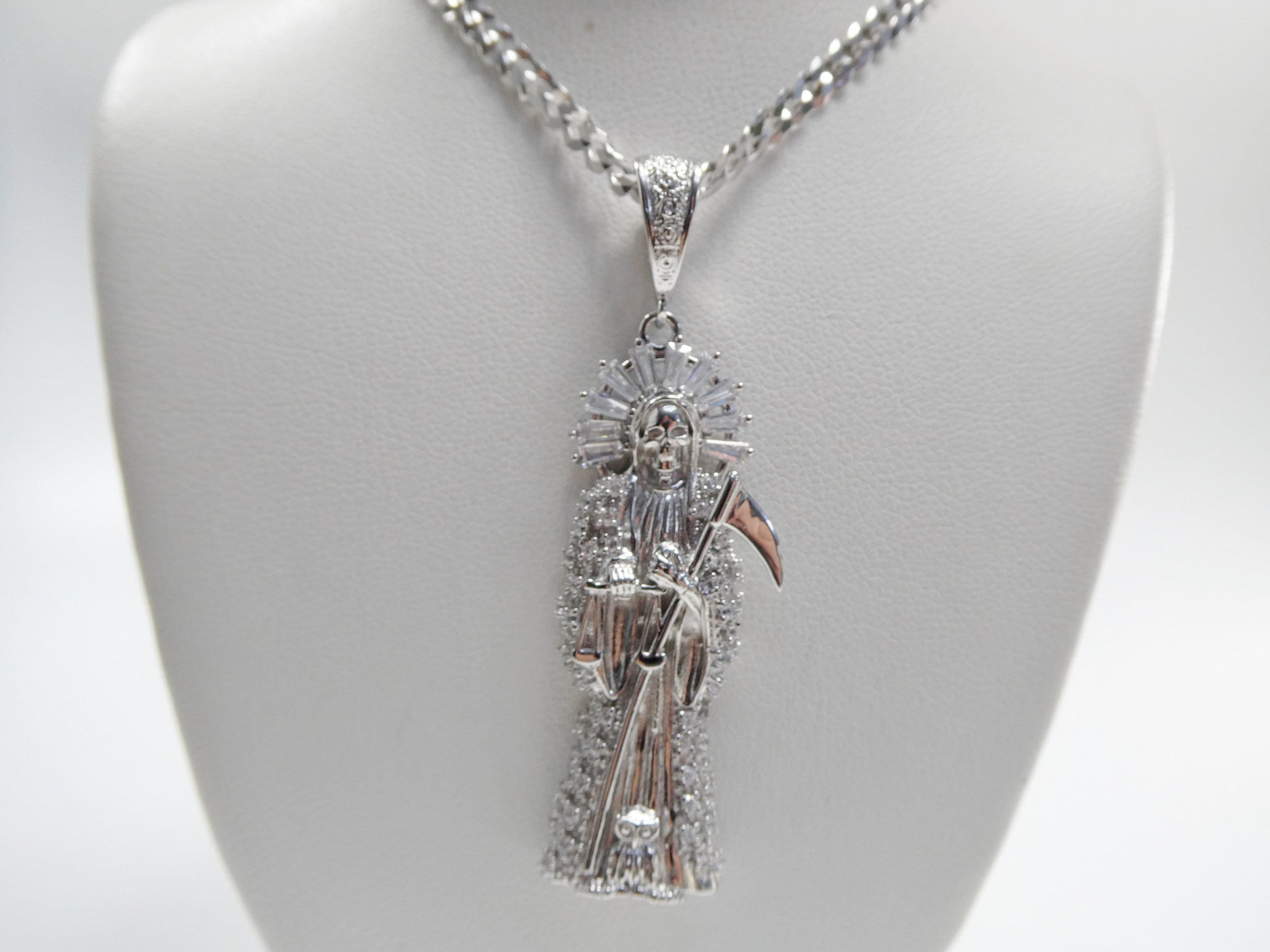 real 925 sterling silver 22 inch flat chain and large santa muerte pendent charm