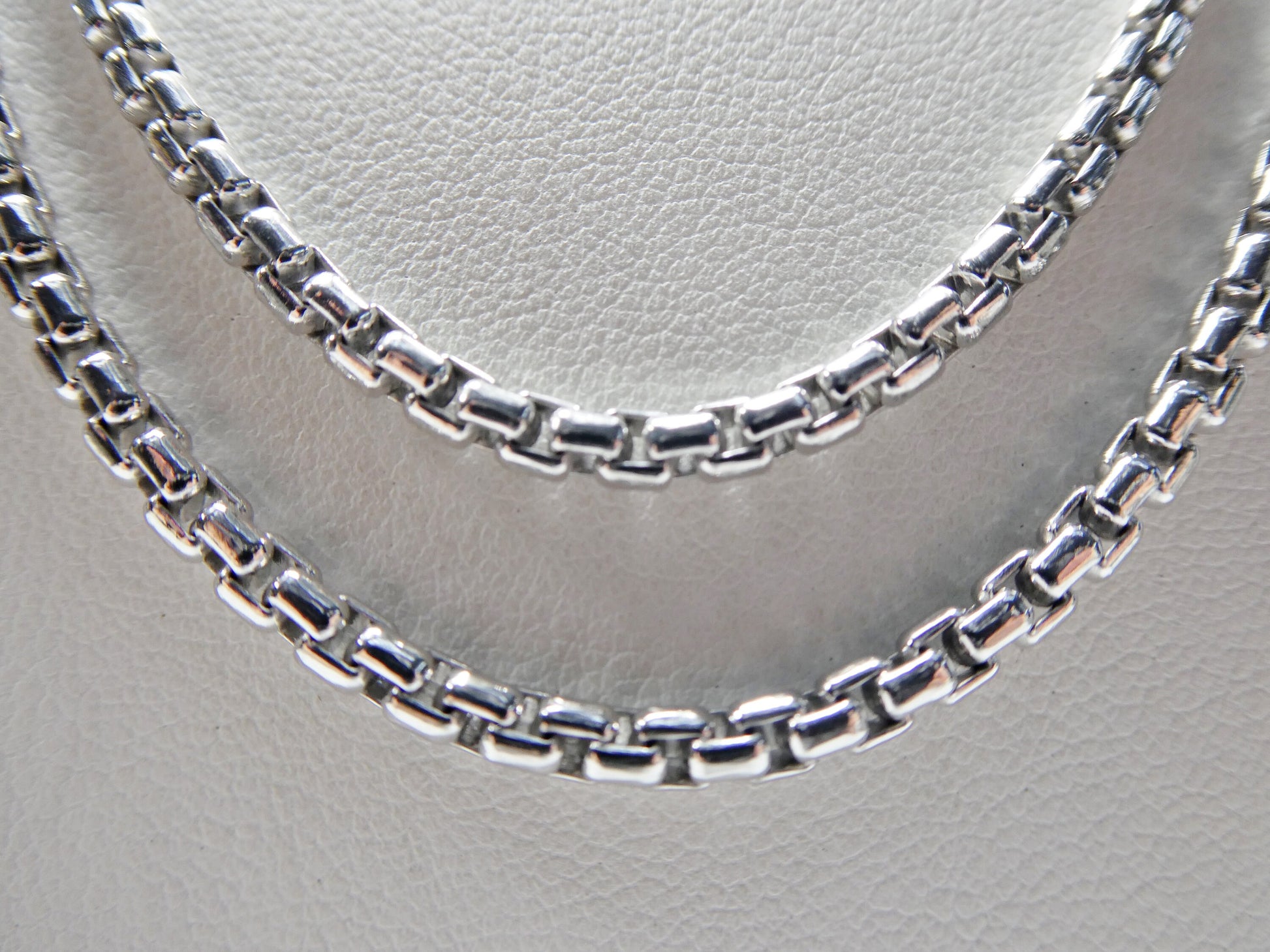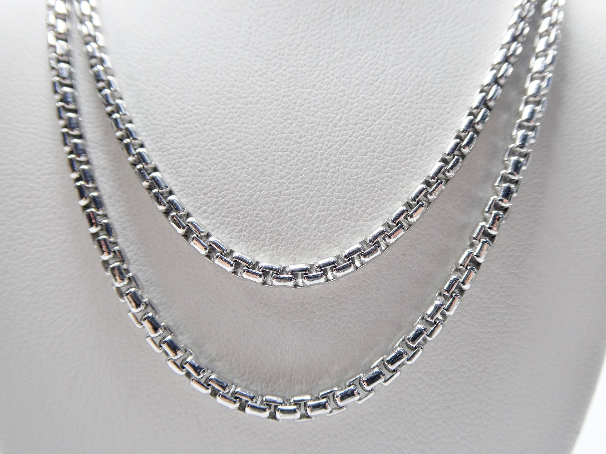 REAL ITALYAN 925 STERLING SILVER SOLID ROUND BOX CHAIN PERFECT 14K WHITE GOLD FINISH RHODOIUM PLATED FOR LASTING HIGH POLISH GREAT QUALITY GREAT PRICE LOBSTER LOCK COME IN / 20"/ 22" GUARANTEE REAL 925 SILVER MARK AND STAMP COME IN NICE GIFT BOX MAKE IT PERFECT GIFT FOR ANY OCCASION