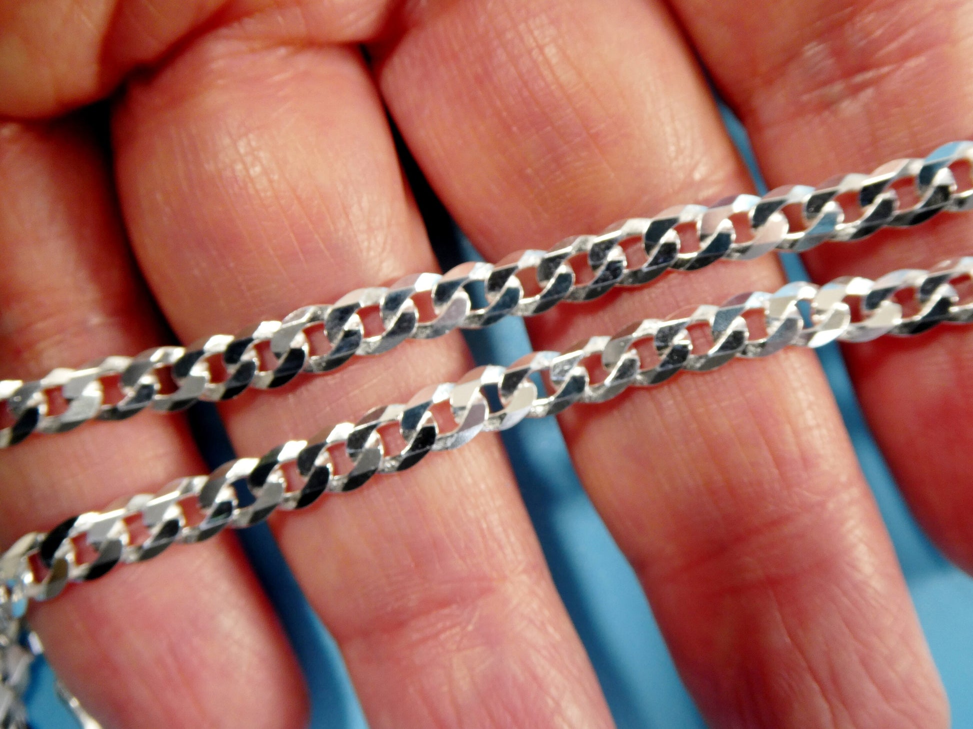 REAL 925 STERLING SILVER 4.50MM ITALIAN SOLID CURB CHAIN LOBSTER LOCK HIGH QUALITY HIGH POLISH GREAT PRICE MADE IN ITALY