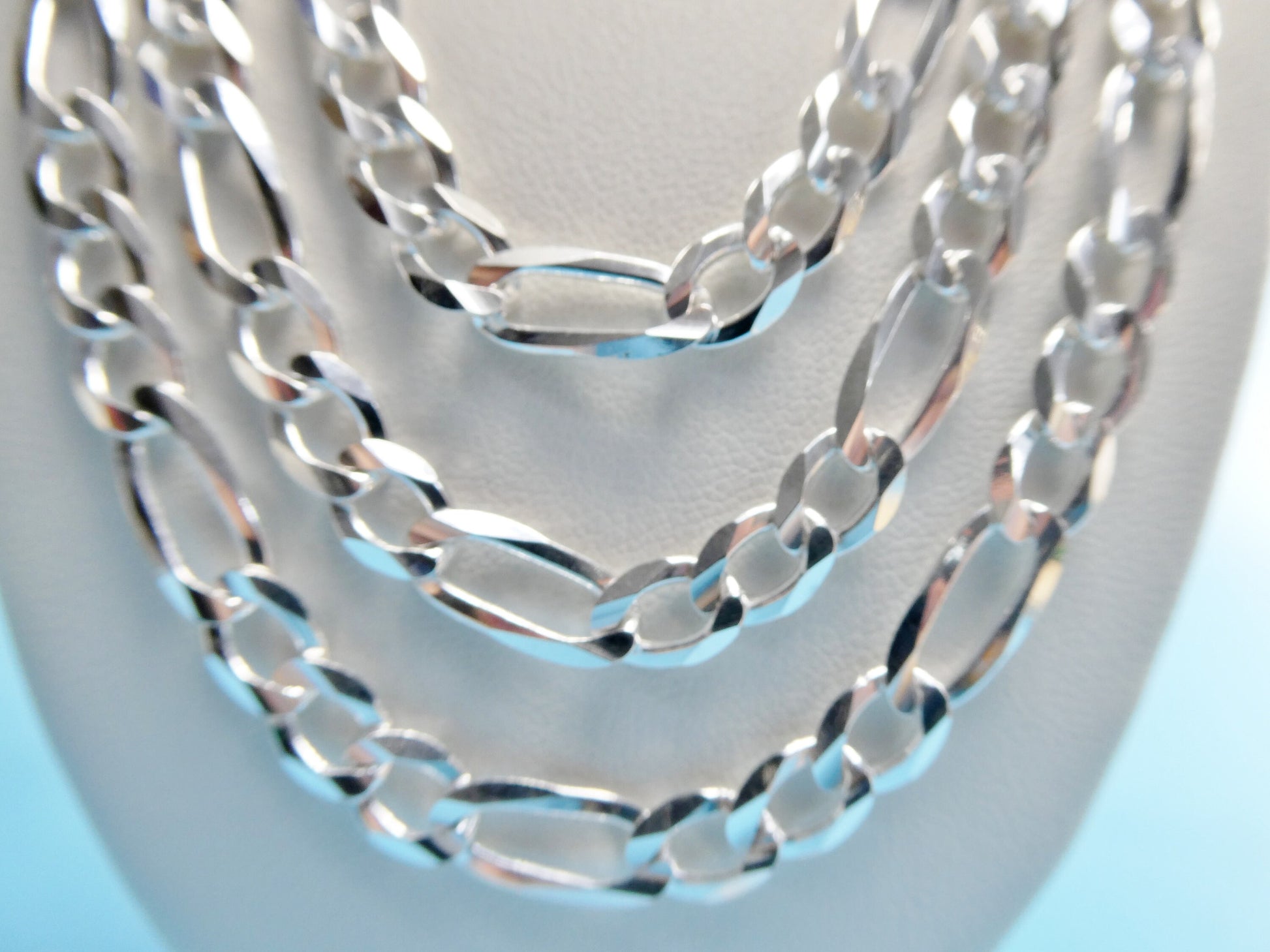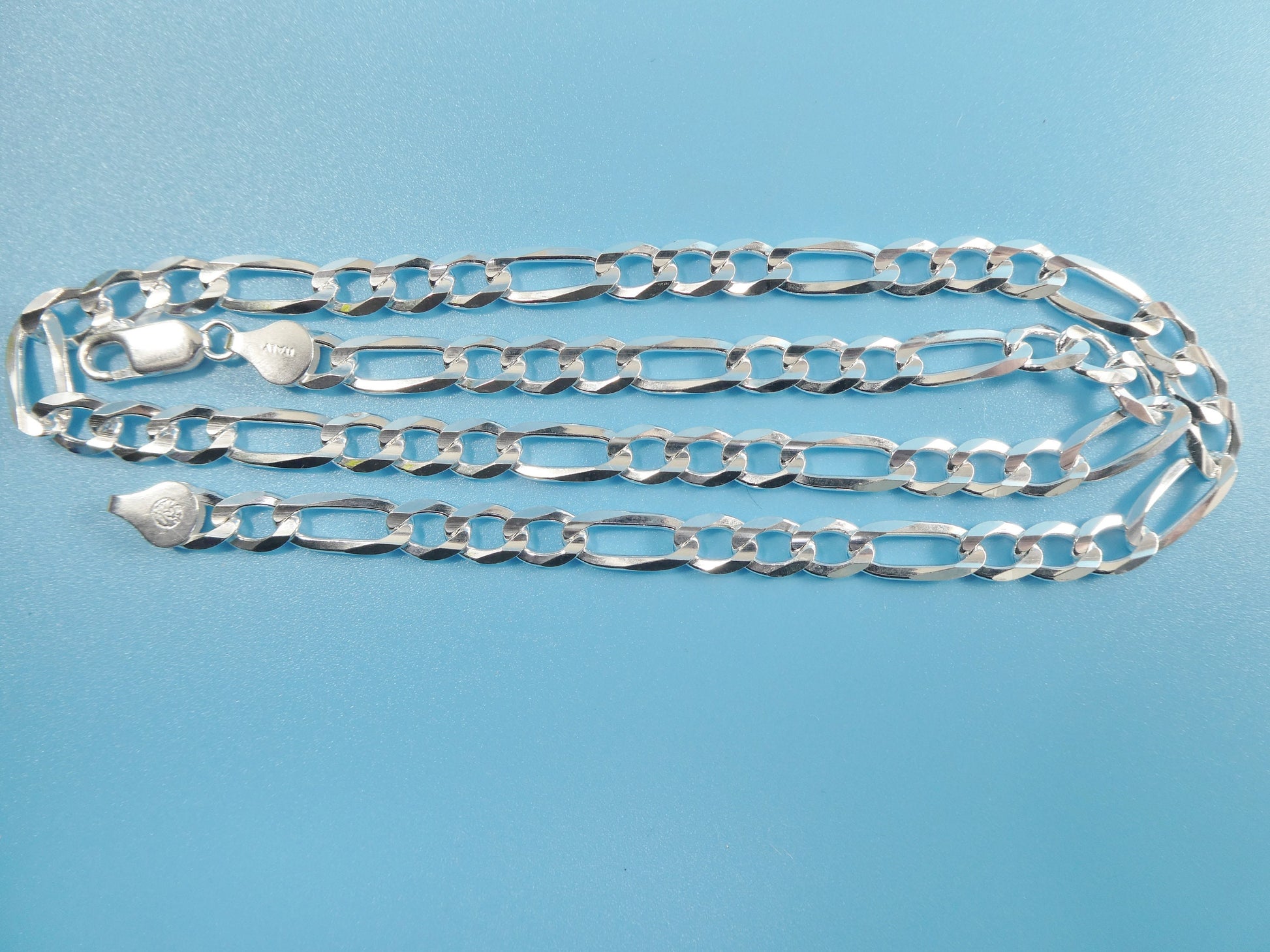real 925 sterling silver 6.4mm Italian concave figaro solid chain lobster lock clasp