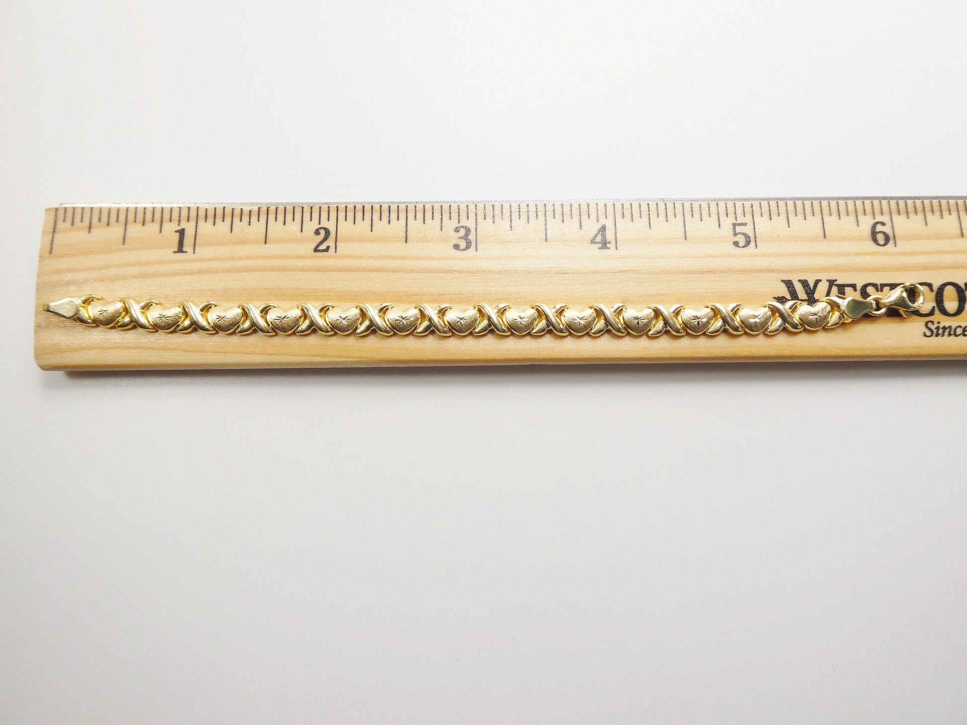 real 925 sterling silver / 6 /6.5 / 7 inch mini xoxo heart bracelet all yellow tone 14k yellow gold color finish