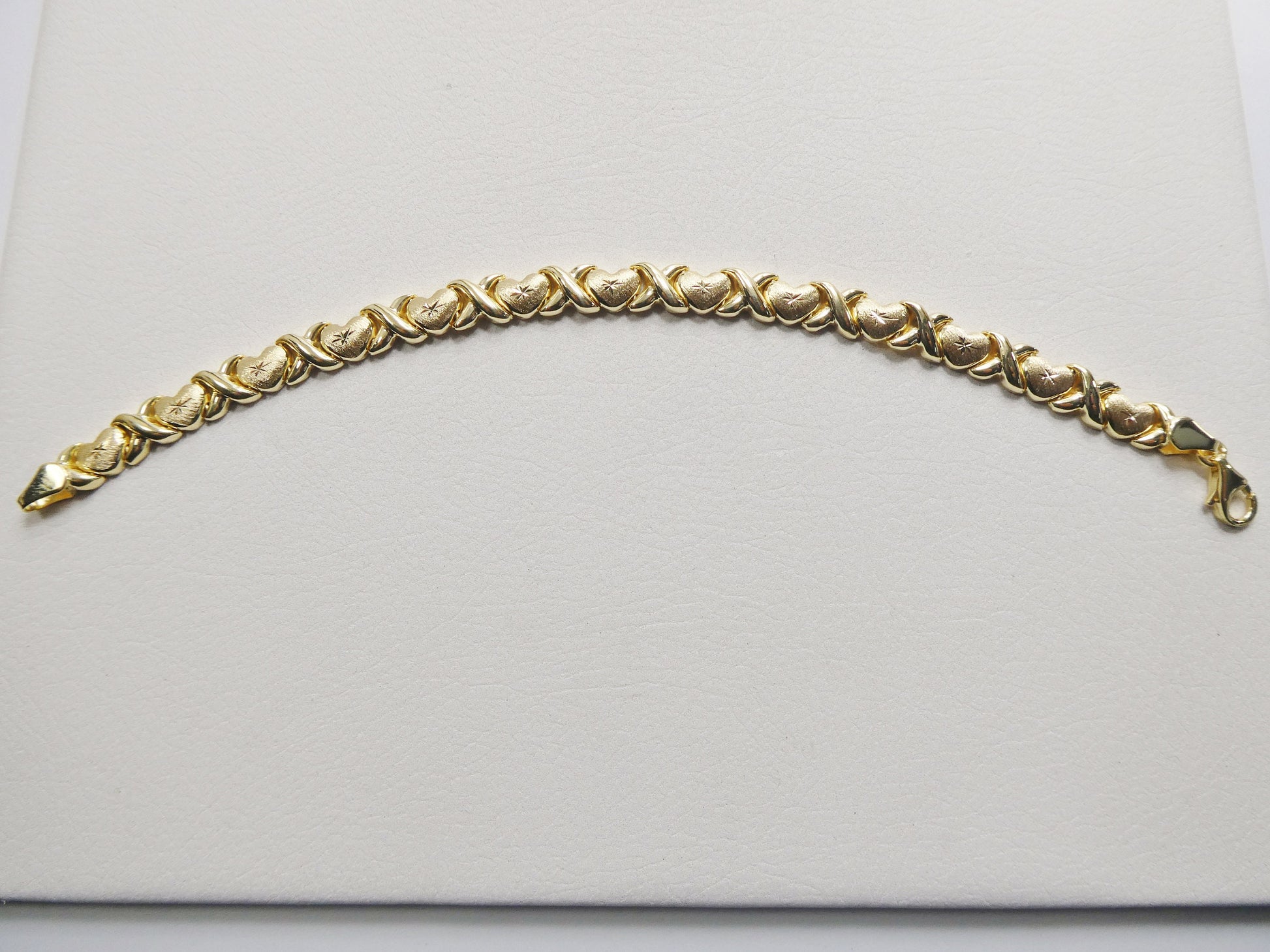 BRAND NEW 6 /6.5 / 7 / INCH / MINI XOXO HEART STAMPATO BRACELET 14K YELLOW GOLD ALL YELLOW TONE COLOR FINISH OVER REAL 925 STERLING SILVER GREAT FOR SMALL WRIST LADIES CHILDREN BRACELET PERFECT GOLD COLOR FINISH HIGH POLISH LUXURY ATTRACTIVE LOOK LOBSTER CLASP LOCK COME IN NICE GIFT BOX MAKE IT PERFECT GIFT FOR VALENTINES DAY OR ANY OCCASION