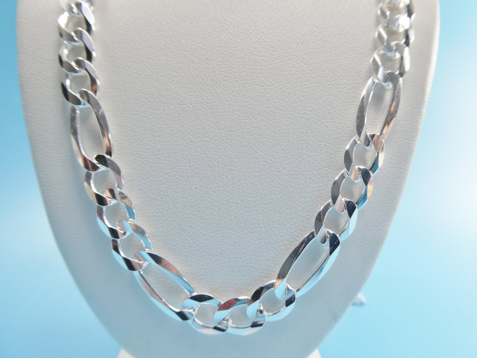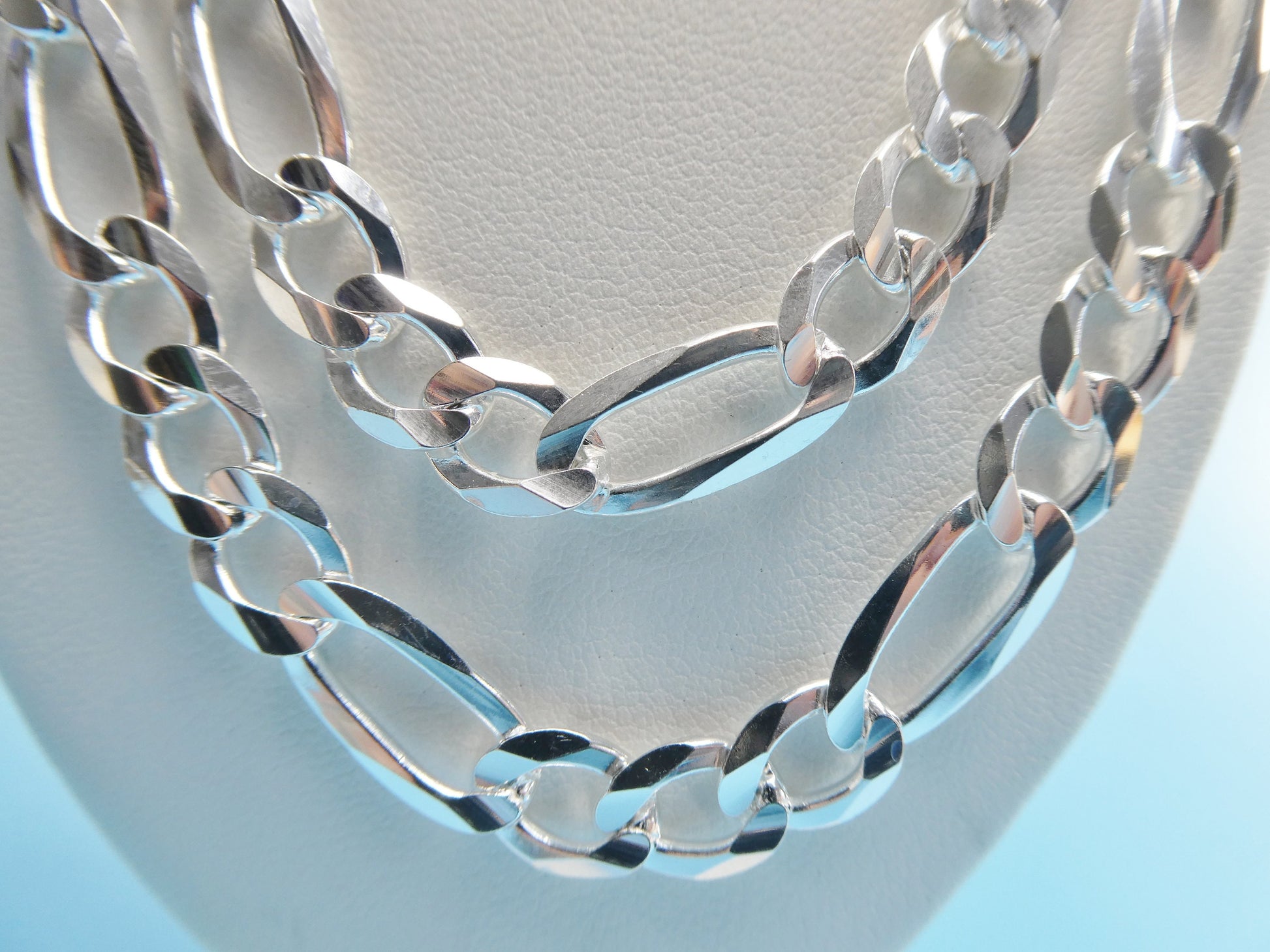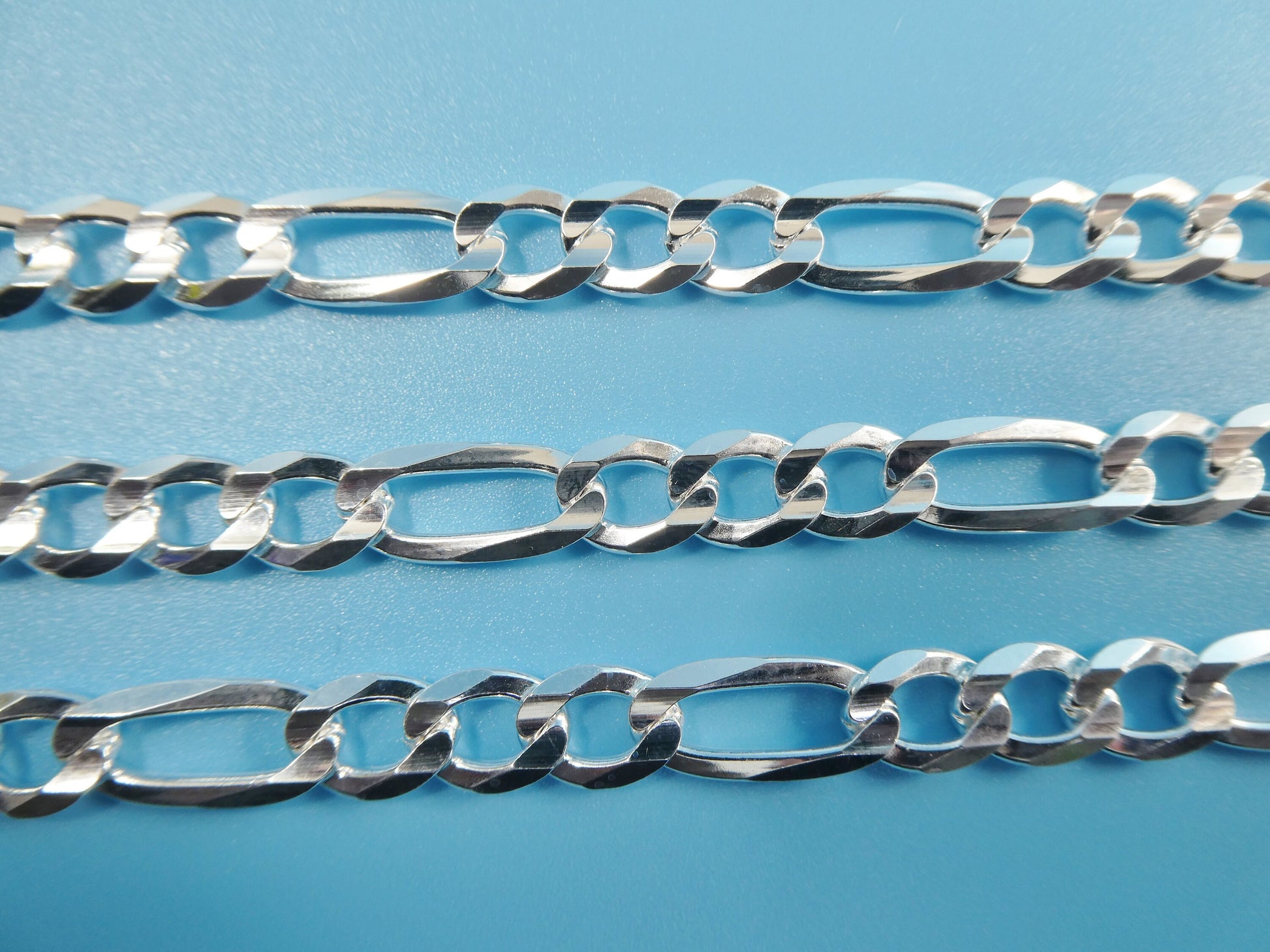 real 925 sterling silver 7.5mm Italian concave figaro solid chain lobster lock clasp