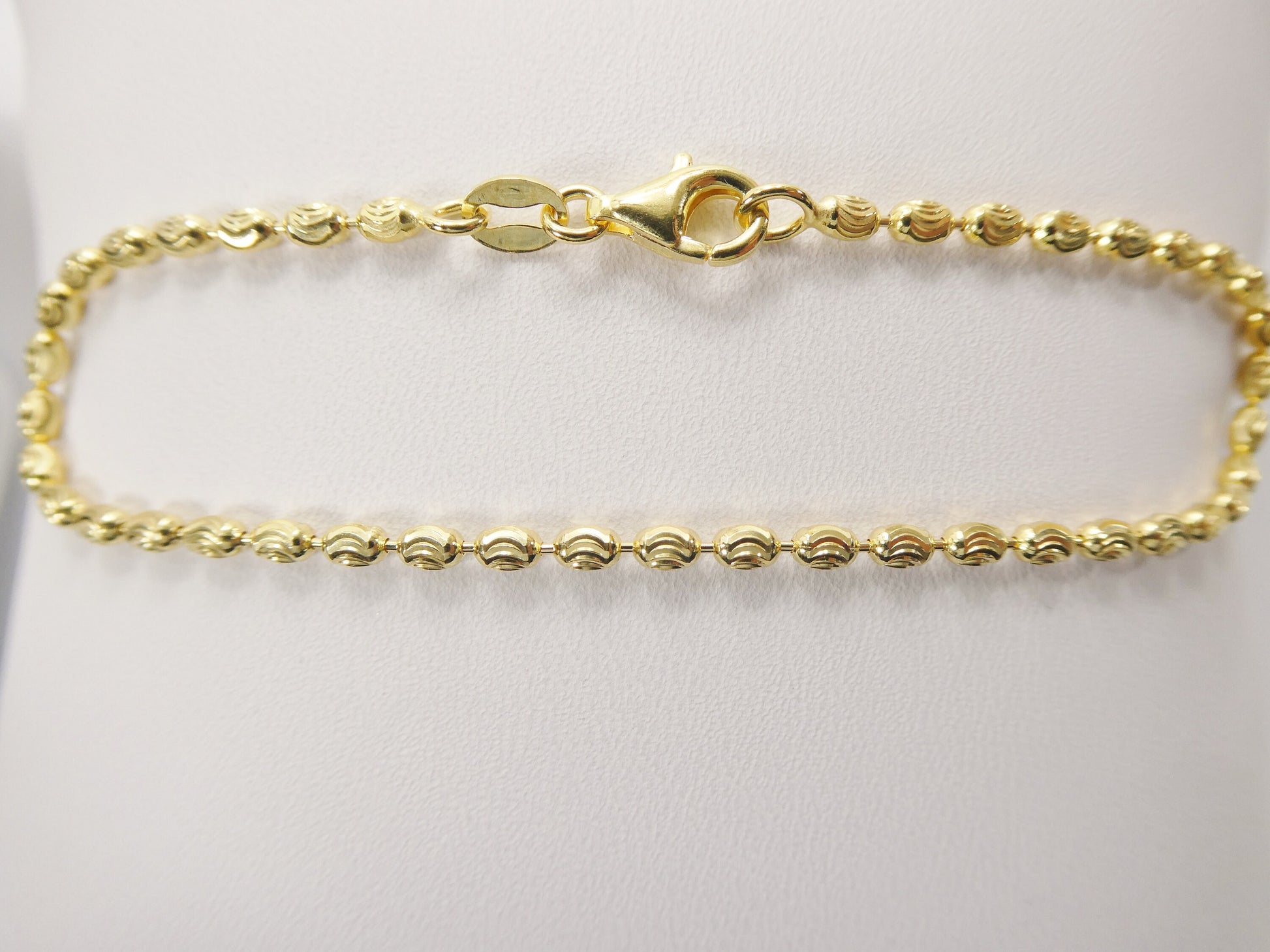 Real 925 sterling silver 7 inch bead bracelet 14k yellow gold finish