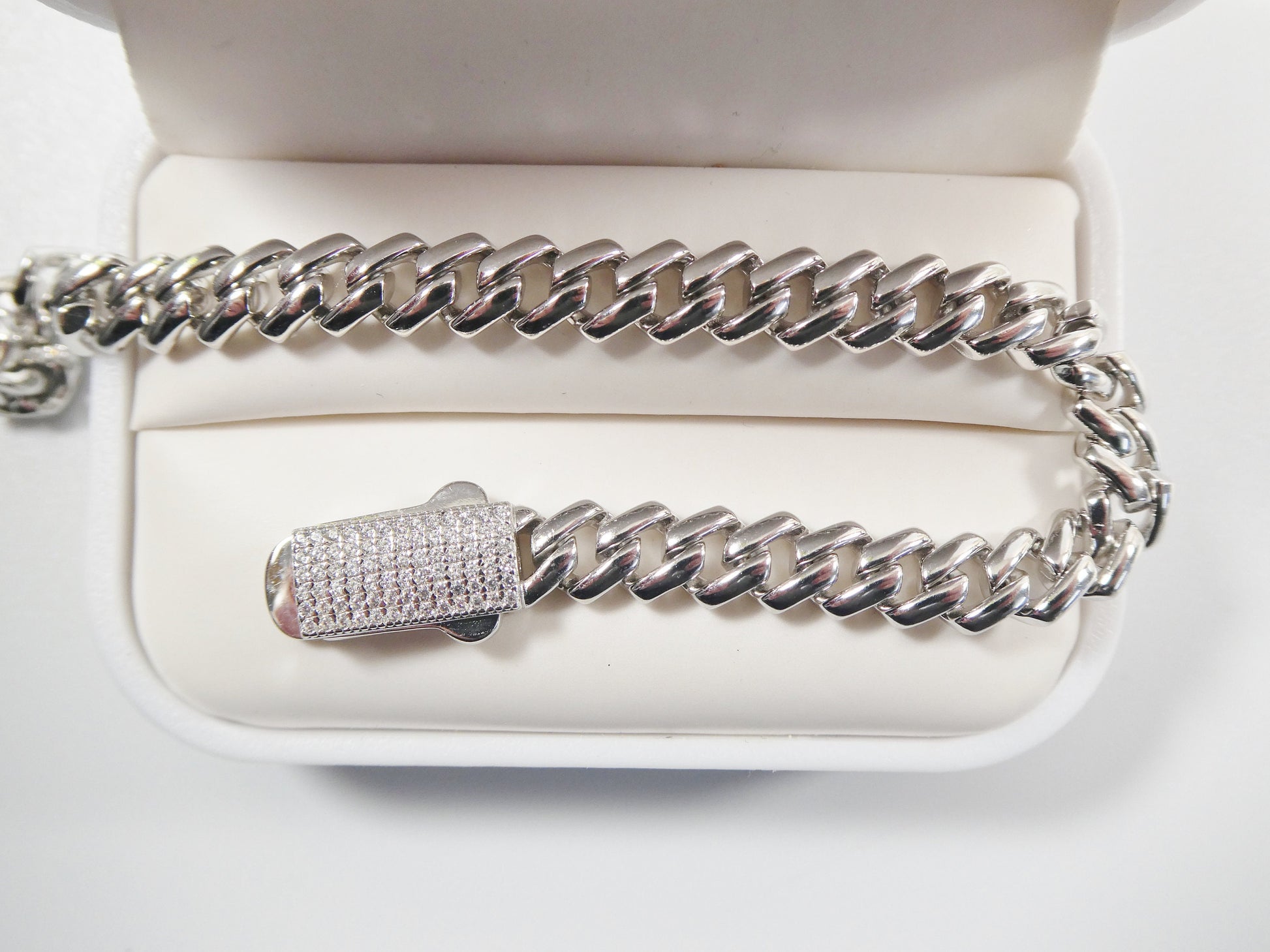 real 925 sterling silver 7mm solid Monaco style 14k white gold color finish