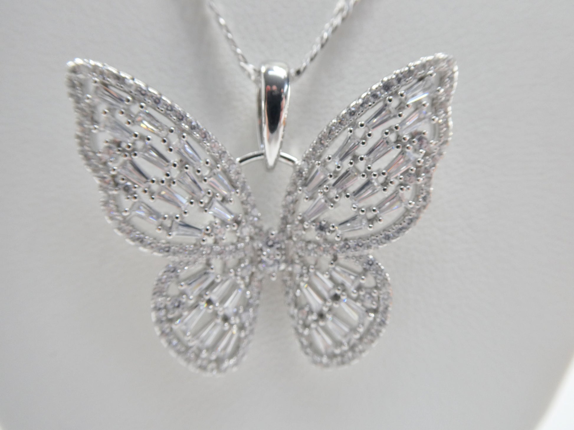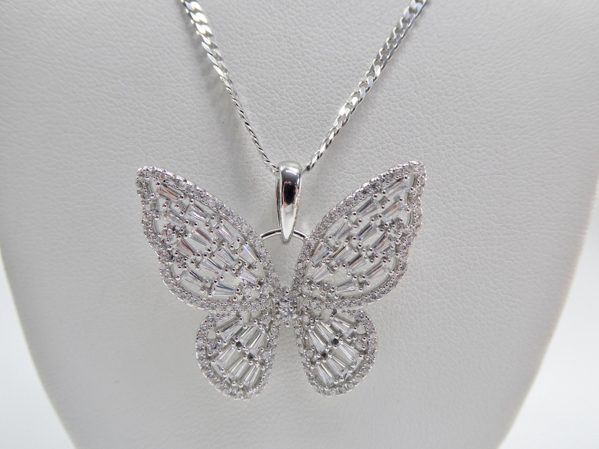 real 925 sterling silver baguette setting butterfly chain and pendent
