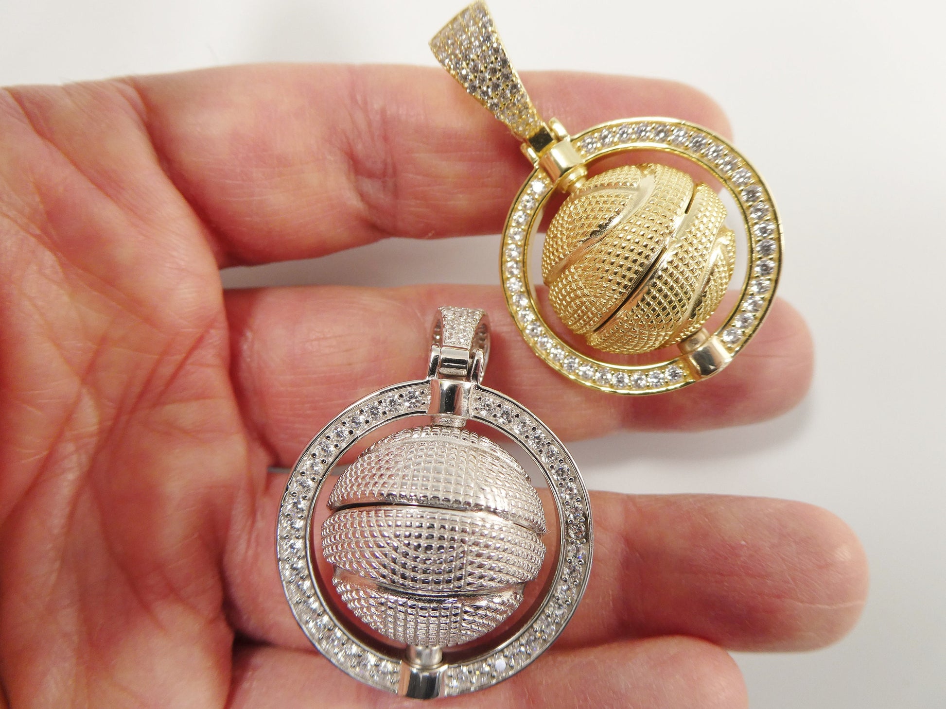 real 925 sterling silver basket ball charm pendent 14k yellow gold finish