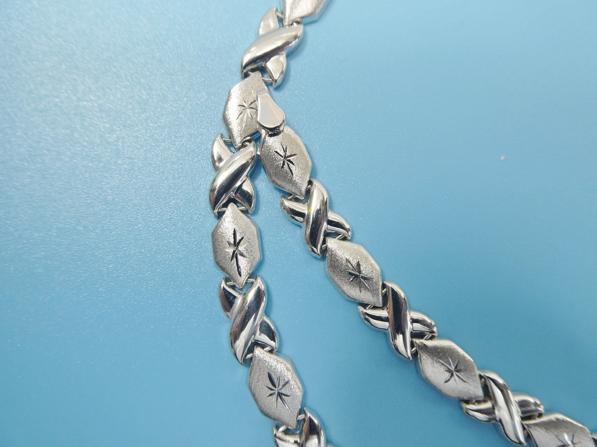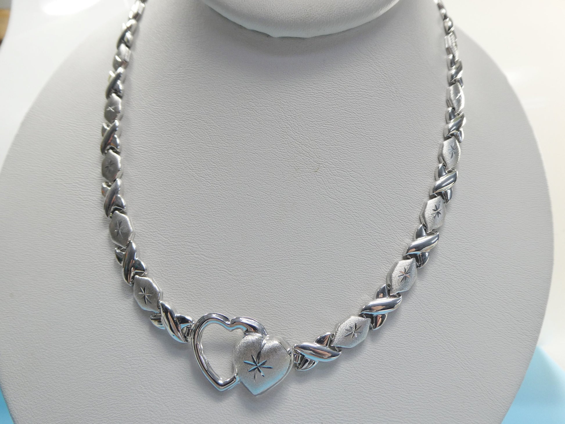 BRAND NEW REAL 925 STERLING SILVER DOUBLE HEART STAMPATO SET / NECKLACE BRACELET 14K WHITE GOLD COLOR TONE FINISH PERFECT WHITE GOLD COLOR FINISH HIGH POLISH LUXURY ATTRACTIVE LOOK RHODIOUM PLATED FOR LASTING LOBSTER CLASP LOCK COME IN NICE GIFT BOX MAKE IT PERFECT GIFT FOR OR ANY OCCASION