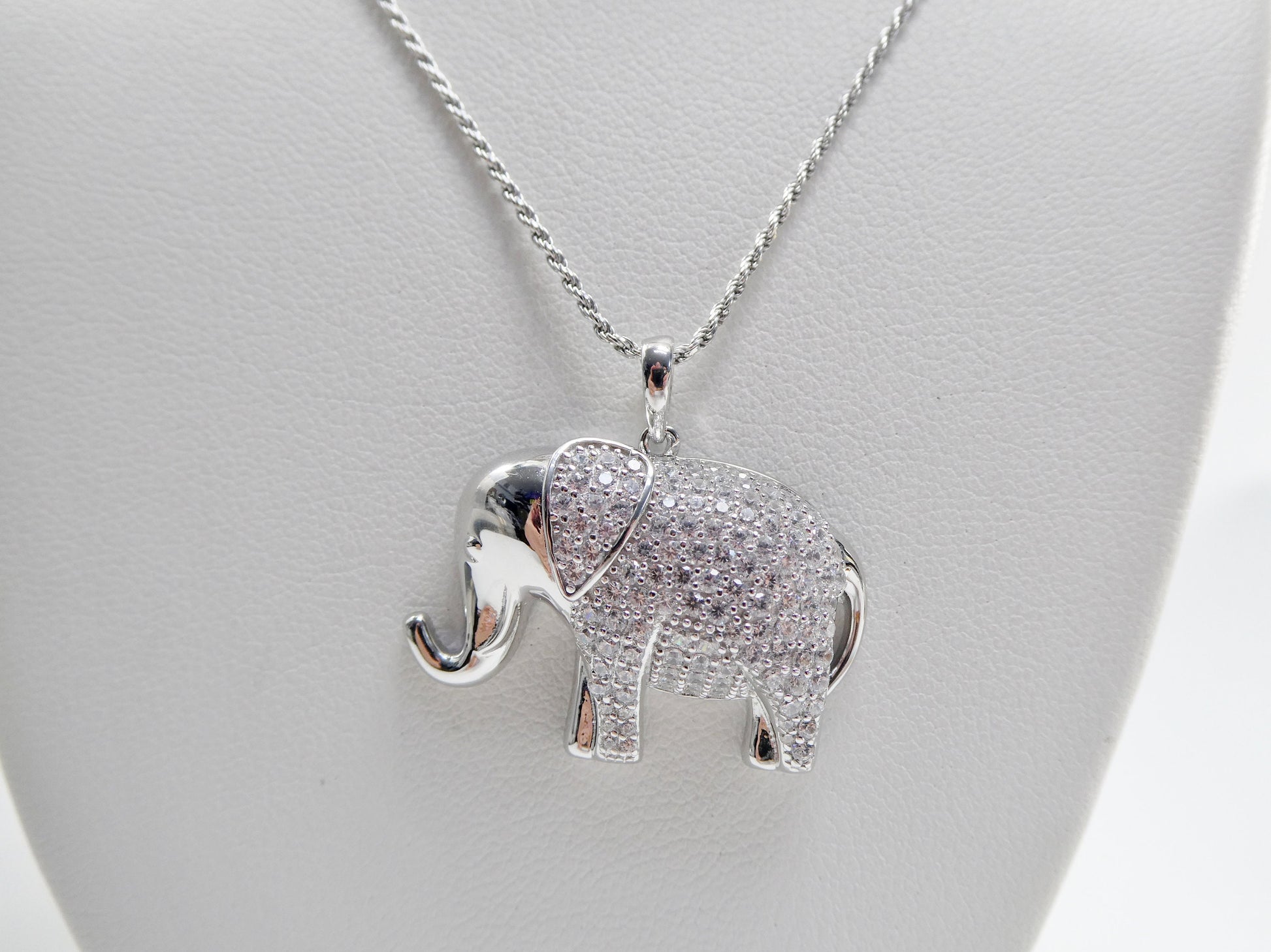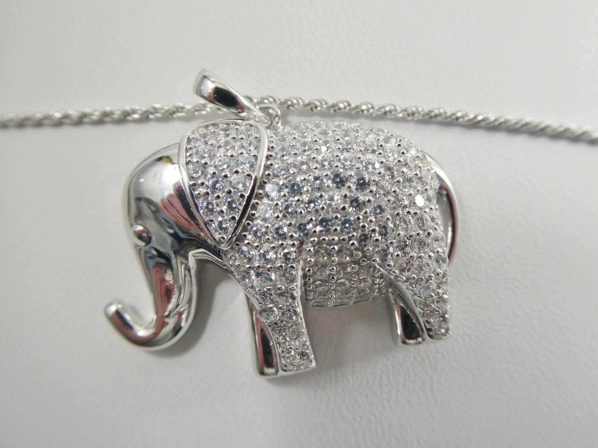 REAL 925 STERLING SILVER ELEPHANT PENDENT FULL ICE CUBIC ZIRCONIA AAA SHINY STONE 18 INCH ROB CHAIN LOBSTER CLASP LOCK PERFECT GOLD COLOR FINISH HIGH QUALITY HIGH POLISH RHODIUM PLATING FOR LASTING MARK AND STAMP COME IN NICE GIFT BOX