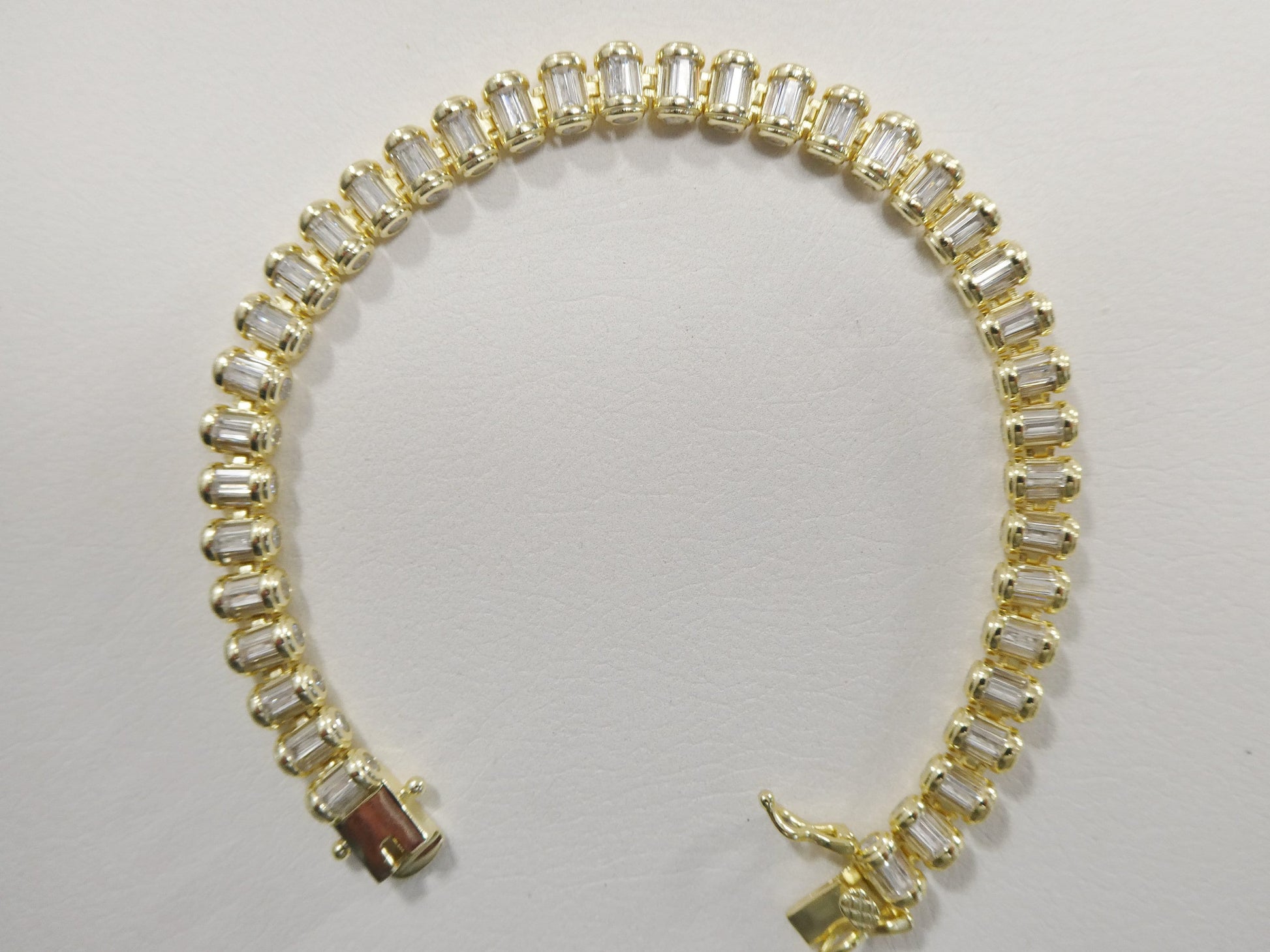 BRAND NEW NEW RELEASE REAL SOLID 925 STERLING SILVER FULL STONE BAGUETTE SETTING REAL SILVER MARK AND STAMP COME IN YELLOW GOLD FINISH AND SILVER ROUDIUM PLATED FINISH FOR LASTING 7.25 INCH BRACELET BAGUETTE SETTING STONE MIDDLE HIGH QUALITY HIGH POLISH GREAT GOLD COLOR FINISH LUXURY ATTREACTIVE LOOK COME IN NICE GIFT BOX MAKE IT GREAT GIFT FOR ANY OCCASION