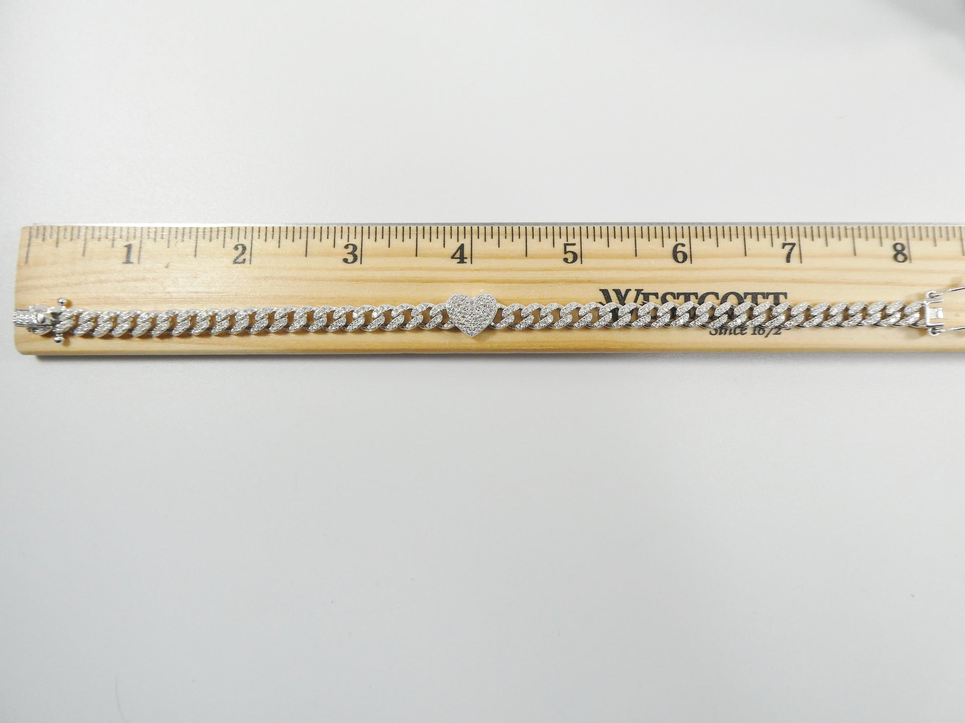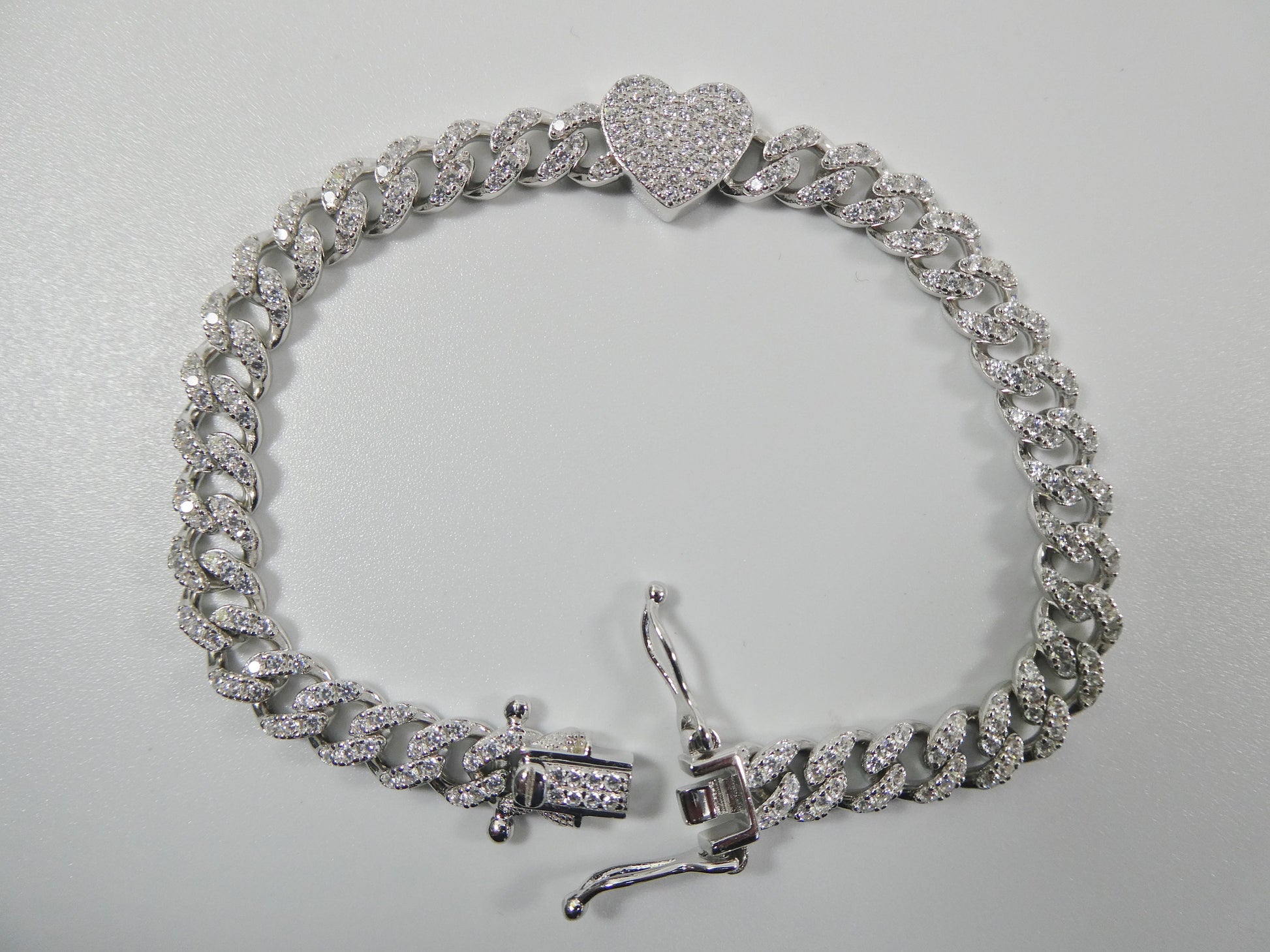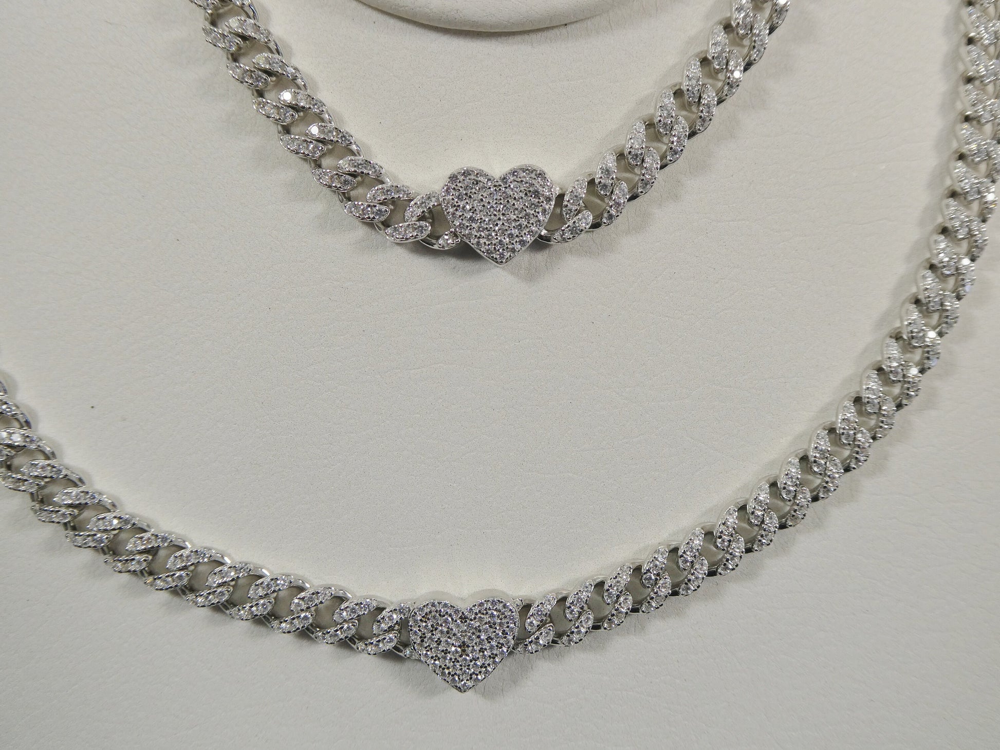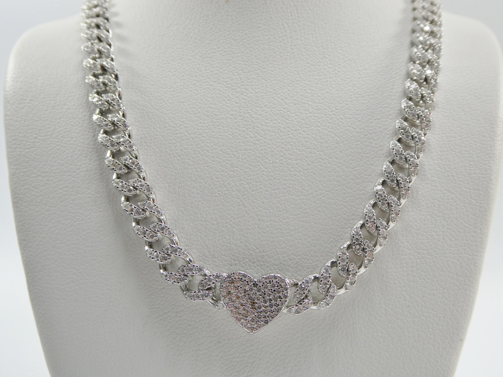 REAL 925 STERLING SILVER FULL ICE PRONG SETTING AAA SHINY CUBAN ZIRCONIA STONE HEART CENTER HIGH QUALITY GREAT GOLD COLOR FINISH RHODIUM PLATED FOR NOT TARNISH BOX LOCK CLASP THE SET COME IN 7 INCH BRACELET AND 16 INCH NECKLACE COME IN NICE GIFT BOX