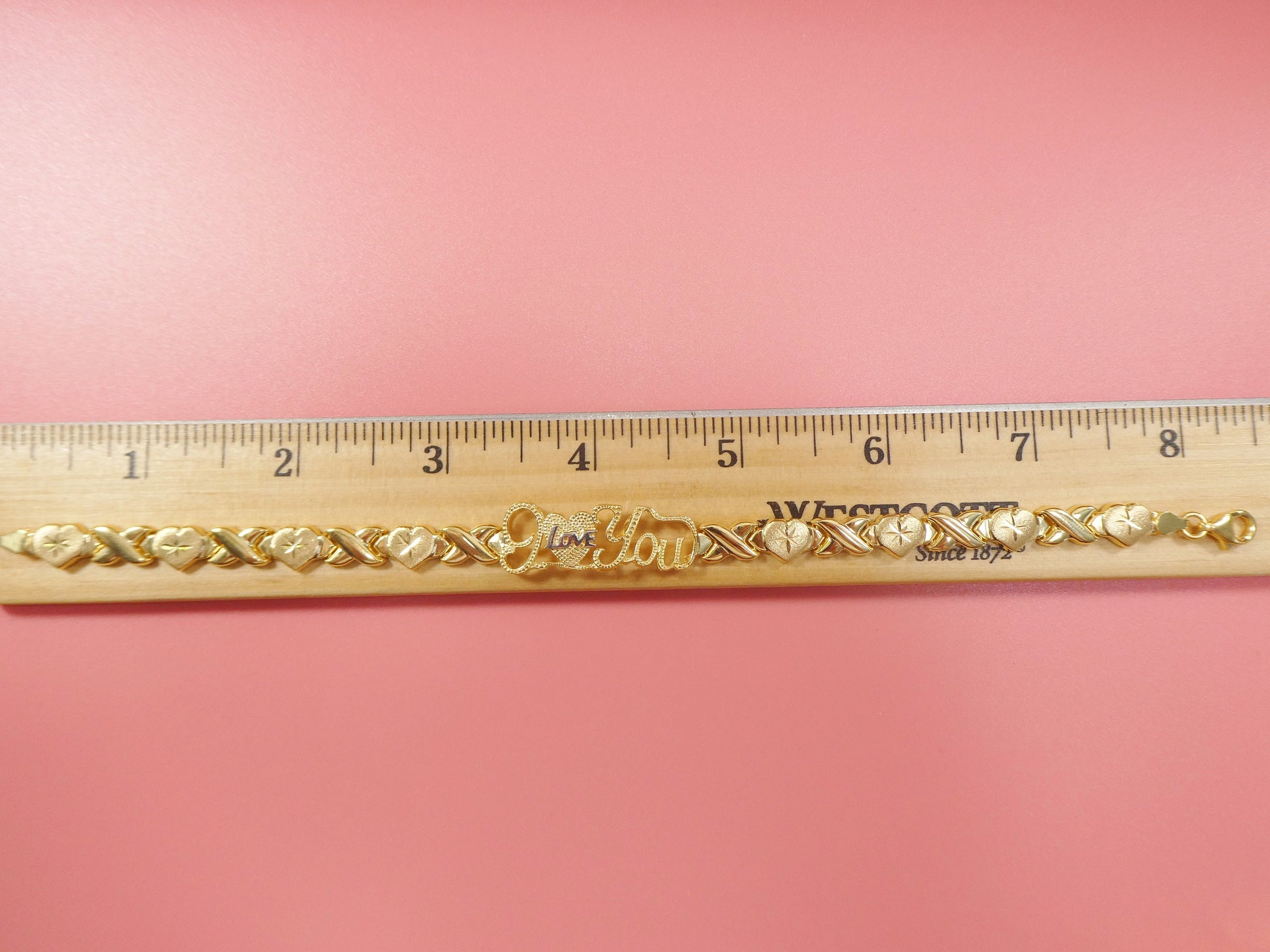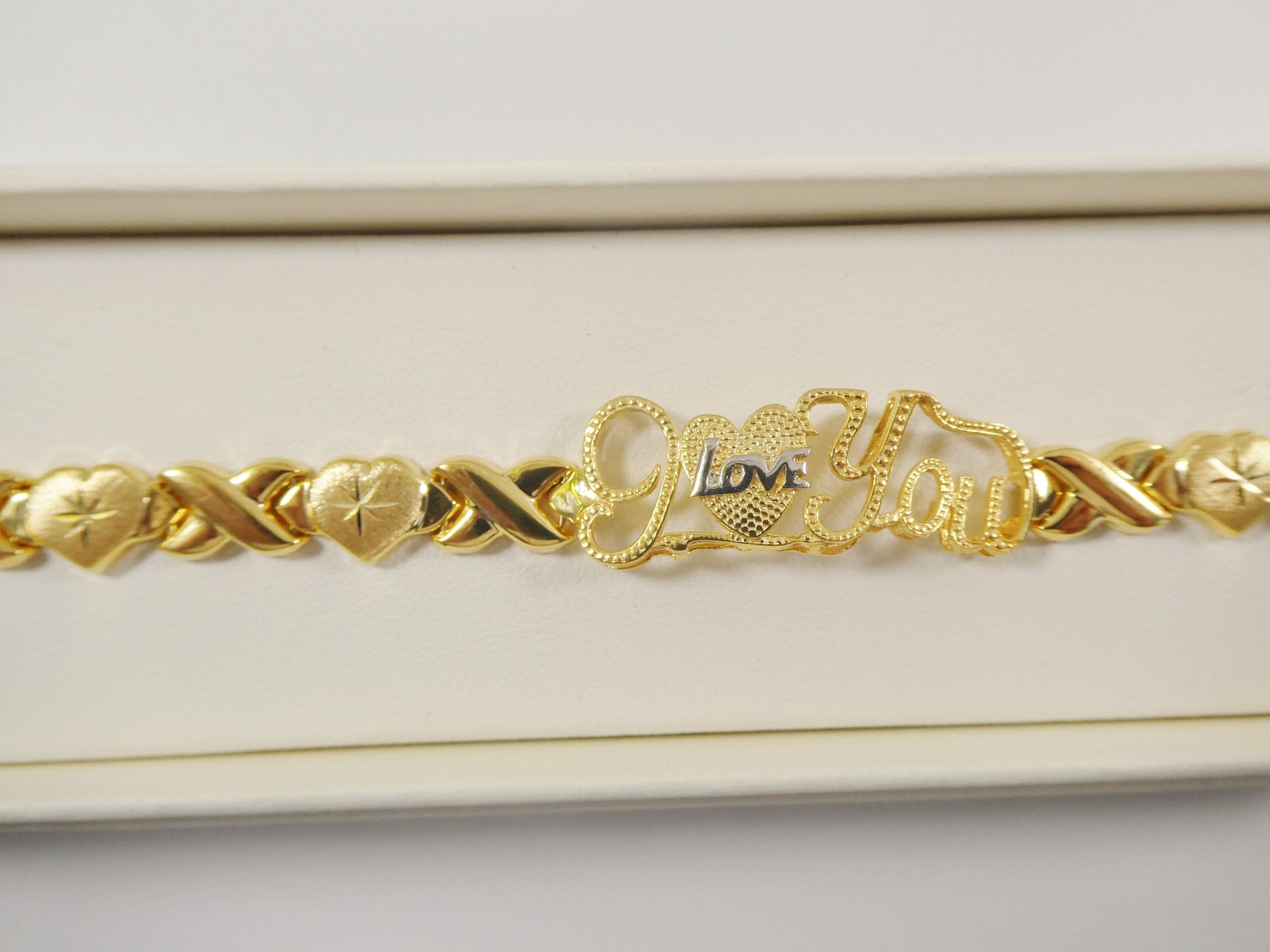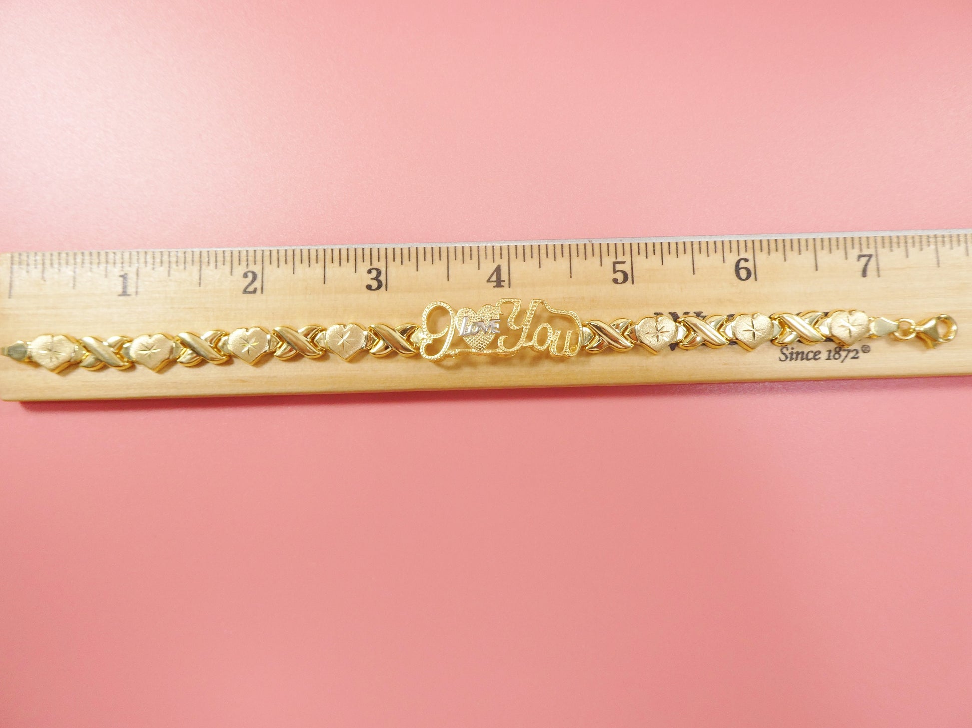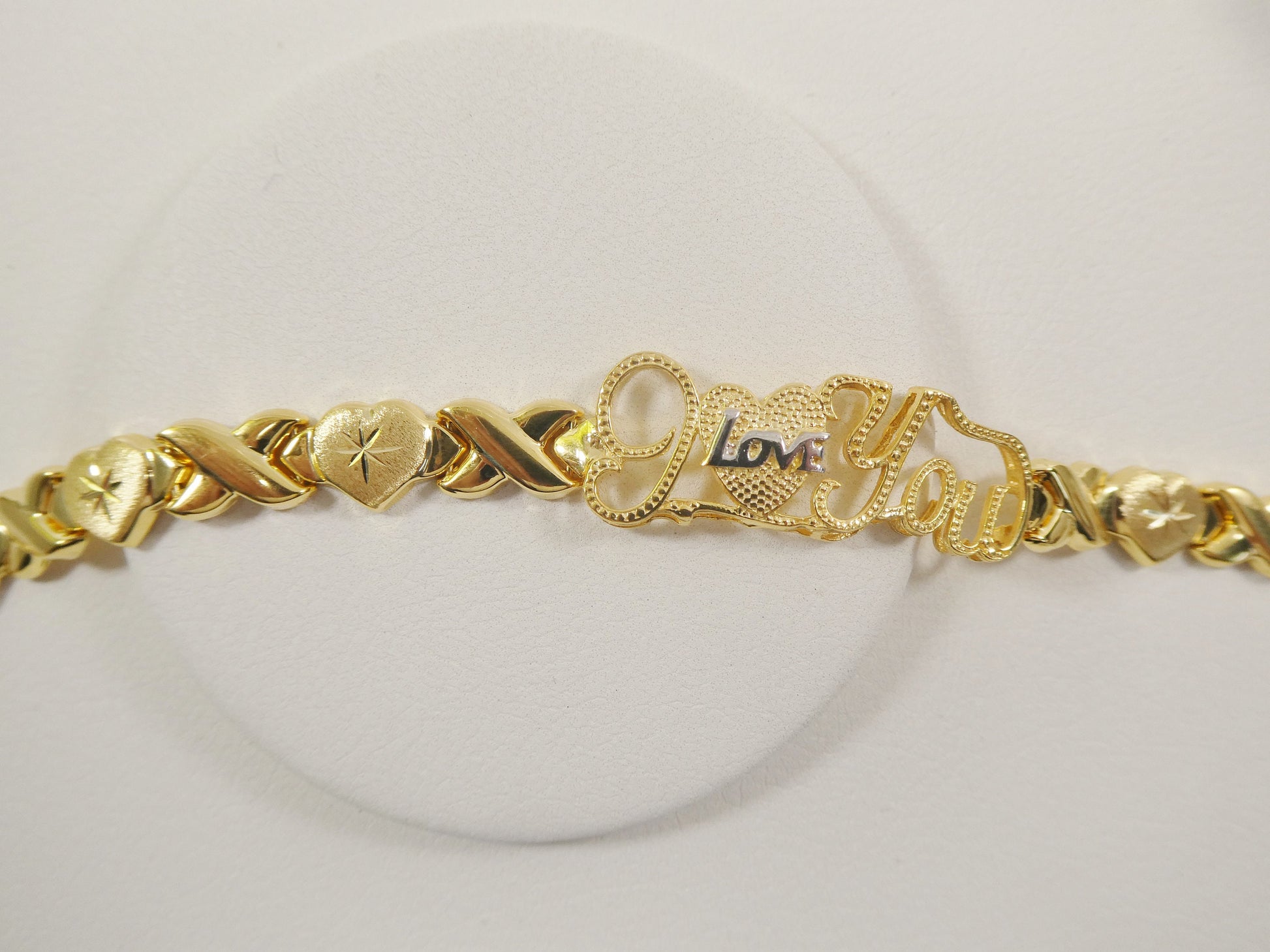 BRAND NEW REAL 925 STERLING SILVER I LOVE YOU BRACELET XOXO 14K GOLD ALL YELLOW COLOR TONE FINISH /HIGH POLISH / PERFECT GOLD COLOR FINISH /HIGH QUALITY / LOBSTER CLASP LOCK LUXURY ATTRACTIVE LOOK COME IN 7 INCH AND 8 INCH COME IN NICE GIFT BOX MAKE IT GREAT GIFT FOR ANY OCCASION