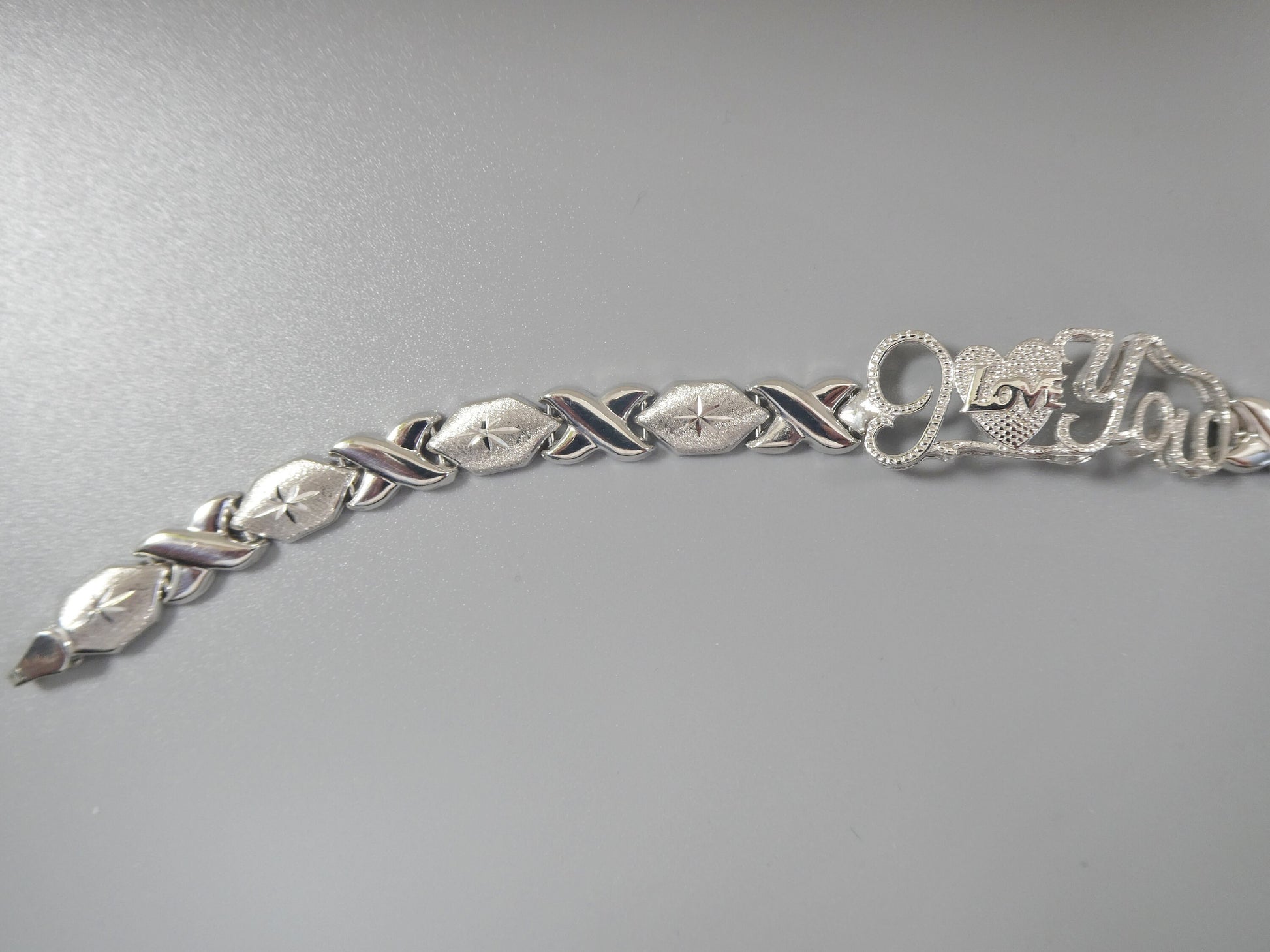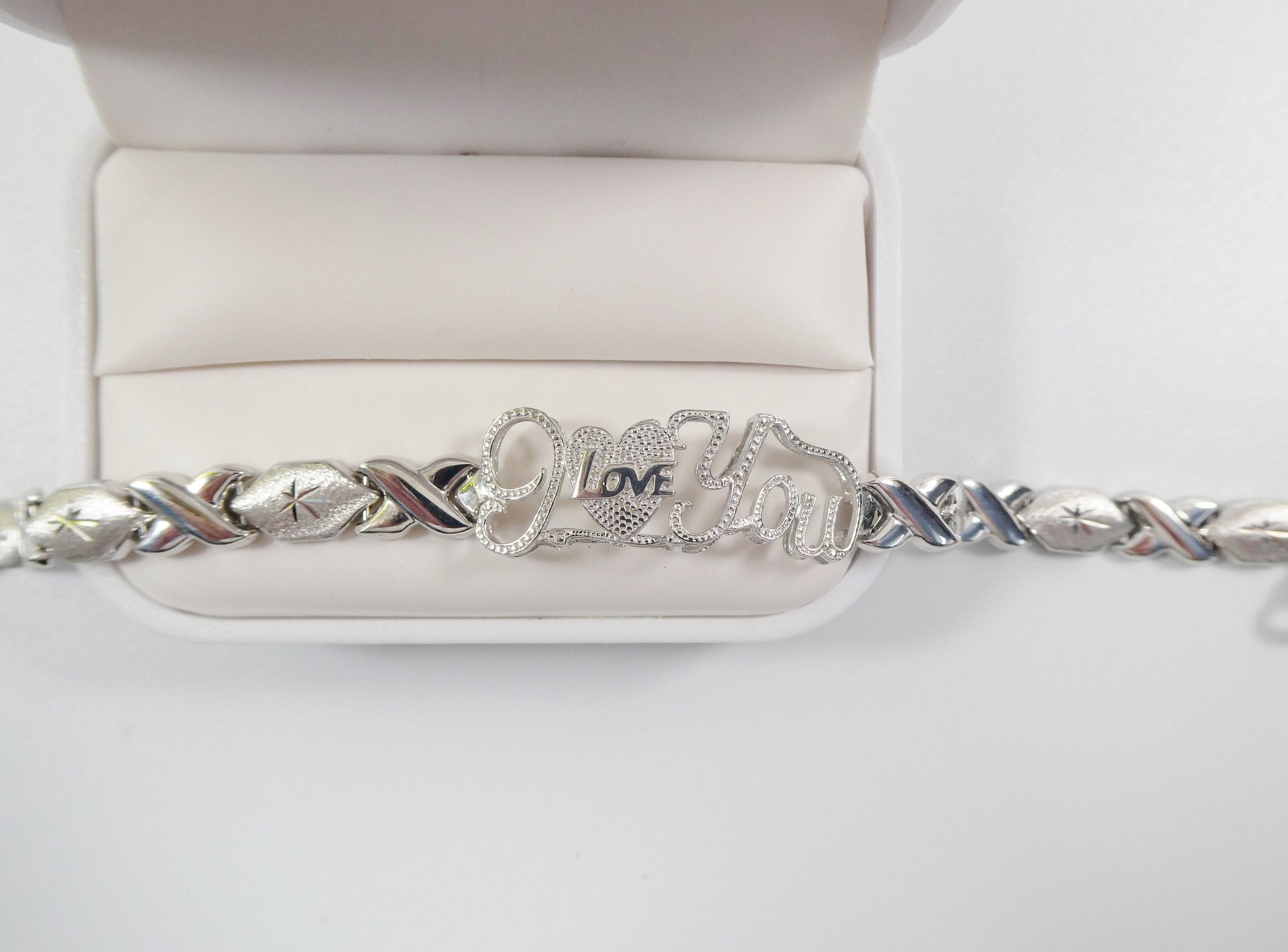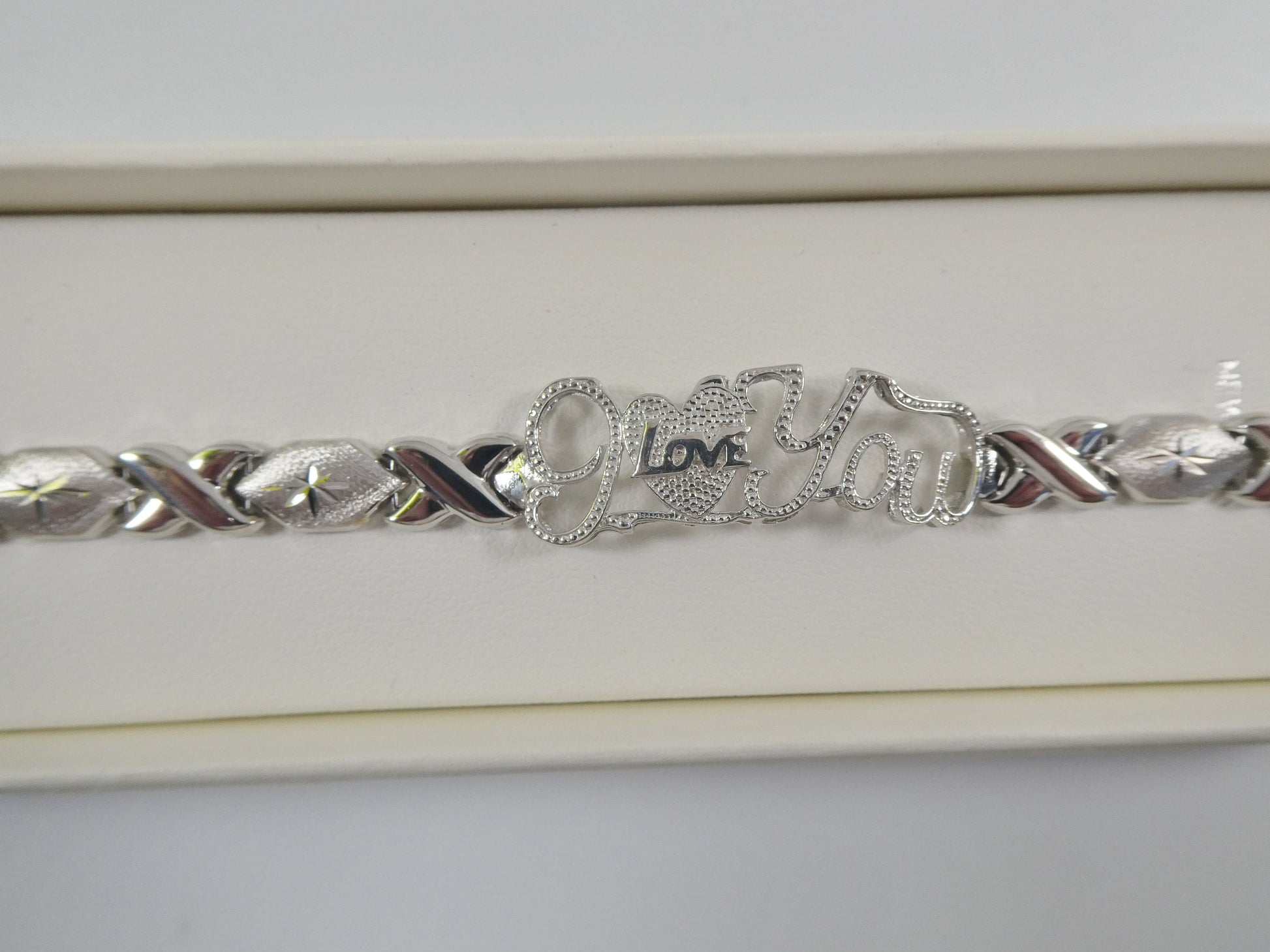 real 925 sterling silver I love you xo xo stampato bracelet 14k white gold finish