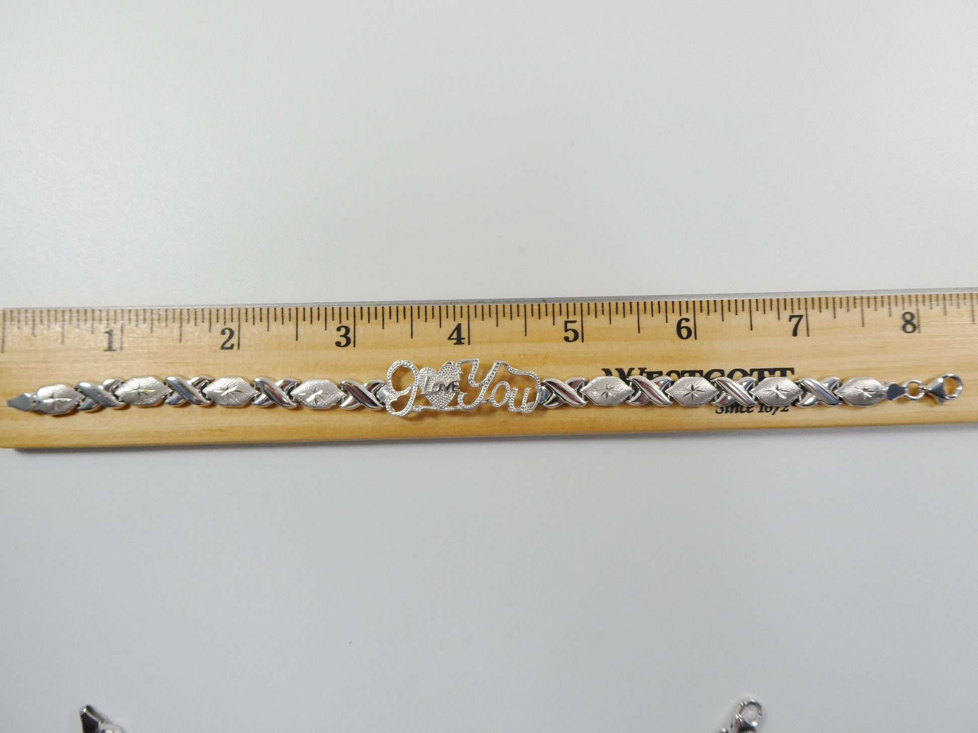 BRAND NEW REAL 925 STERLING SILVER I LOVE YOU BRACELET XOXO 14K GOLD WHITE GOLD FINISH /HIGH POLISH / PERFECT GOLD COLOR FINISH /HIGH QUALITY / RHODIUM PLATED FOR LASTING COLOR/ LOBSTER CLASP LOCK LUXURY ATTRACTIVE LOOK COME IN 7 INCH AND 8 INCH COME IN NICE GIFT BOX MAKE IT GREAT GIFT FOR ANY OCCASION