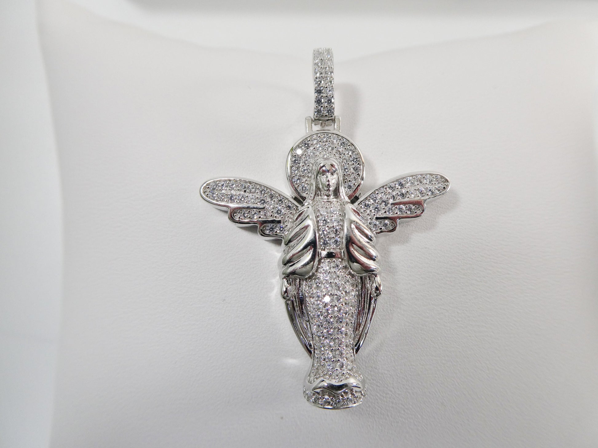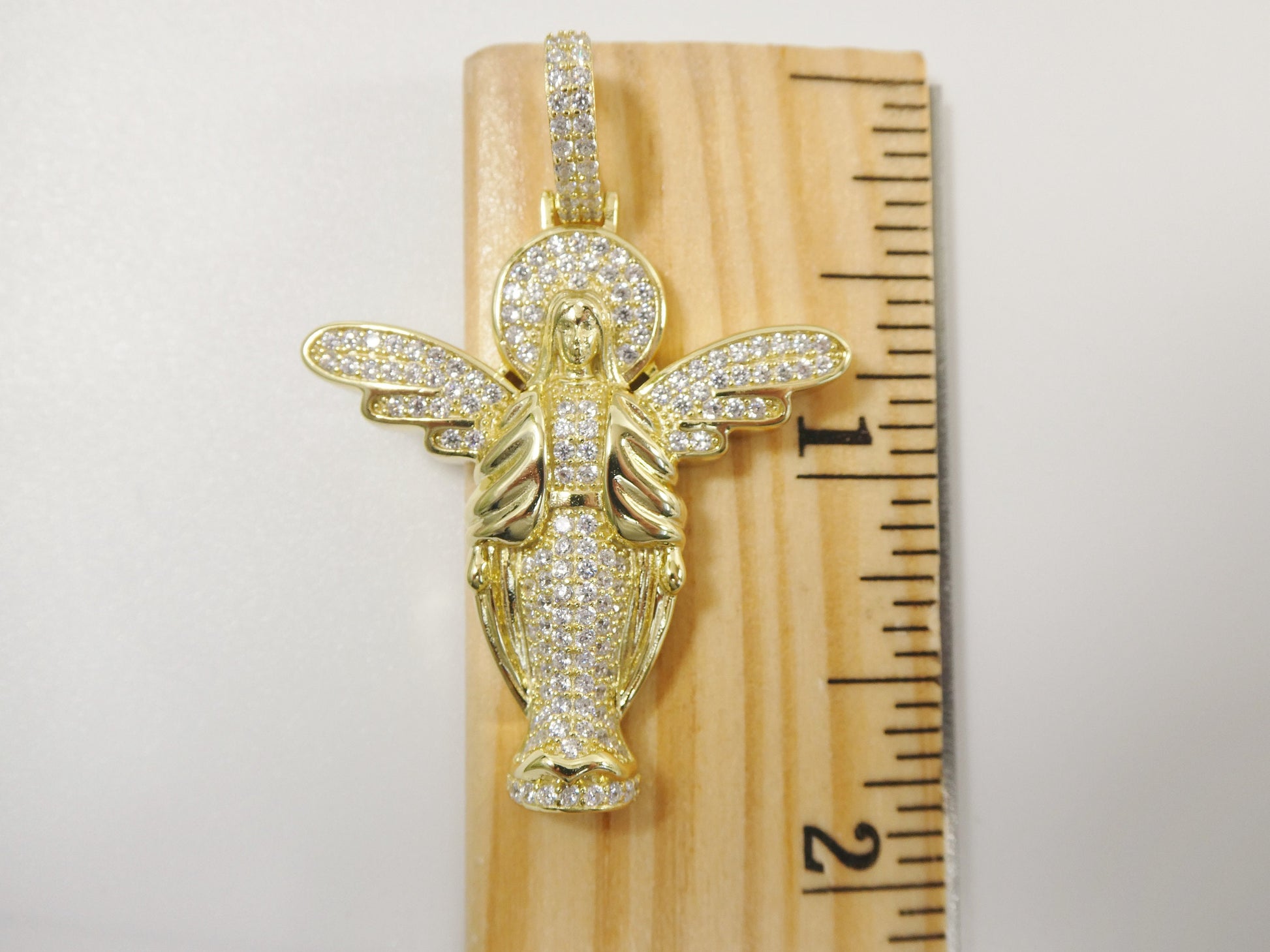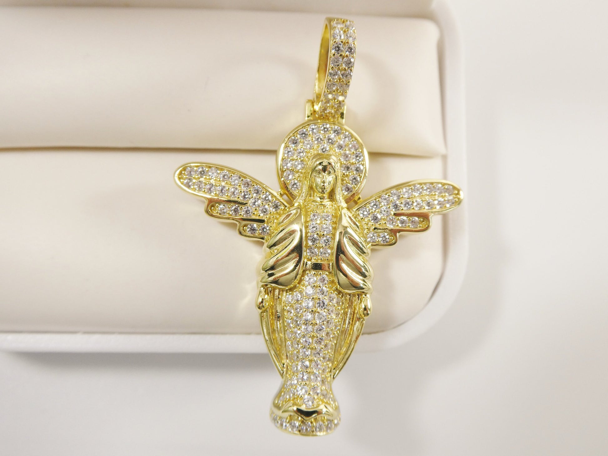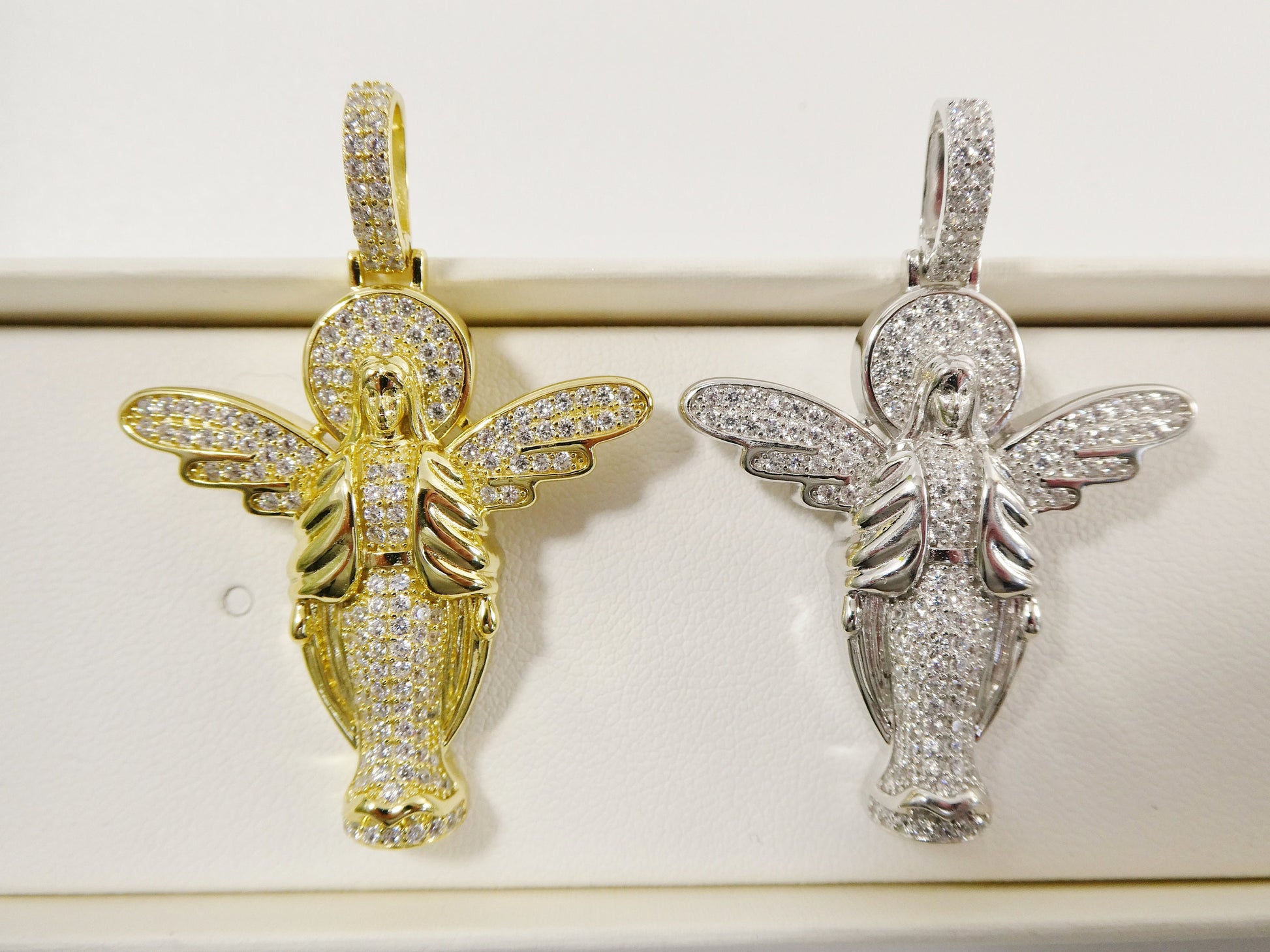 REAL 925 STERLING SILVER LARGE ANGEL GUARDIAN MEDALLION PENDENT HIGH QUALITY HIGH POLISH GREAT GOLD COLOR FINISH PERFECT WHITE GOLD FINISH RHODIUM PLATING FOR NOT TARNISH COME IN NICE GIFT BOX