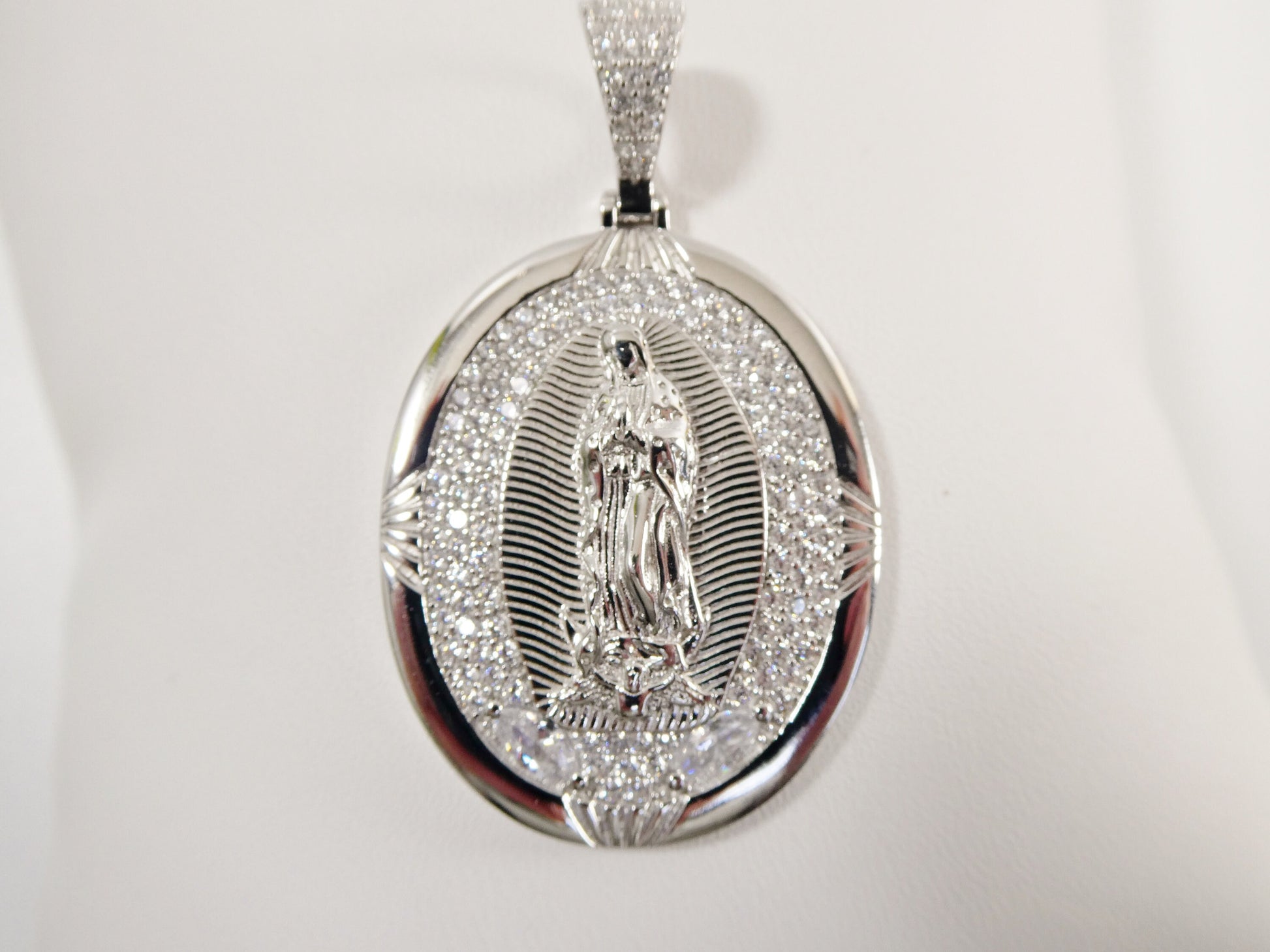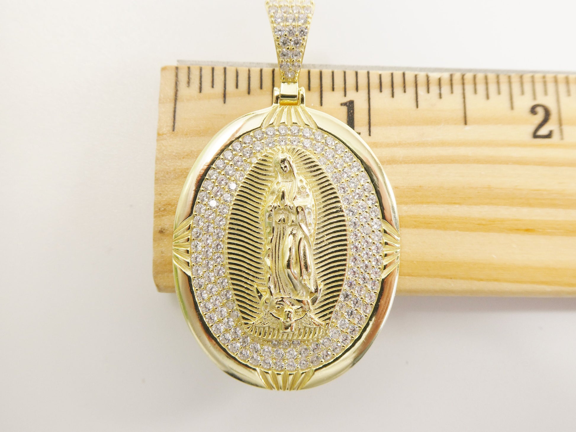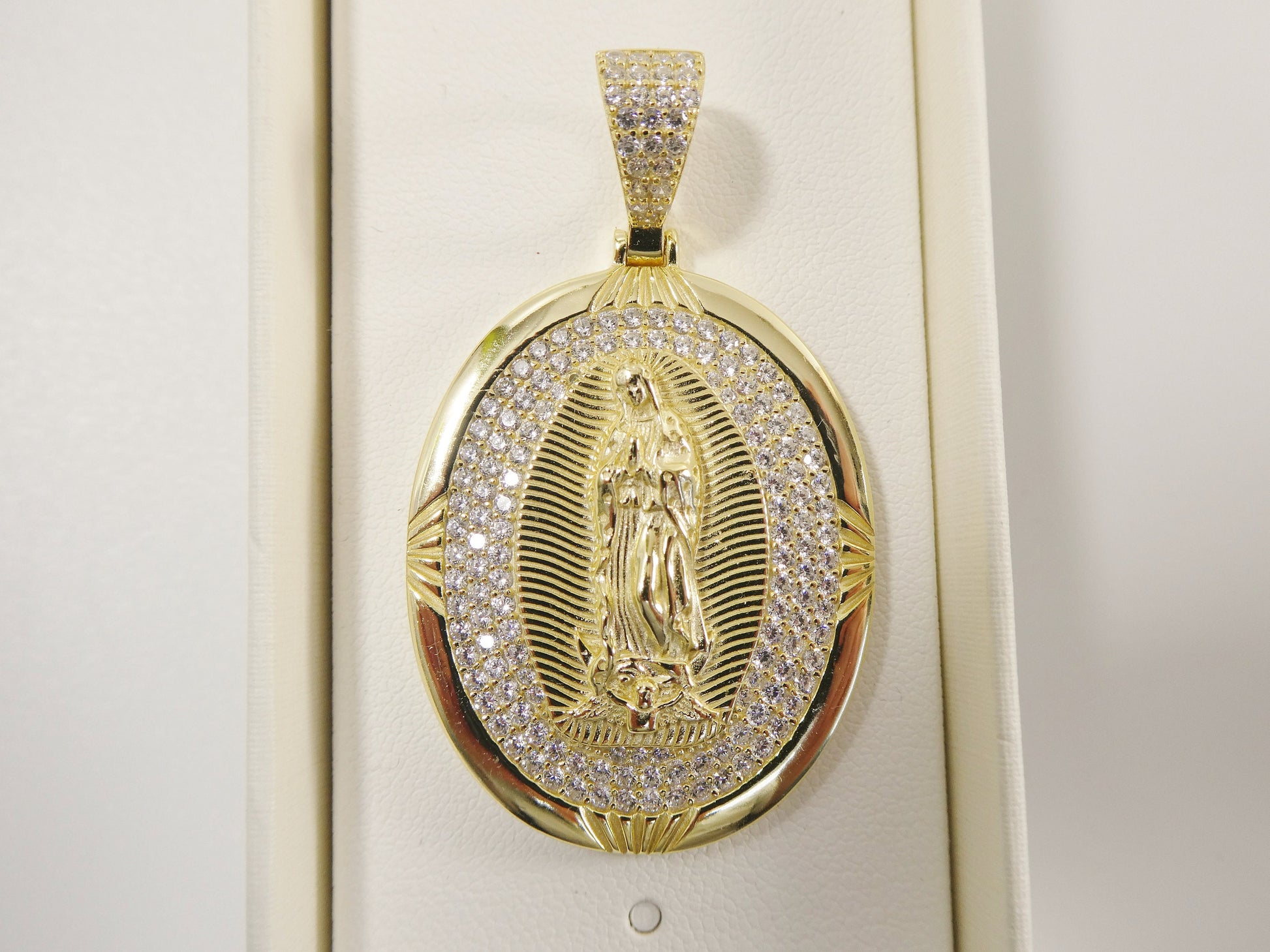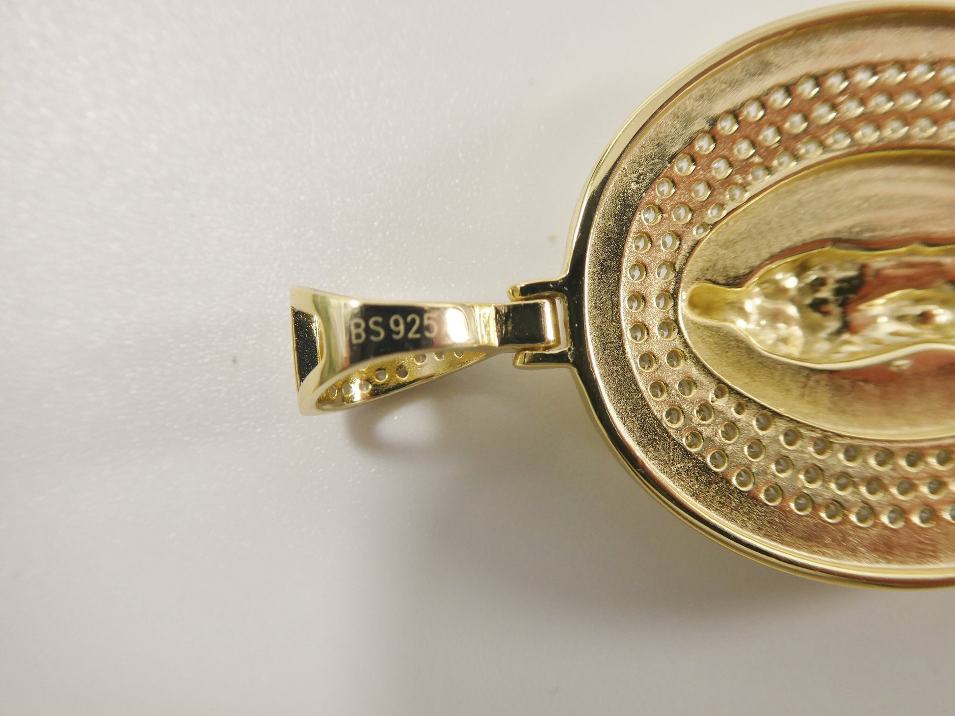 REAL 925 STERLING SILVER LARGE GUADALUPE VIRGIN MARY MEDALLION PENDENT HIGH QUALITY HIGH POLISH GREAT GOLD COLOR FINISH PERFECT WHITE GOLD FINISH RHODIUM PLATING FOR NOT TARNISH COME IN NICE GIFT BOX