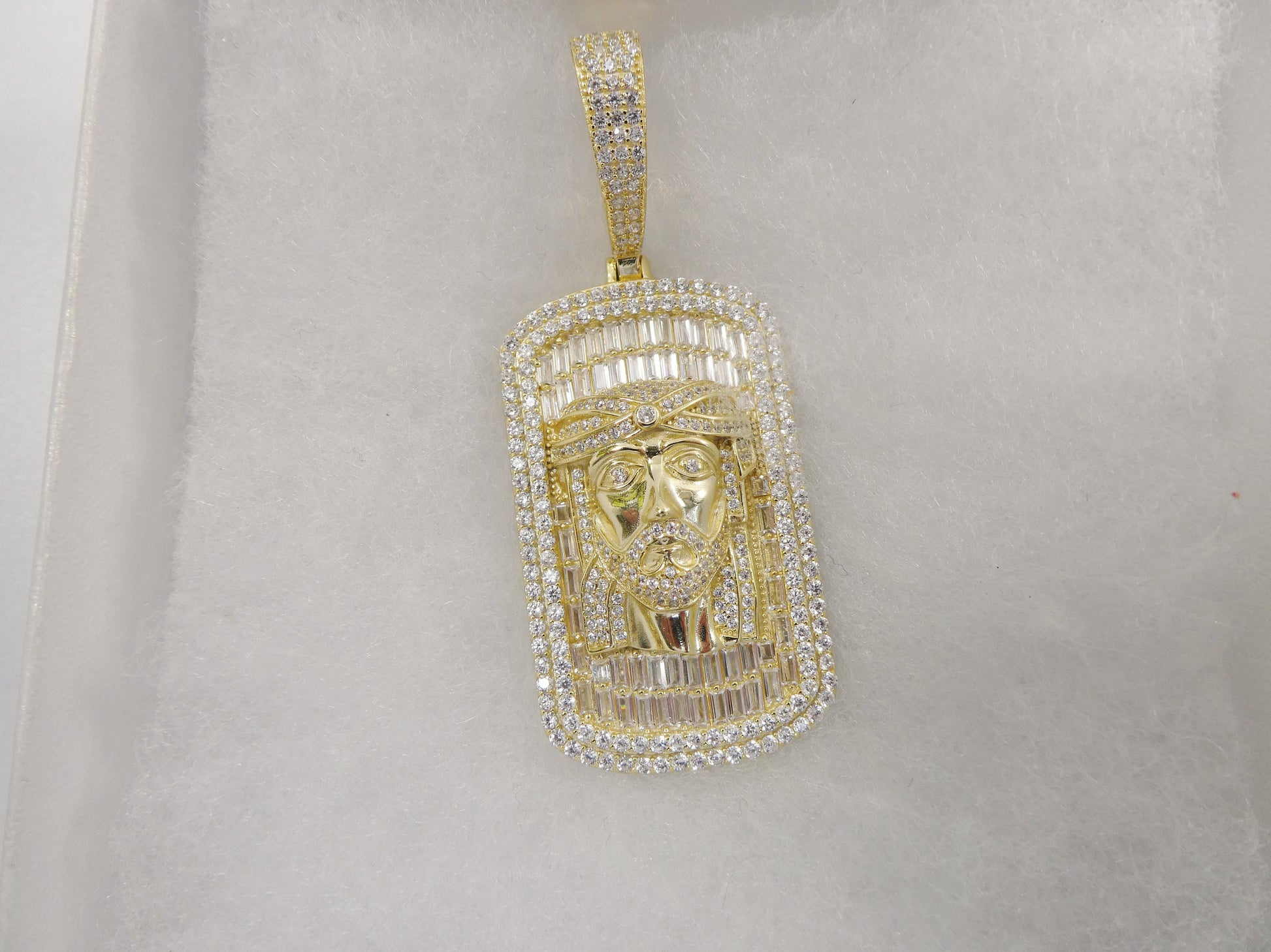 REAL 925 STERLING SILVER LARGE JESUS FACE MEDALLION PENDENT HIGH QUALITY HIGH POLISH GREAT GOLD COLOR FINISH PERFECT WHITE GOLD FINISH RHODIUM PLATING FOR NOT TARNISH COME IN NICE GIFT BOX