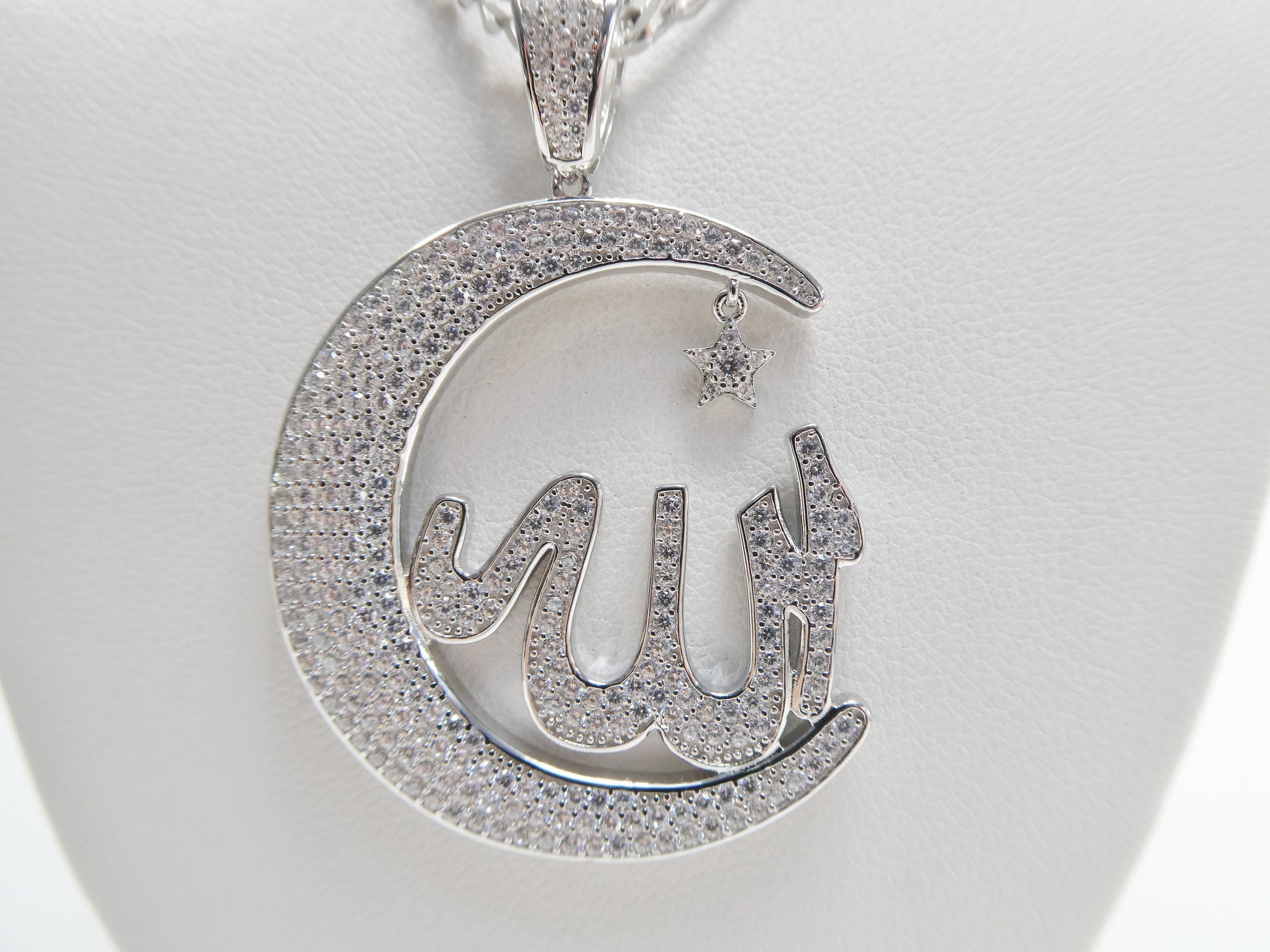 REAL 925 STERLING SILVER MICRO FAVE STONE SETTING LARGE MUSLIM ALLAH PENDENT HIGH QUALITY HIGH POLISH GREAT FINISH COME IN YELLOW GOLD AND WHITE GOLD RHODIUM PLATED FOR LASTING PERFECT YELLOW GOLD COLOR FINISH COME IN NICE GIFT BOX
