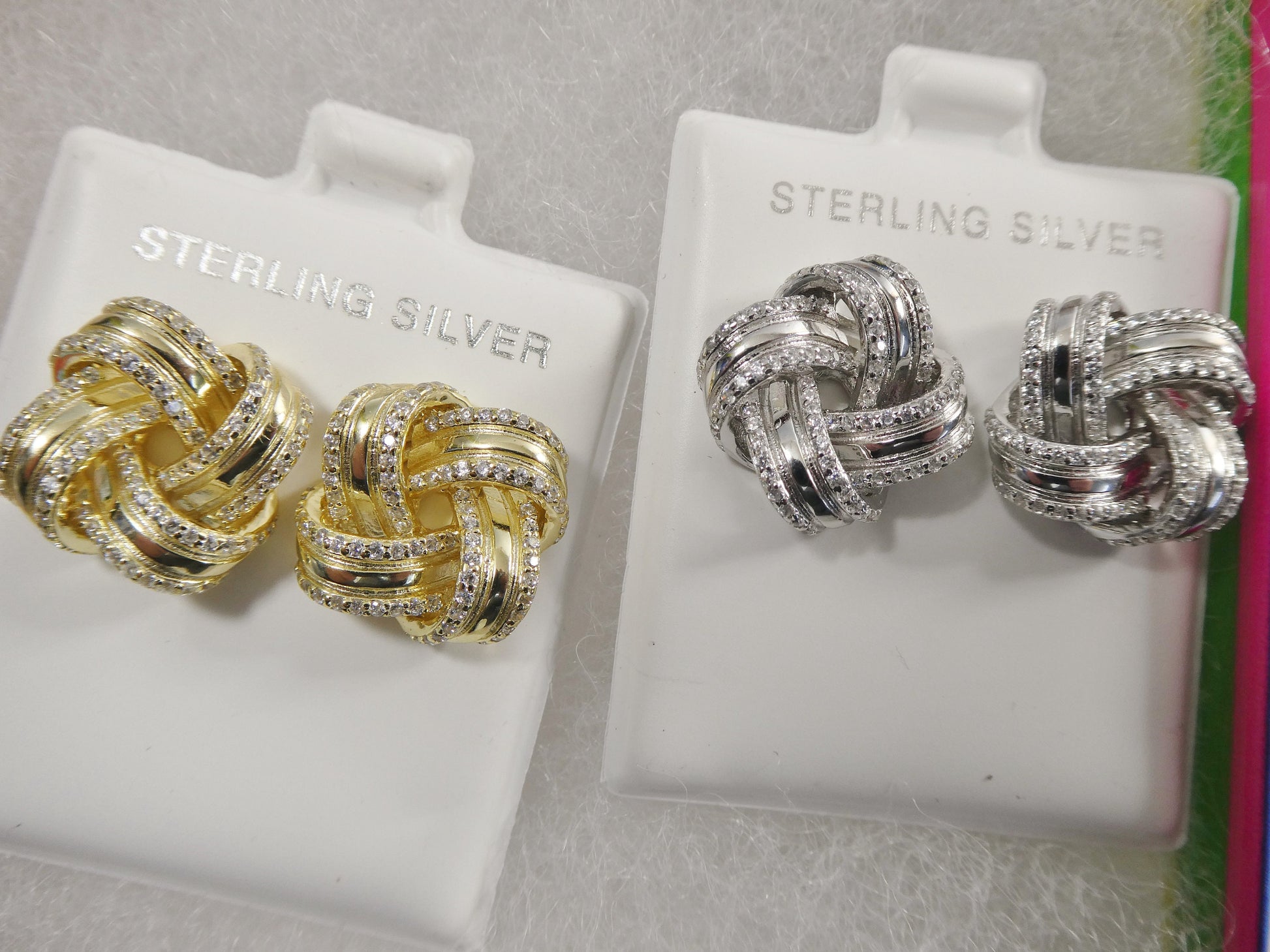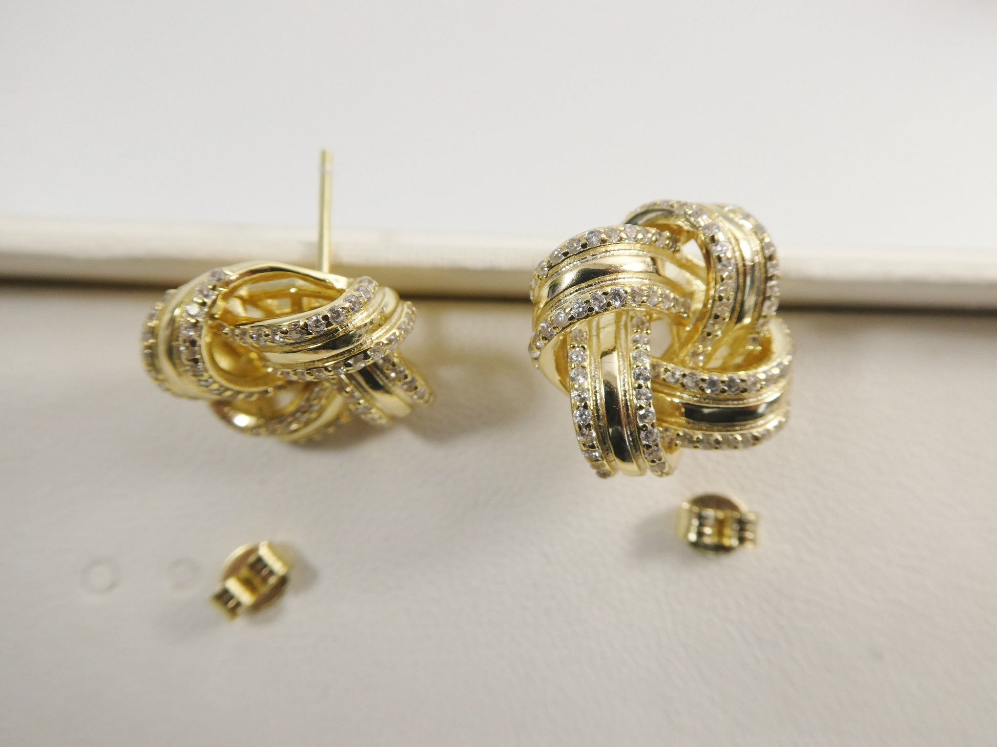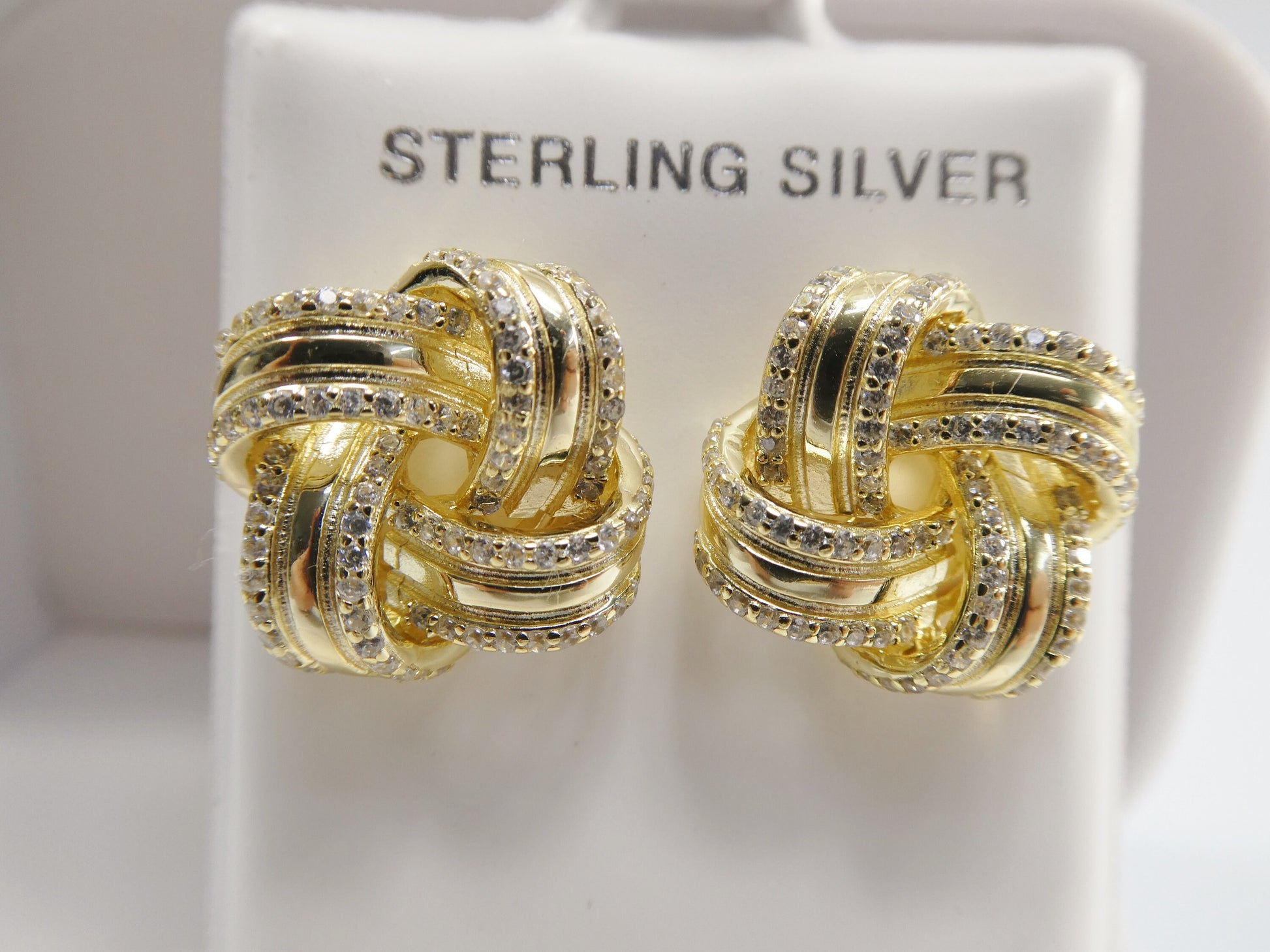 real 925 sterling silver love knot style14k yellow gold color finish push post earring