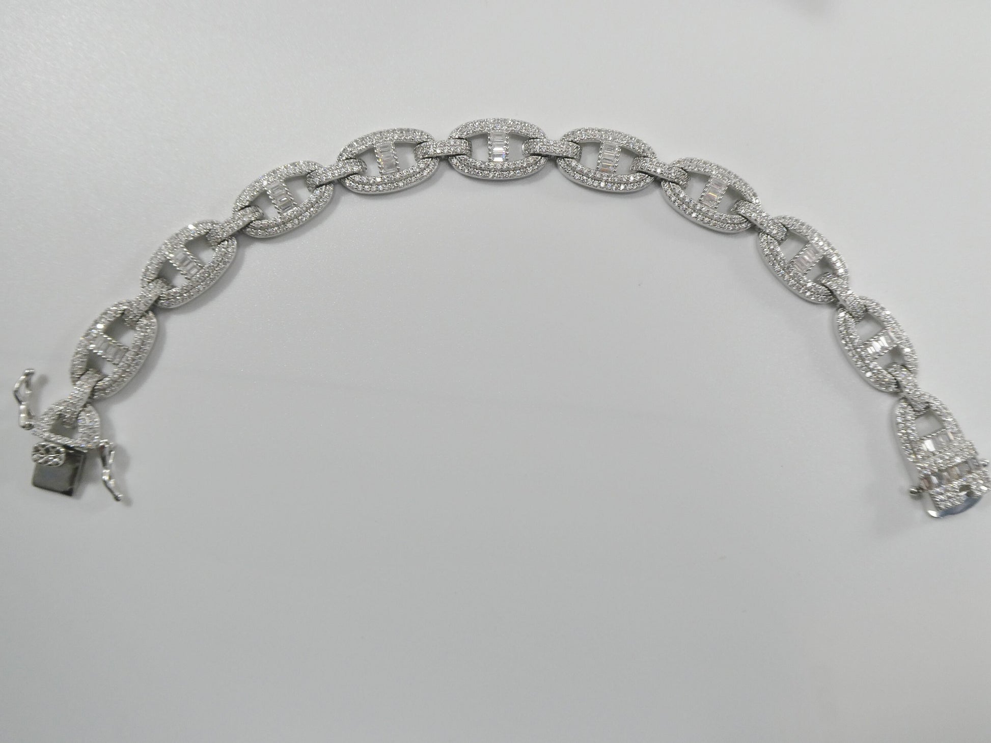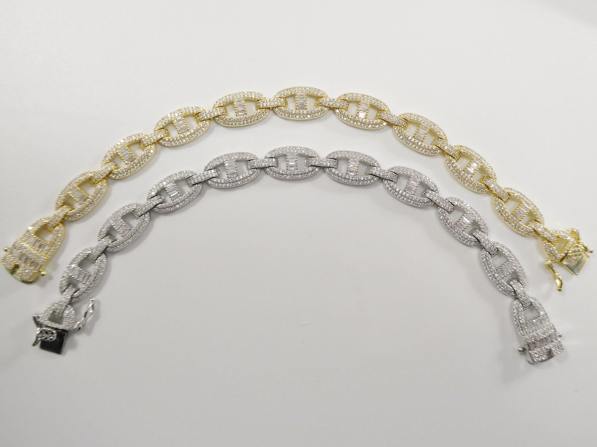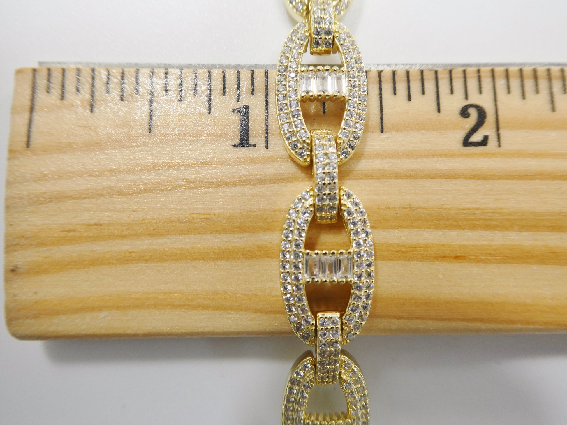 BRAND NEW NEW RELEASE REAL SOLID 925 STERLING SILVER MARINER STYLE FULL STONE MICRO SETTING REAL SILVER MARK AND STAMP COME IN YELLOW GOLD FINISH AND SILVER ROUDIUM PLATED FINISH FOR LASTING 7.25 INCH/ 8 INCH BRACELET BAGUETTE SETTING STONE MIDDLE HIGH QUALITY HIGH POLISH GREAT GOLD COLOR FINISH LUXURY ATTREACTIVE LOOK COME IN NICE GIFT BOX MAKE IT GREAT GIFT FOR ANY OCCASION