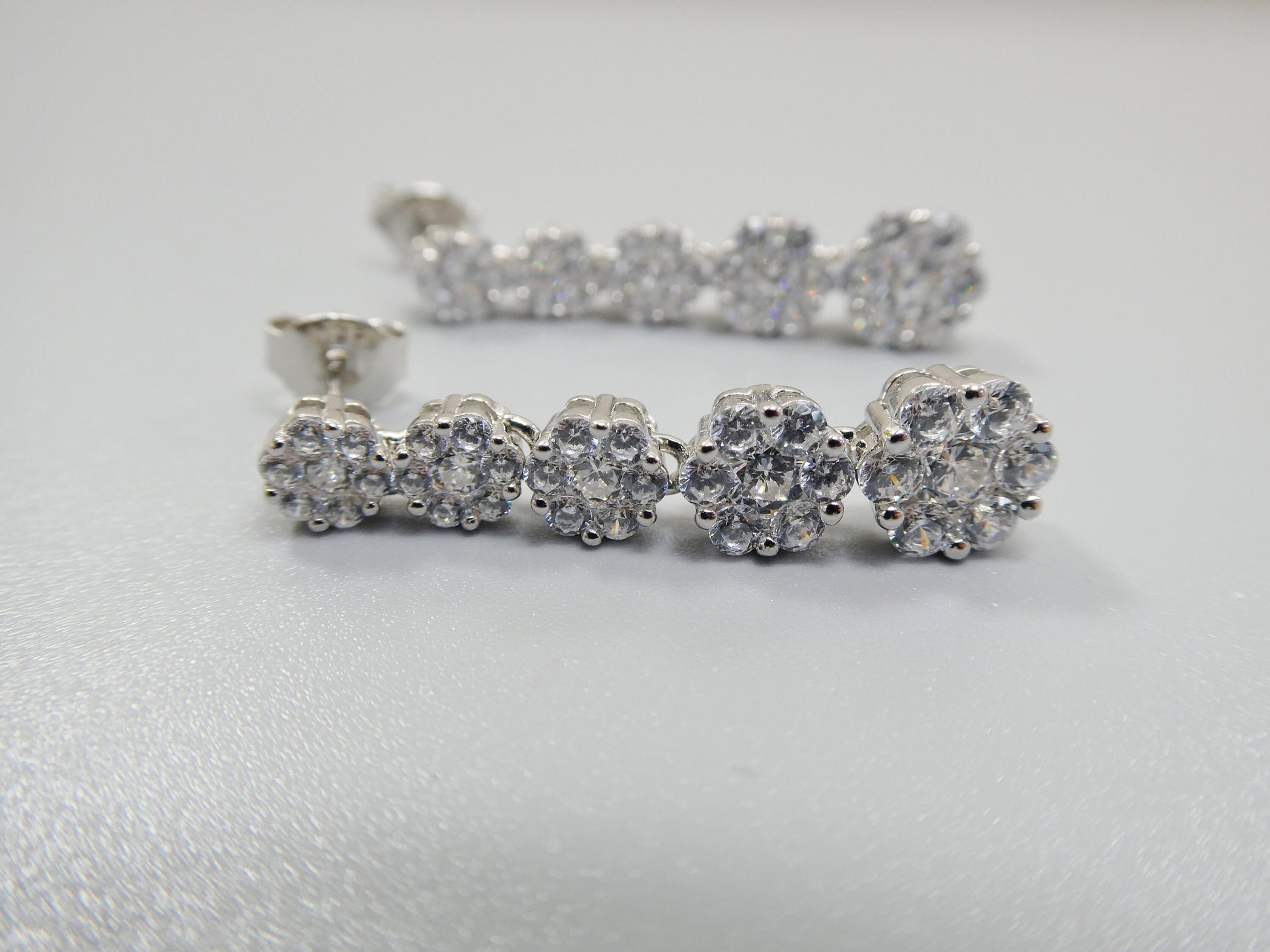 BRAND NEW NEW RELEASE REAL 925 STERLING SILVER 14K WHITE GOLD COLOR TONE FINISH DROP EARRING / WHITE GOLD FINISH RODIUM PLATED FOR LASTING OVER HIGH QUALITY HIGH POLISH GREAT PRICE AAA SHINY CUBIC ZIRCONIA STONE LUXURY ATTREACTIVE LOOK COME IN NICE GIFT BOX MAKE IT GREAT GIFT FOR ANY OCCASION