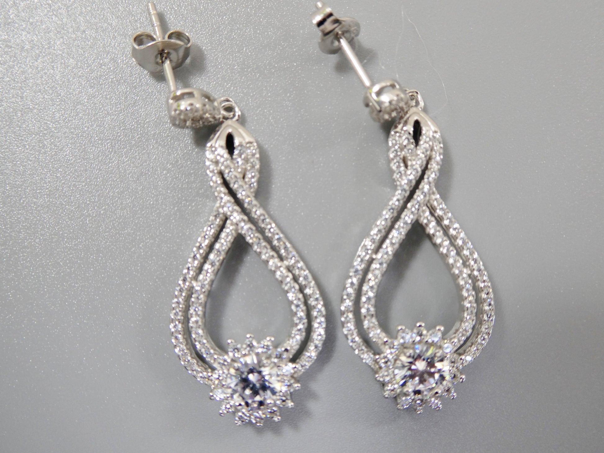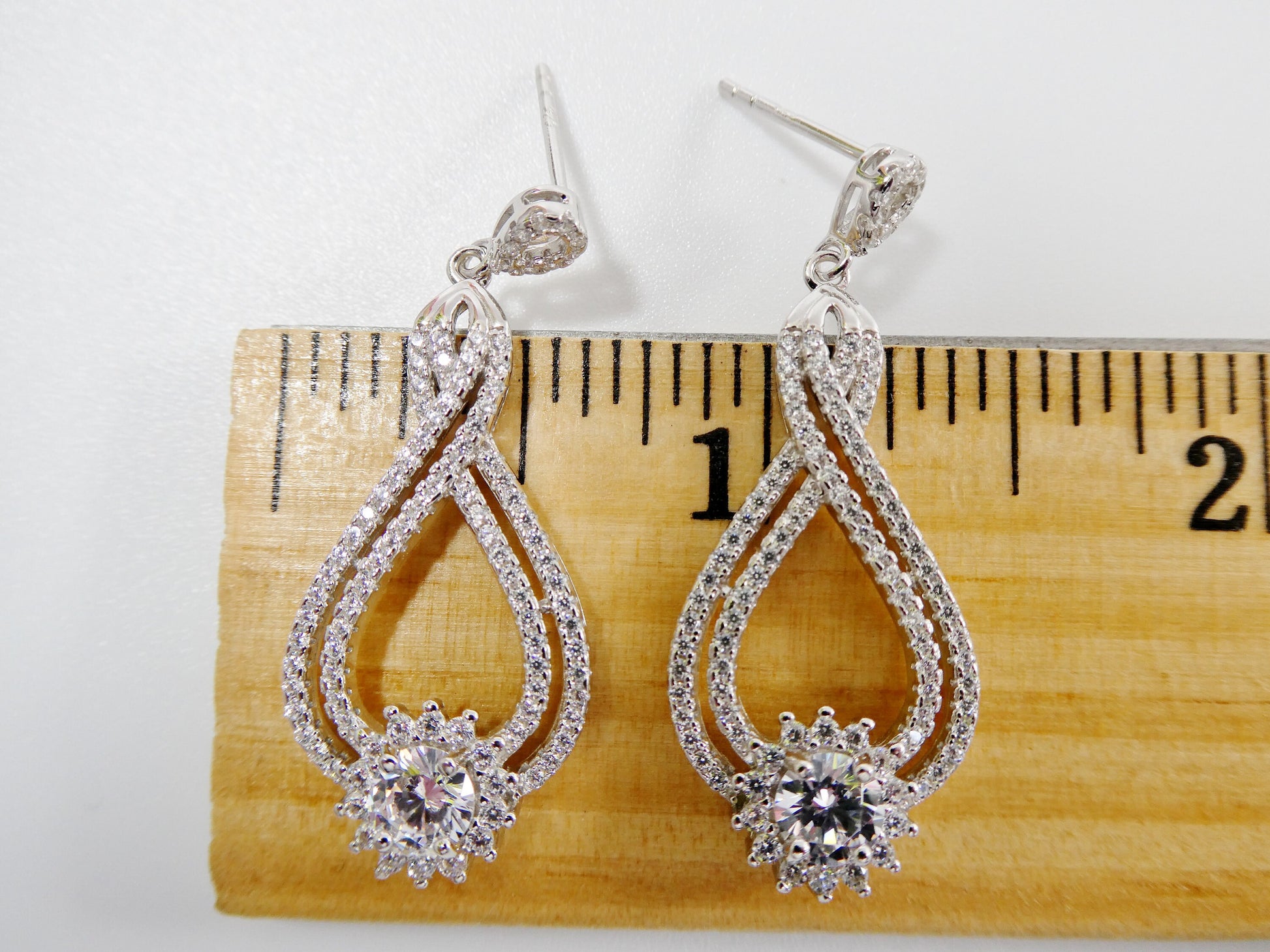 BRAND NEW NEW RELEASE REAL 925 STERLING SILVER 14K WHITE GOLD COLOR TONE FINISH DROP EARRING / WHITE GOLD FINISH RODIUM PLATED FOR LASTING OVER HIGH QUALITY HIGH POLISH GREAT PRICE AAA SHINY CUBIC ZIRCONIA STONE LUXURY ATTREACTIVE LOOK COME IN NICE GIFT BOX MAKE IT GREAT GIFT FOR ANY OCCASION